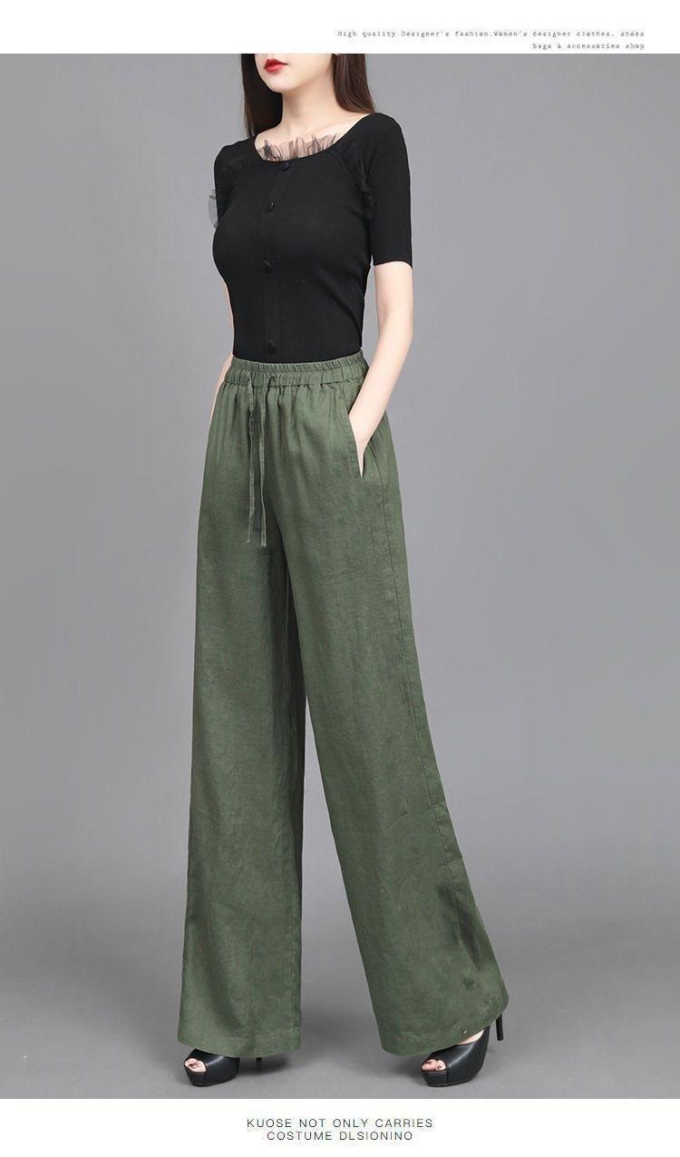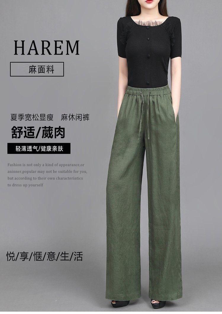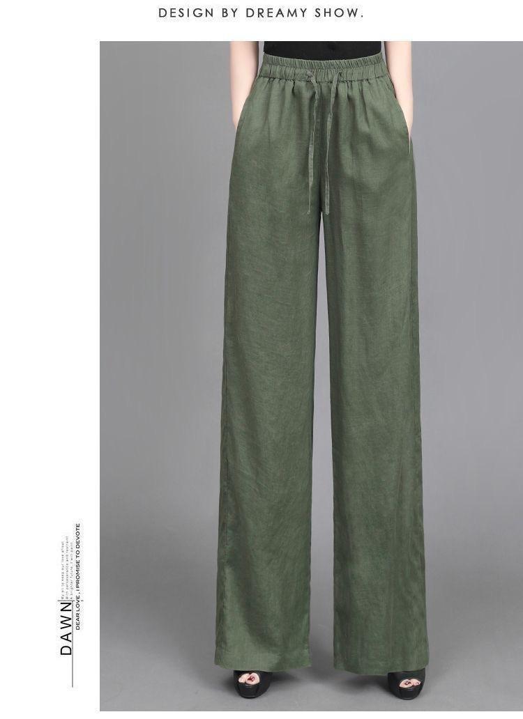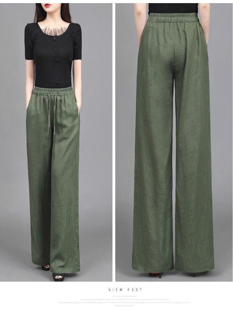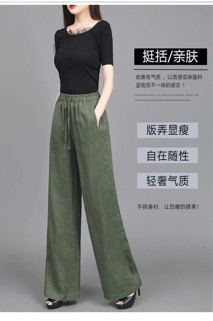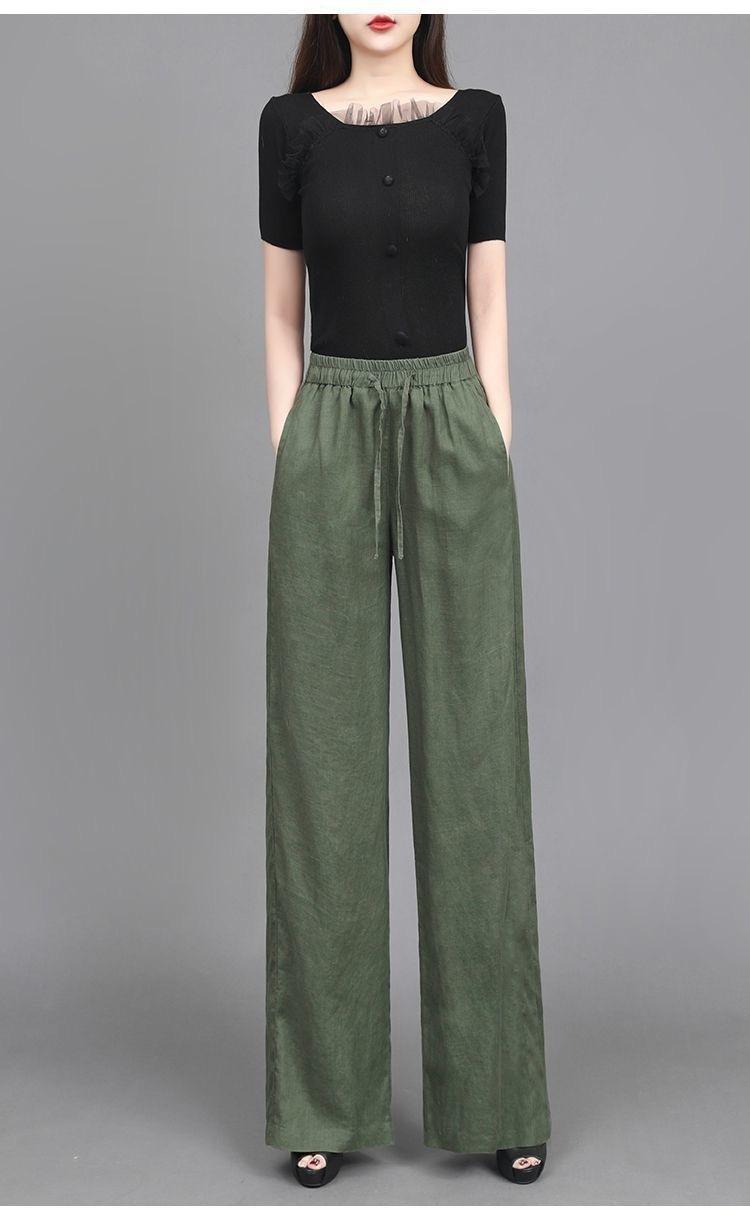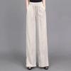 Pantalones anchos de algodón y lino para mujer, nuevos pantalones casuales holgados de cintura grande, pantalones rectos finos para verano