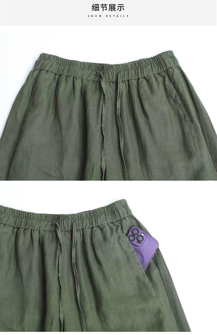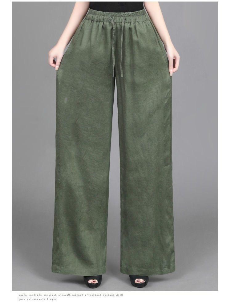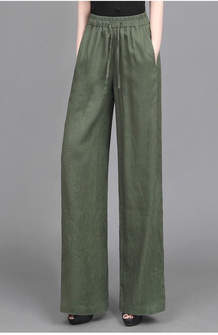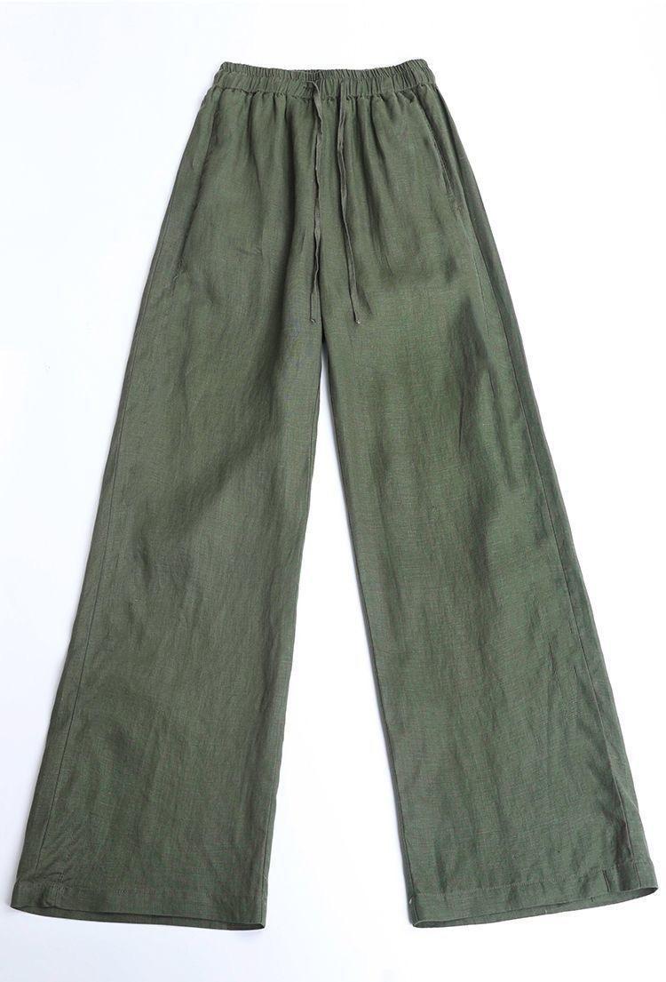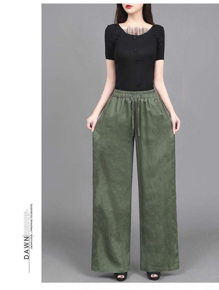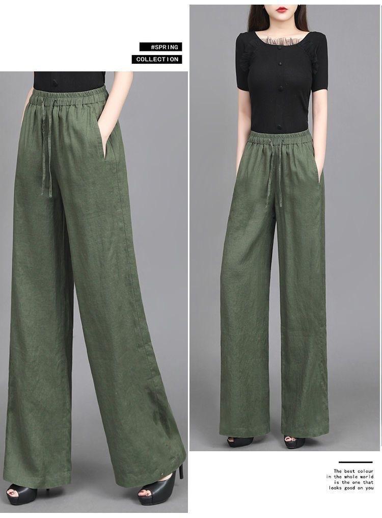 Pantalones anchos de algodón y lino para mujer, nuevos pantalones casuales holgados de cintura grande, pantalones rectos finos para verano
