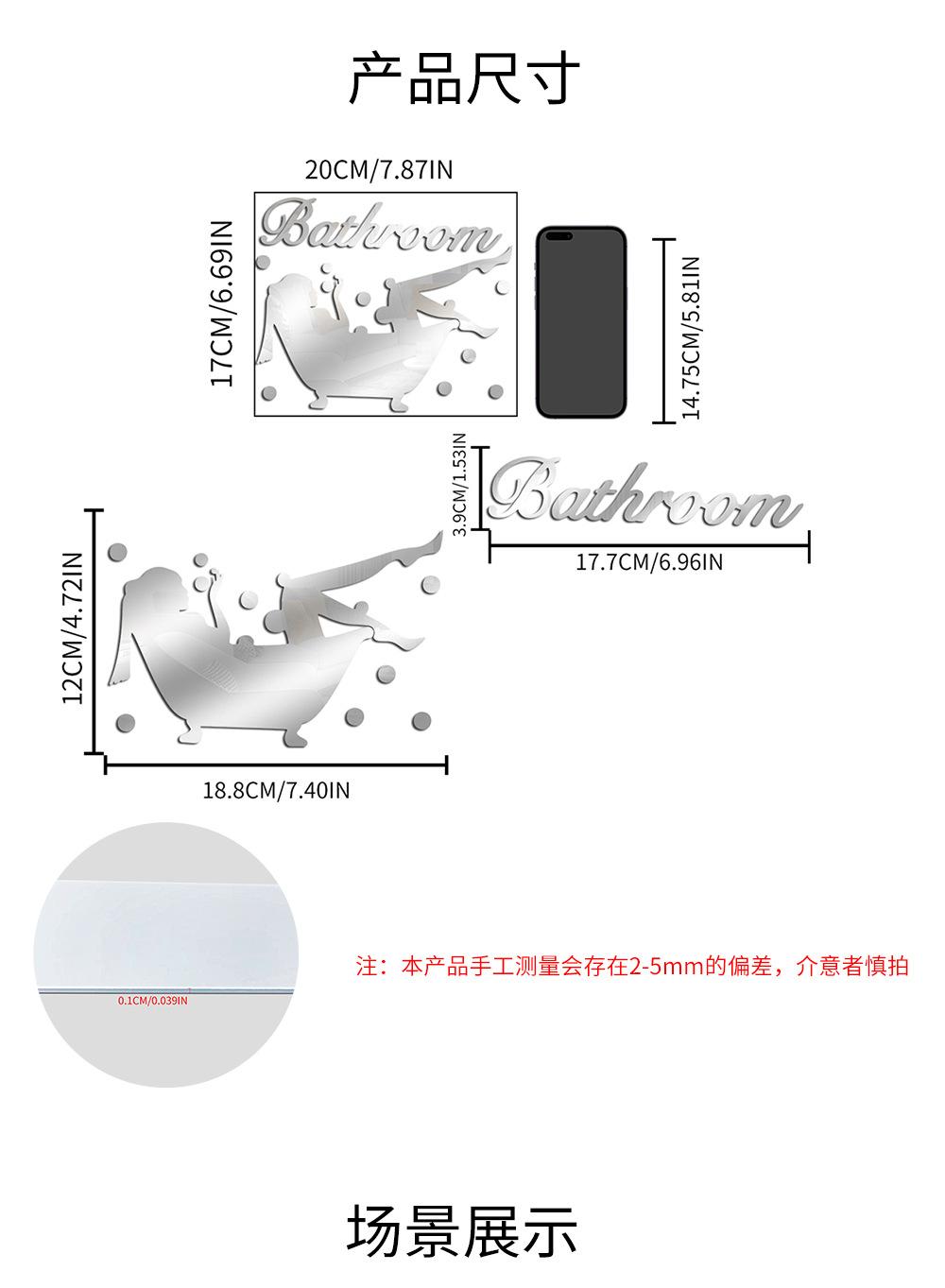 JM5006 Amazon transfronterizo niña espejo de baño decoración pegatinas de pared diy baño baño decoración de pared