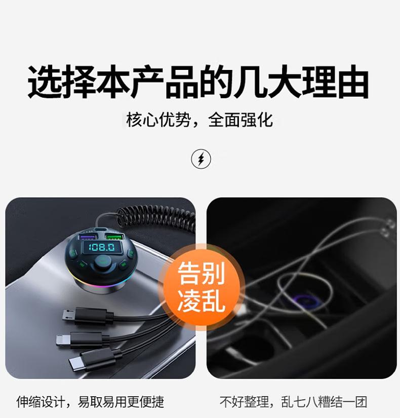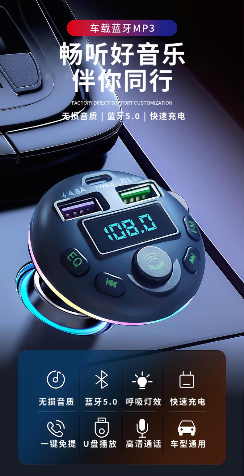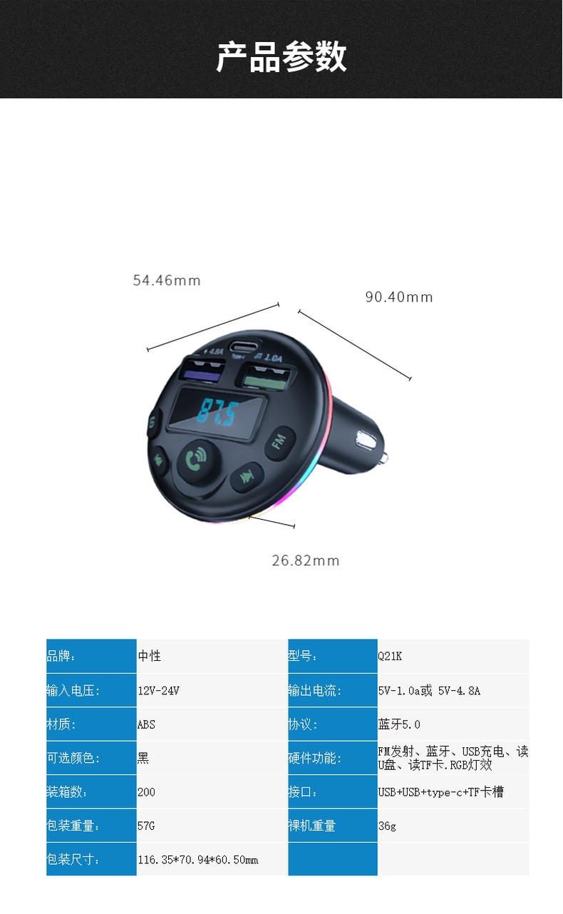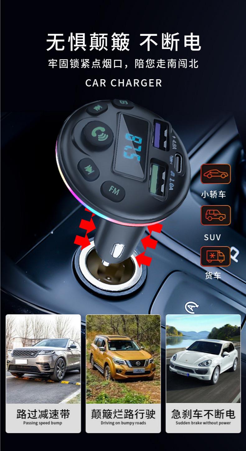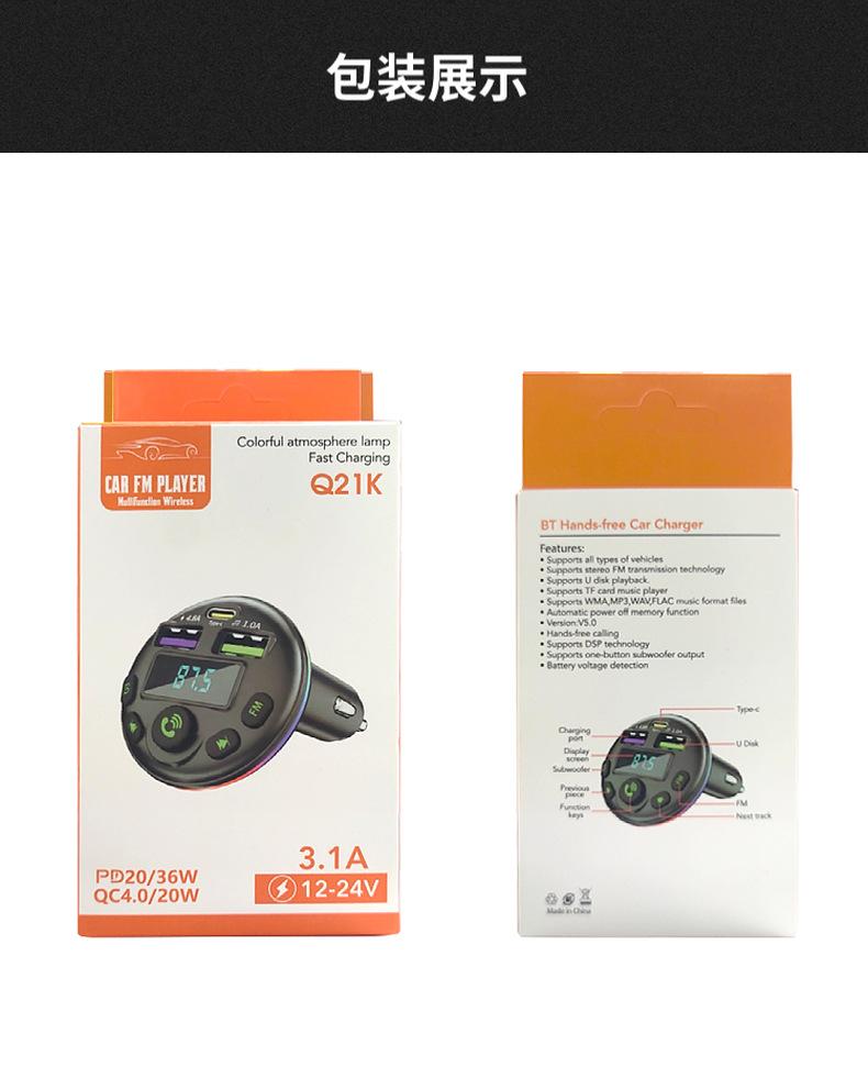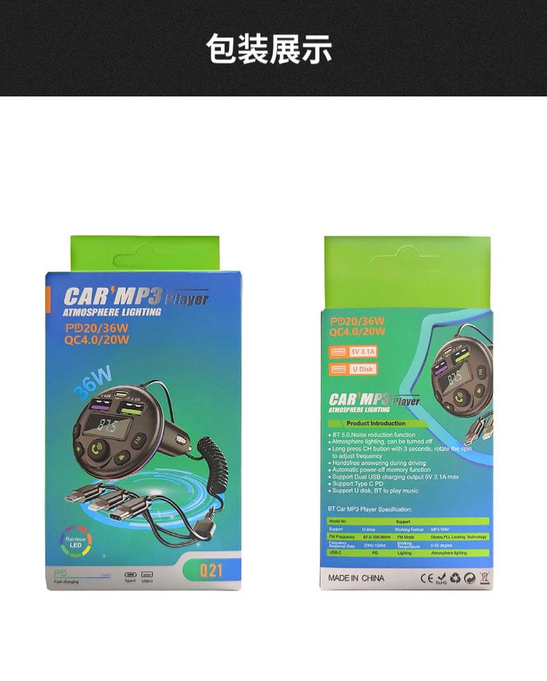 Cargador de coche Q21, de uno a tres encendedores de coche, reproductor de MP3 con Bluetooth, cargador de coche de carga rápida digital PD