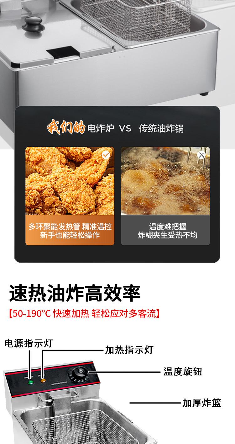 Freidora Eléctrica Comercial Xinsuihai de un Cabezal 11L Freidora Eléctrica con Control de Temperatura para Papas Fritas, Alitas de Pollo, Duradera para Brochetas Fritas