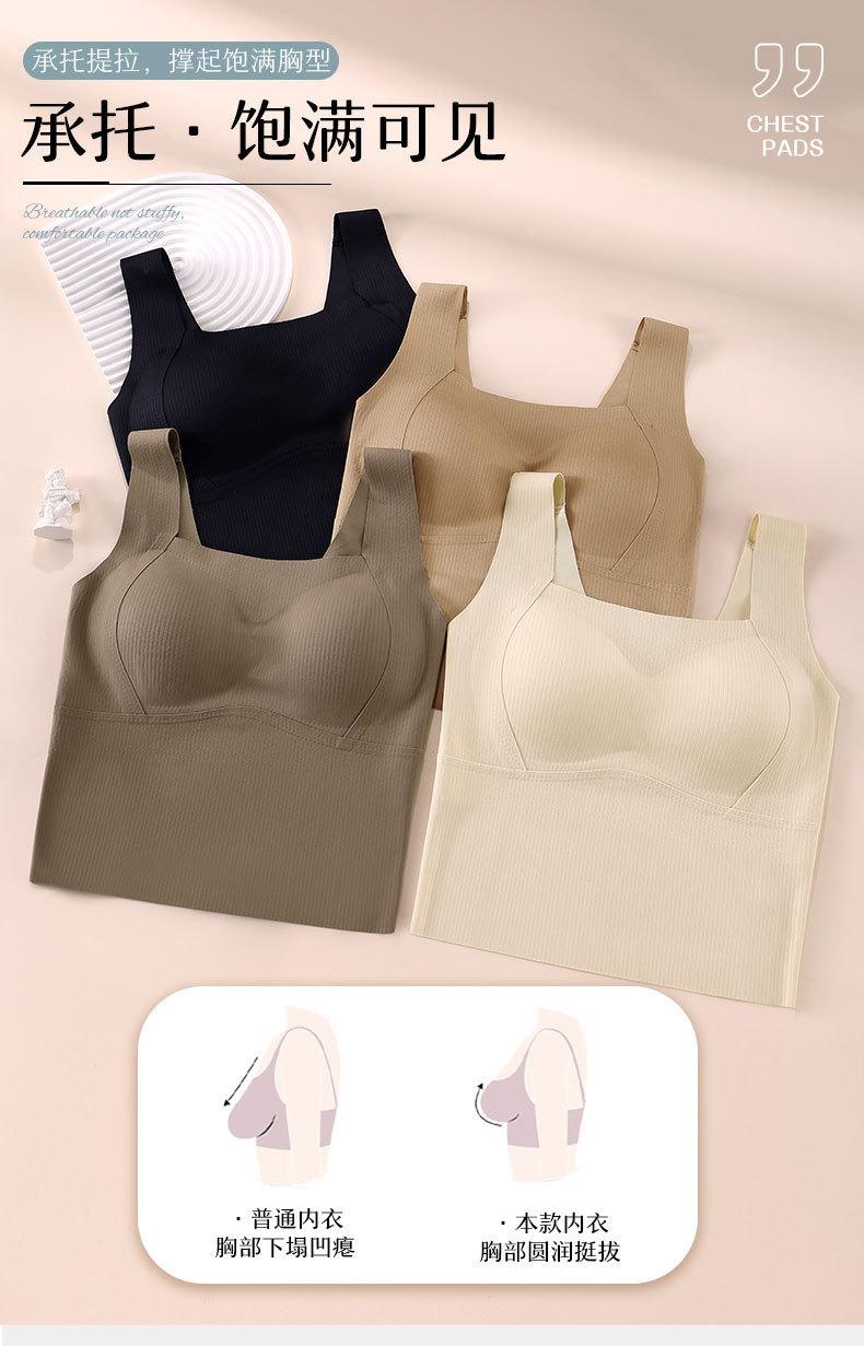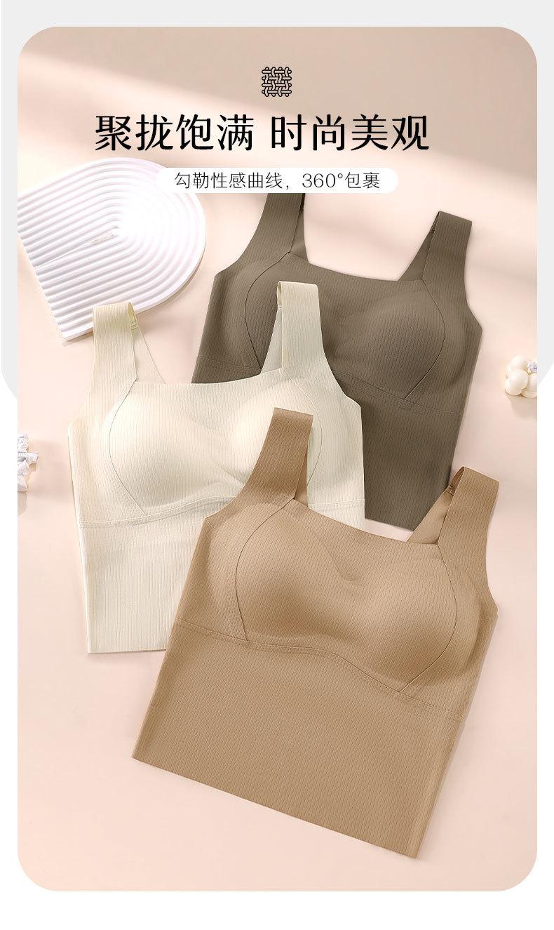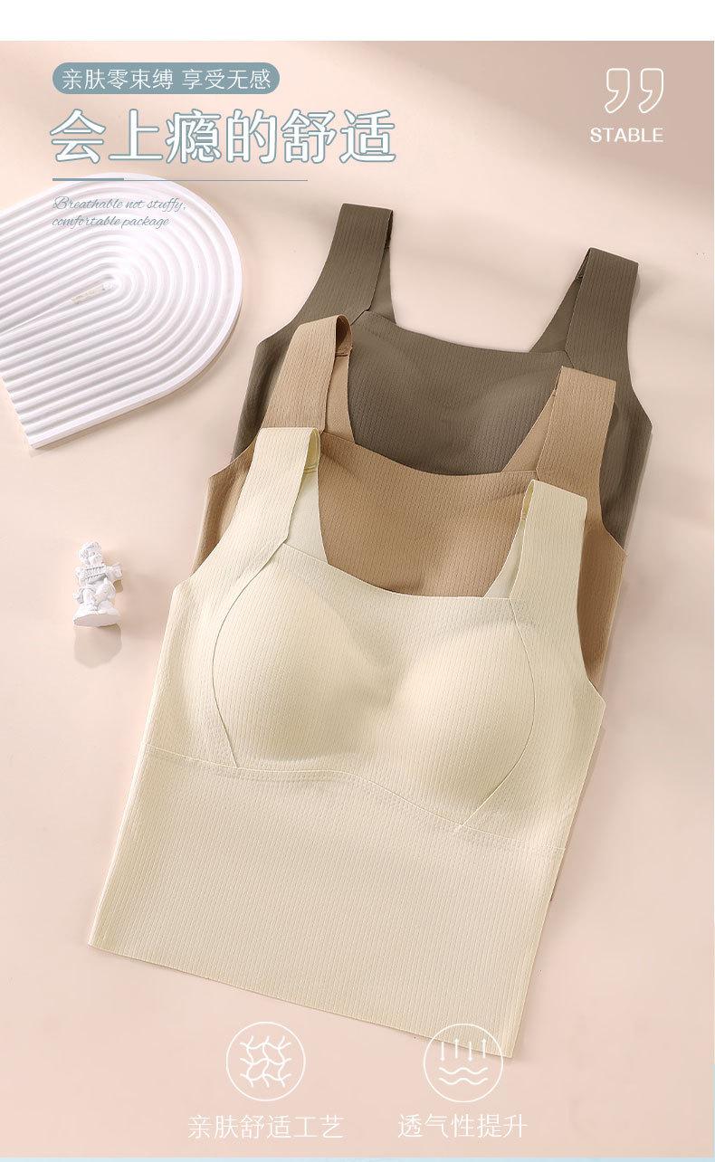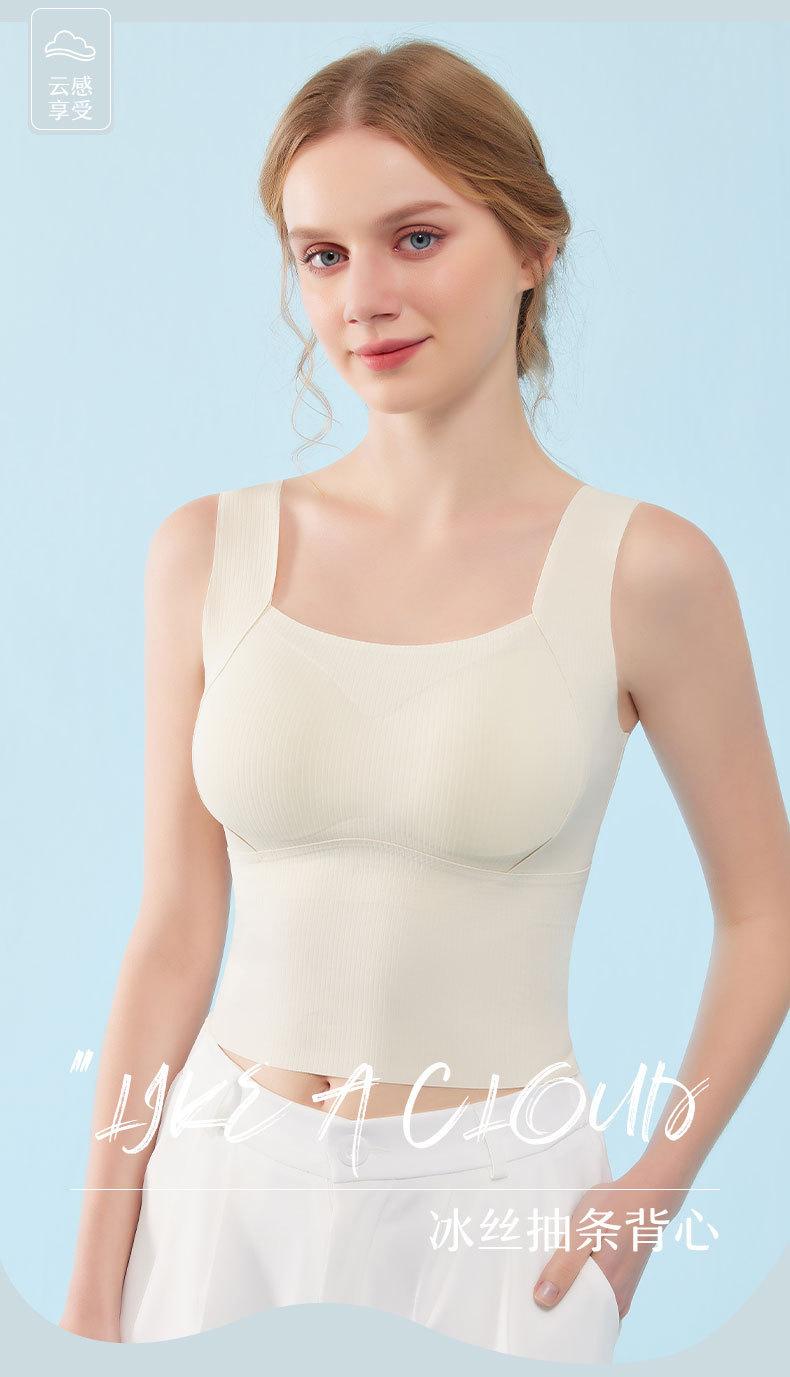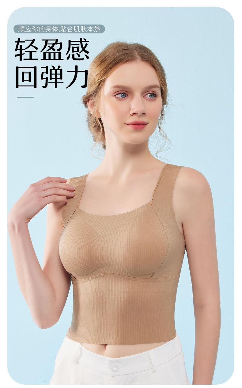 Chaleco sin costuras de seda de hielo, ropa interior de mujer de una pieza con copa fija, sujetador push up, ropa interior y exterior, parte inferior de tubo de longitud media.