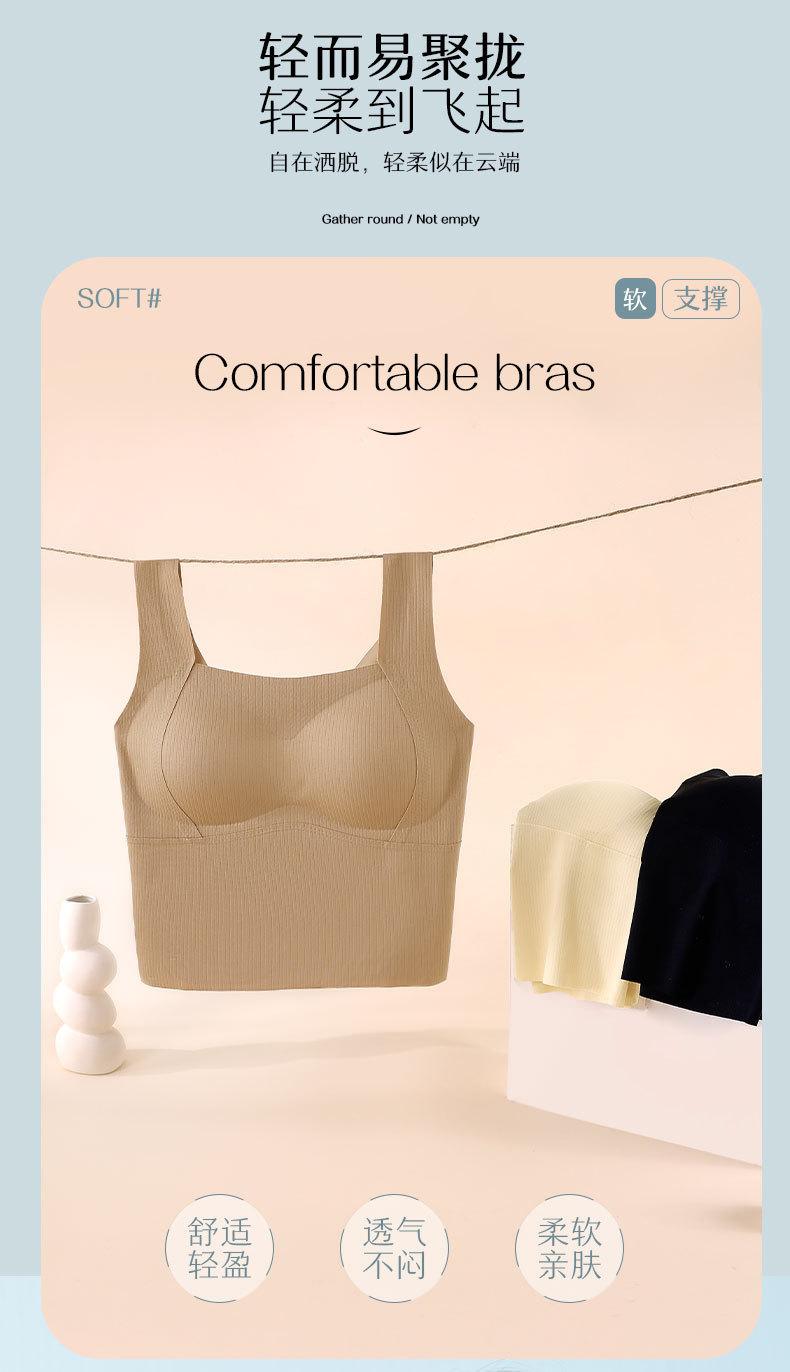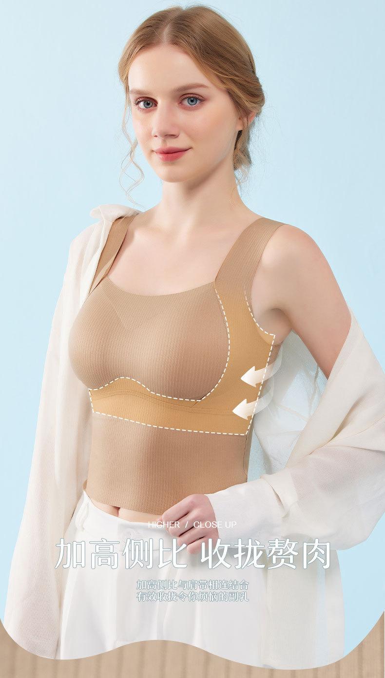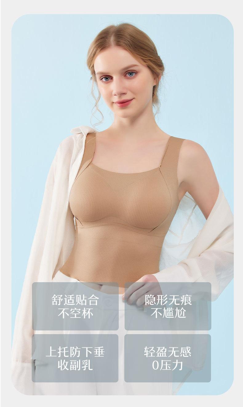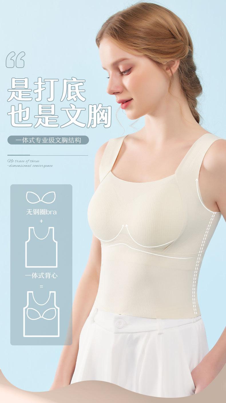 Chaleco sin costuras de seda de hielo, ropa interior de mujer de una pieza con copa fija, sujetador push up, ropa interior y exterior, parte inferior de tubo de longitud media.