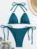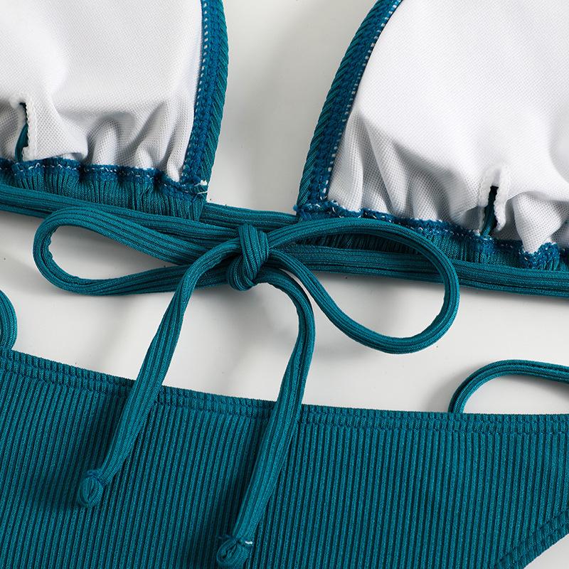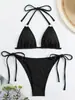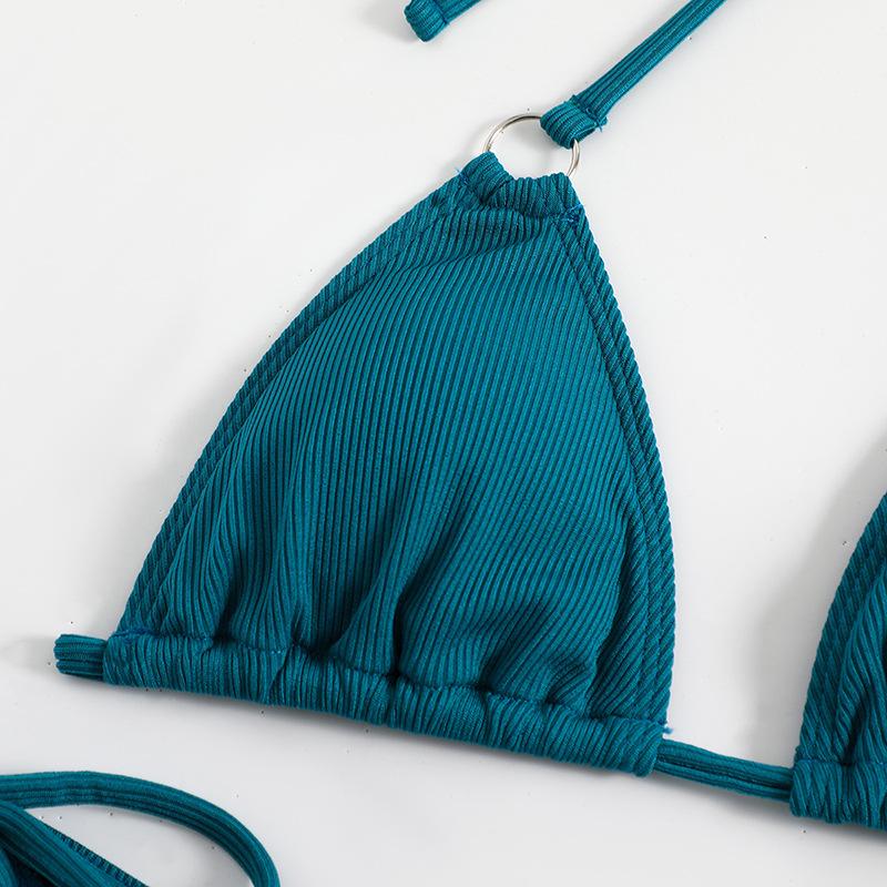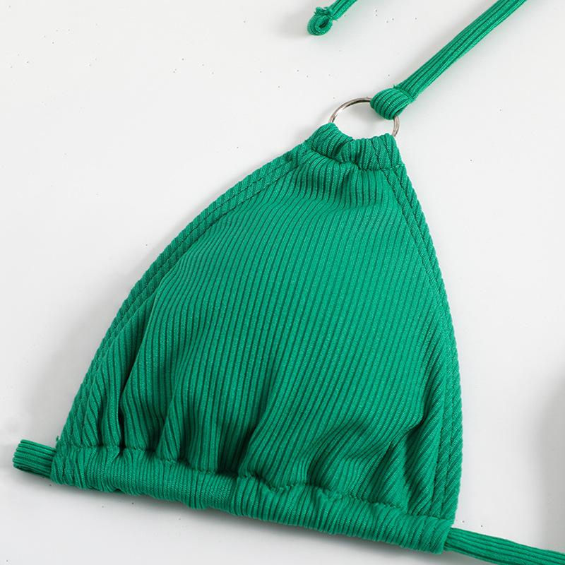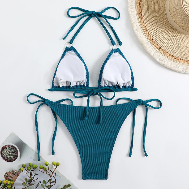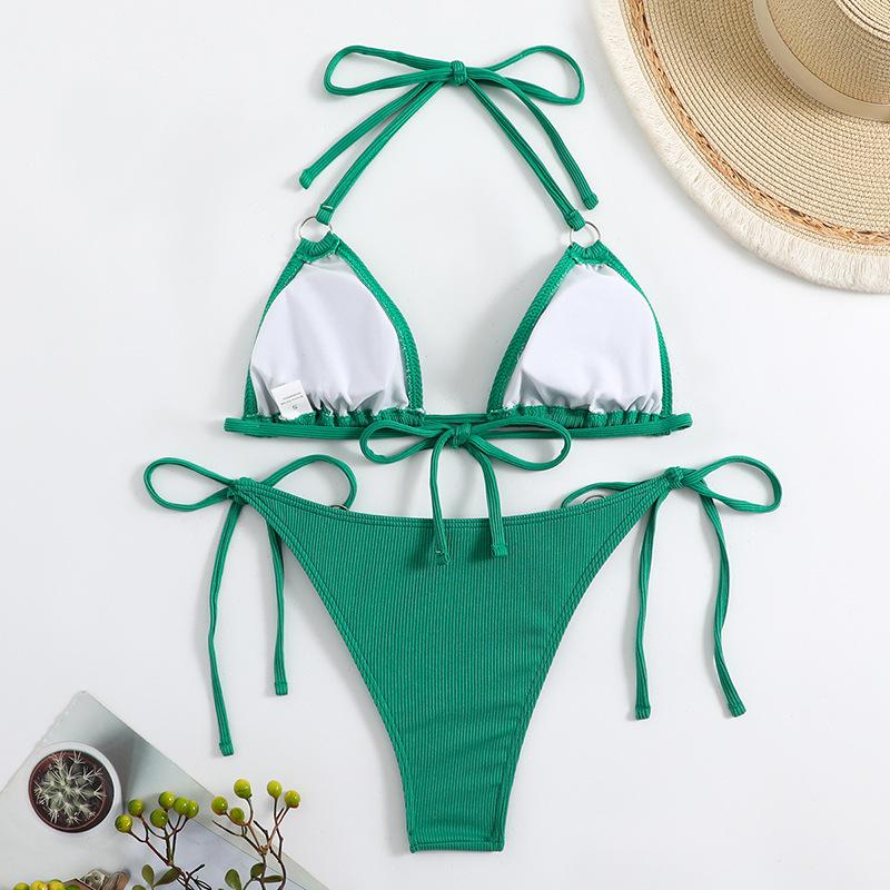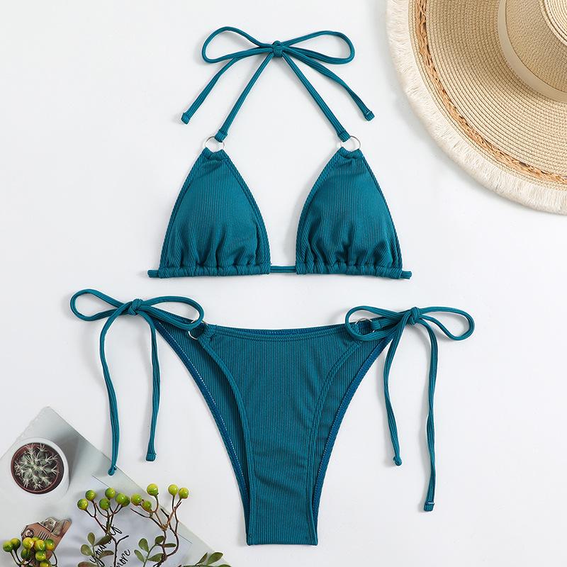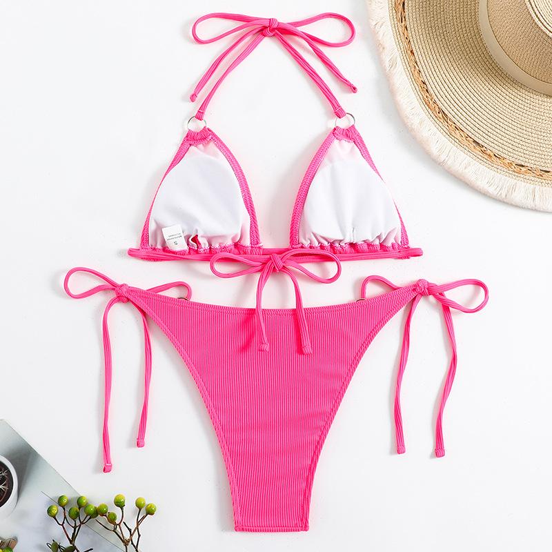 Comercio exterior 2024 nuevo traje de baño dividido europeo y americano nuevo BIKINI de color sólido para mujer bikini de playa triangular sexy