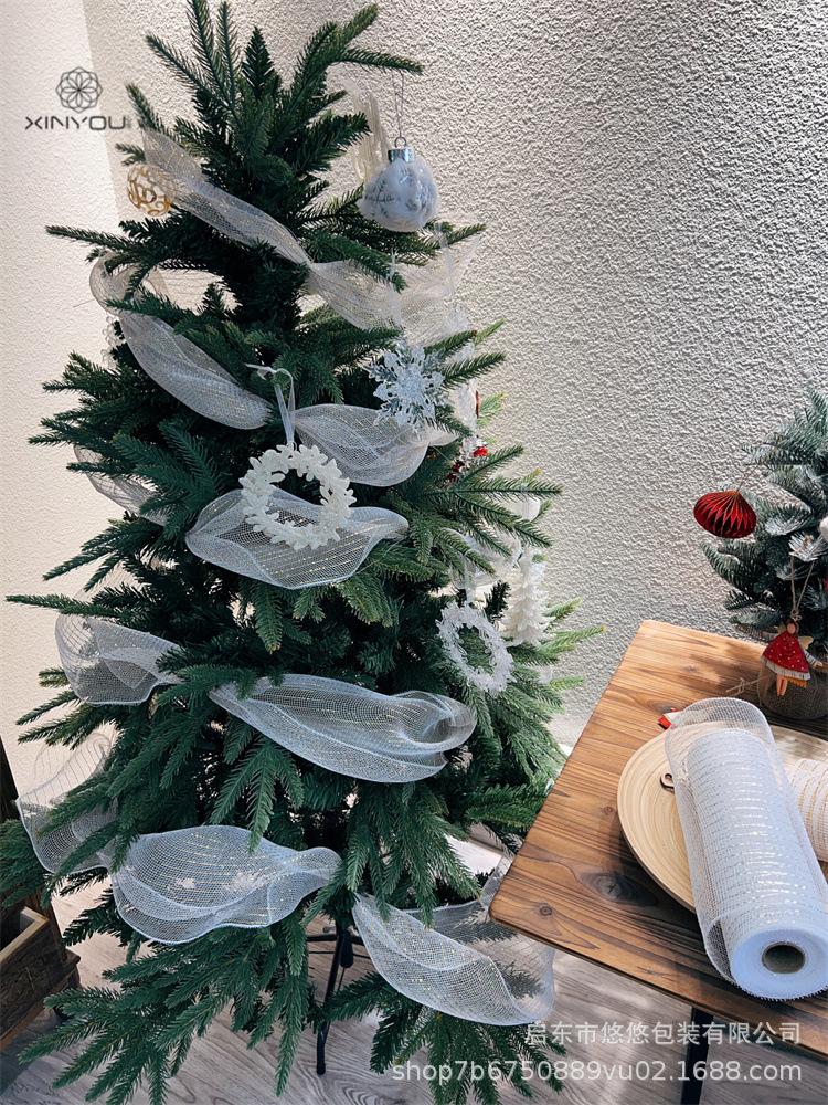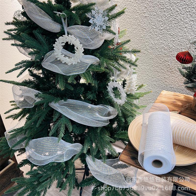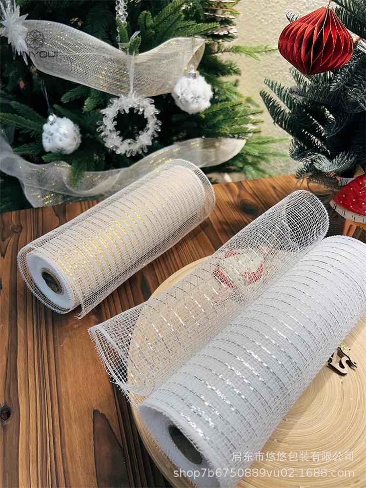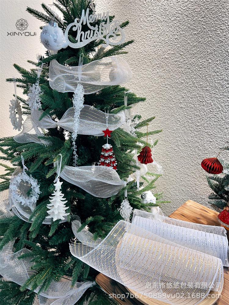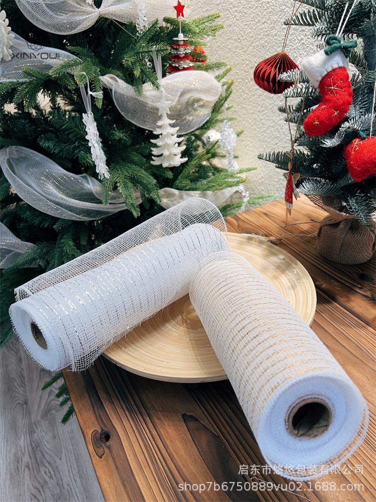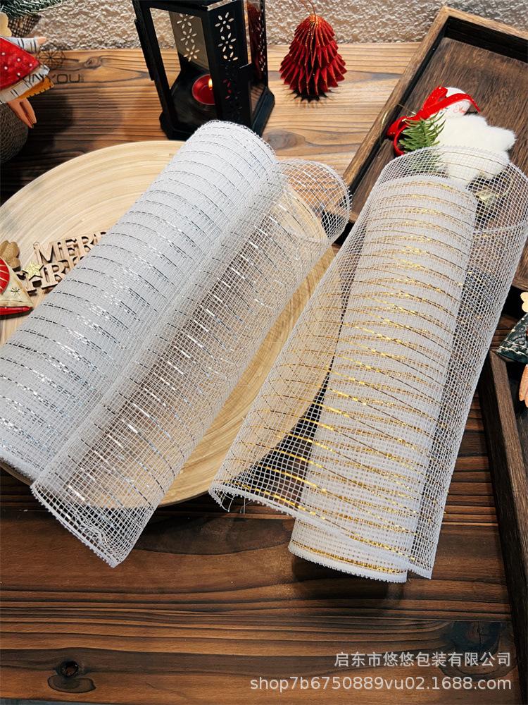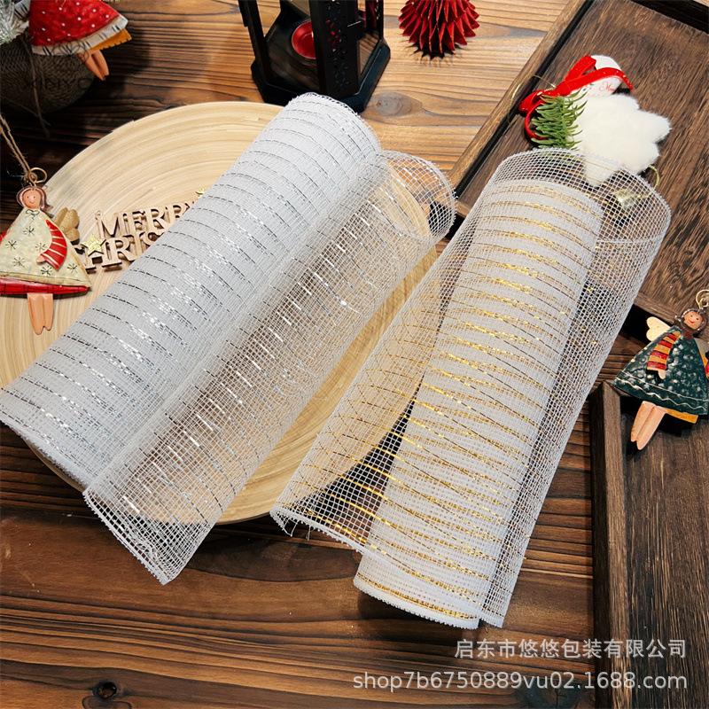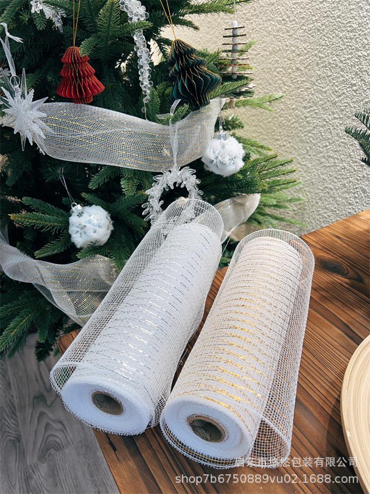Decoración Navideña Transfronteriza Guirnalda de Malla Dorada y Plateada Materiales de Producción Accesorios Decorativos DIY