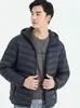 Chaqueta ligera acolchada de algodón y plumón para hombre, otoño e invierno 2023, informal, con cuello alto, capucha, corta, sencilla, cálida, de talla grande
