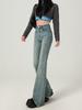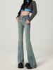 Vaqueros de cintura alta con microrastrillos para mujer, primavera 2024, estilo coreano, ajustados, con corte en forma de trompeta.