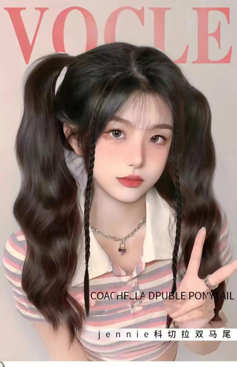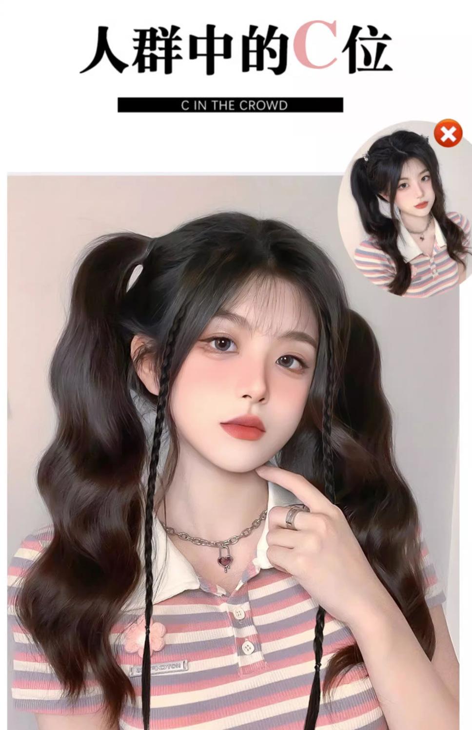 Peluca de cola de caballo para mujer, cabello largo de verano para niña, natural, con banda invisible, ondas grandes, vigor, doble cola de caballo