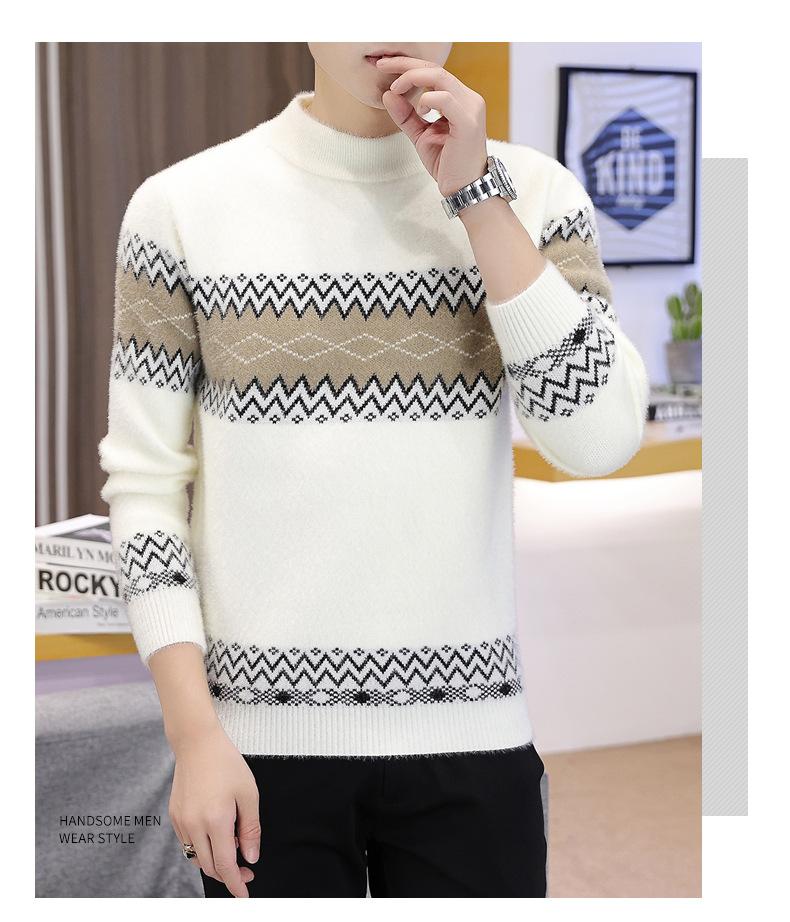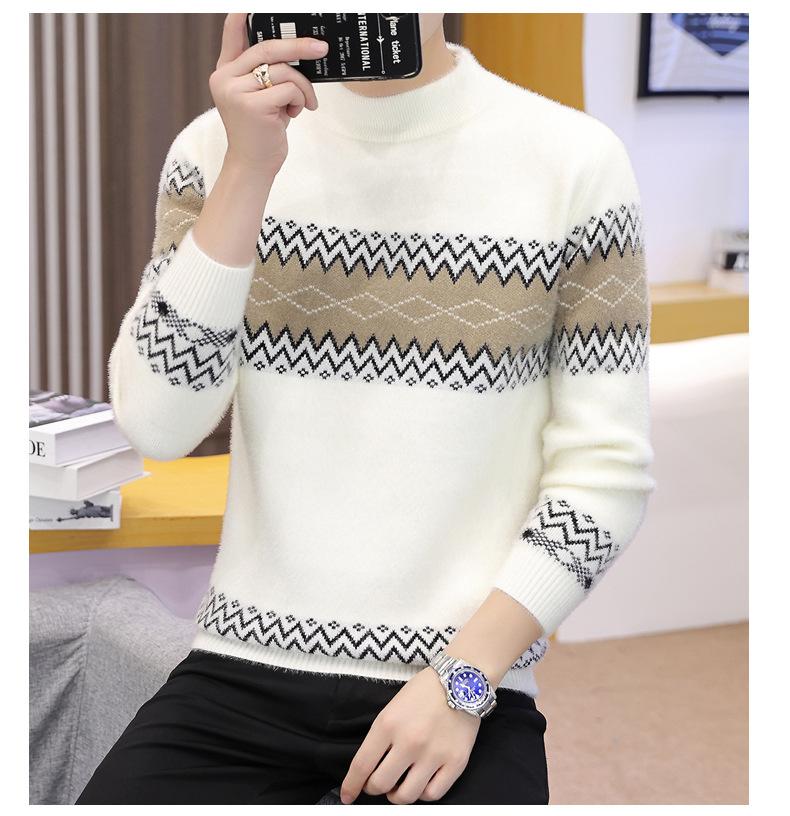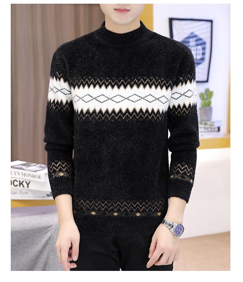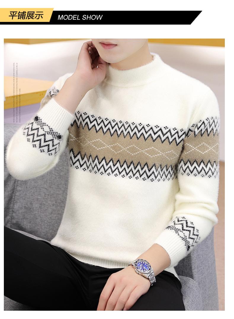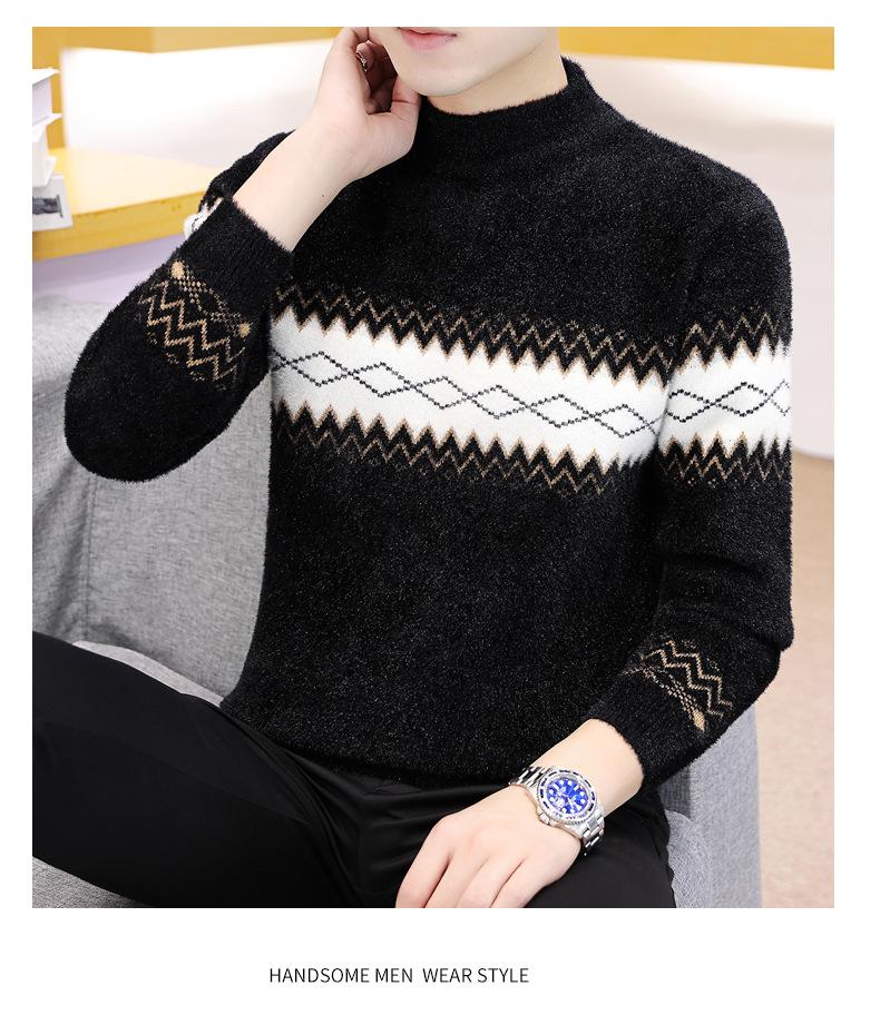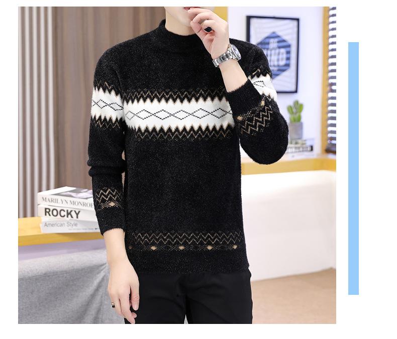 Dropshipping de Exportación Transfronteriza Otoño e Invierno 2024 Ropa de Punto para Hombre Tejido de Punto Visón Cristal Espesado Cuello Medio Alto Invierno Cálido