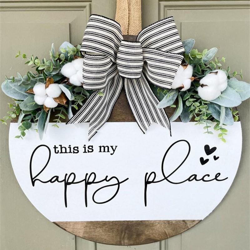 Nombre del producto: Letrero colgante de madera con lazo
