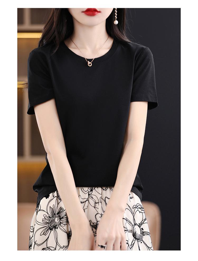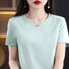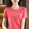 Camiseta blanca de media manga de color liso para mujer, 100 % algodón mercerizado, de manga corta y color liso, de verano, nueva