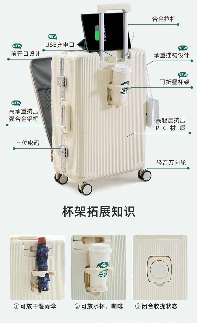 Maleta Multifuncional de Aluminio con Marco de 20 pulgadas de Apertura Frontal Trolley Maleta Rueda Universal Maleta Femenina con Contraseña Maleta de Mano Masculina 24