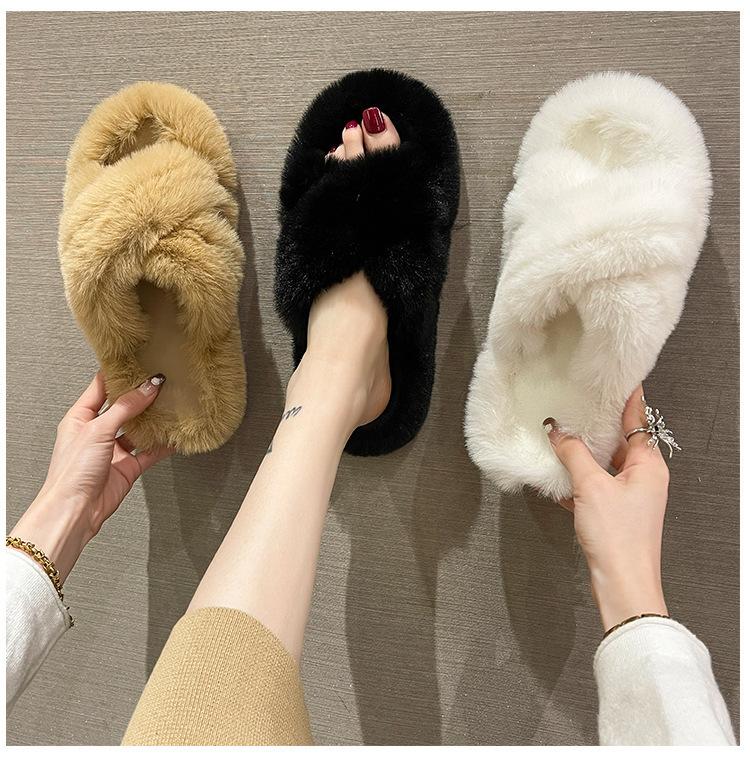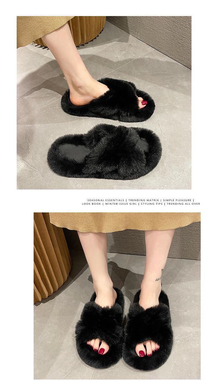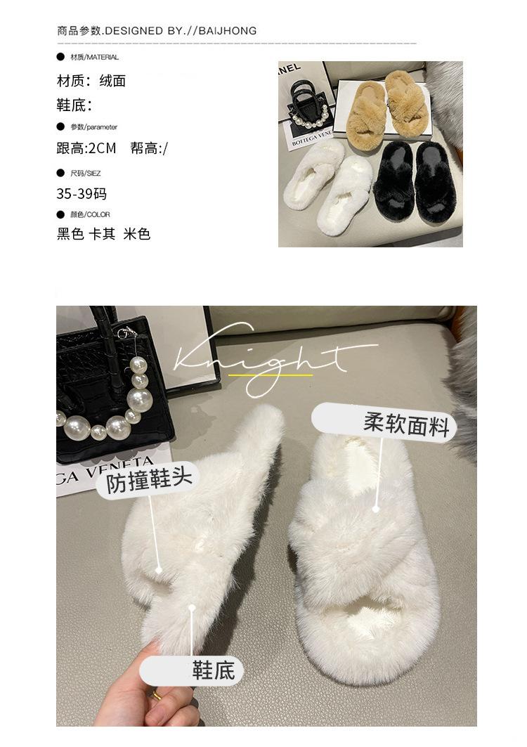 Cross fur slippers [white] 2CM, Cross fur slippers [black] 2CM, Cross fur slippers [Brown] 2CM, Cross fur slip...