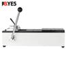 Instalación horizontal. Operación manual, sencilla y estable. La máquina puede instalarse sobre una mesa para mayor estabilidad.Ancho × Alto: 450 mm × 260 mm × 160 mm. Carrera efectiva: 50 mm. Carga nominal: 500 N (también configurable a 1000 N). Peso neto: 10,6 kg.