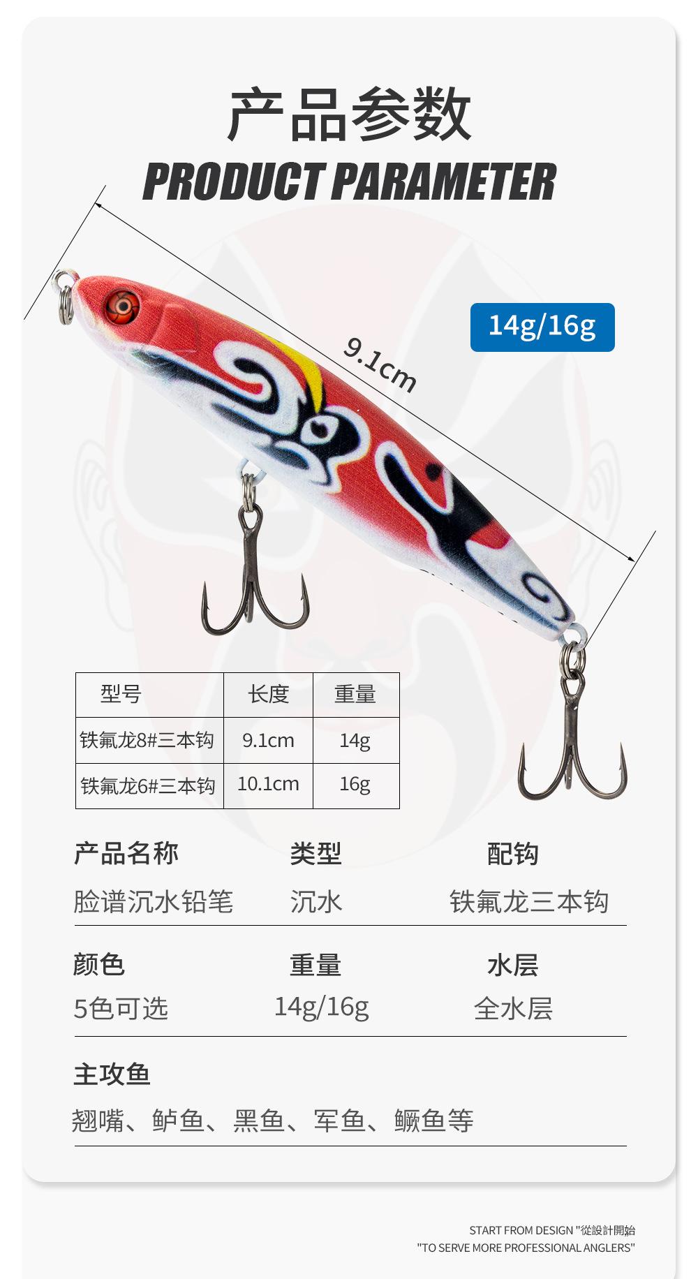 Pesca tiburón | Maquillaje facial plano largo sumergido lápiz cebo Luya mosca muerta sistema de transferencia de centro de gravedad cebo falso cebo de imitación 14g/16g
