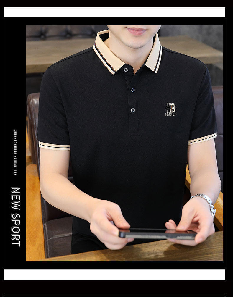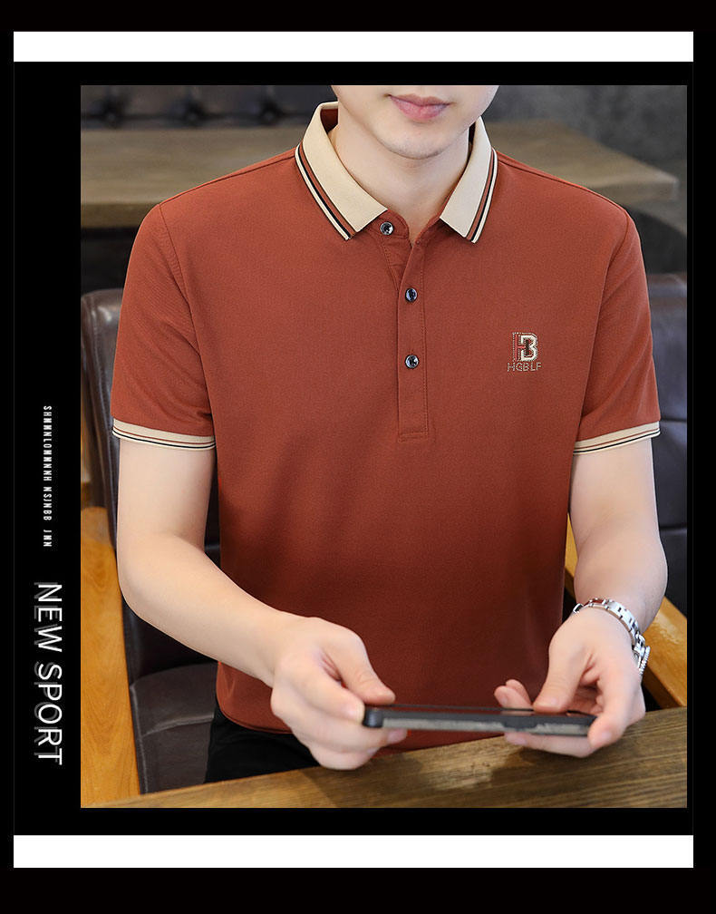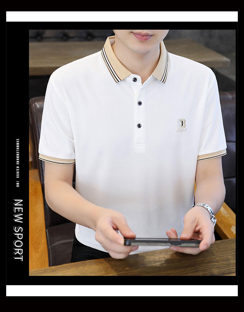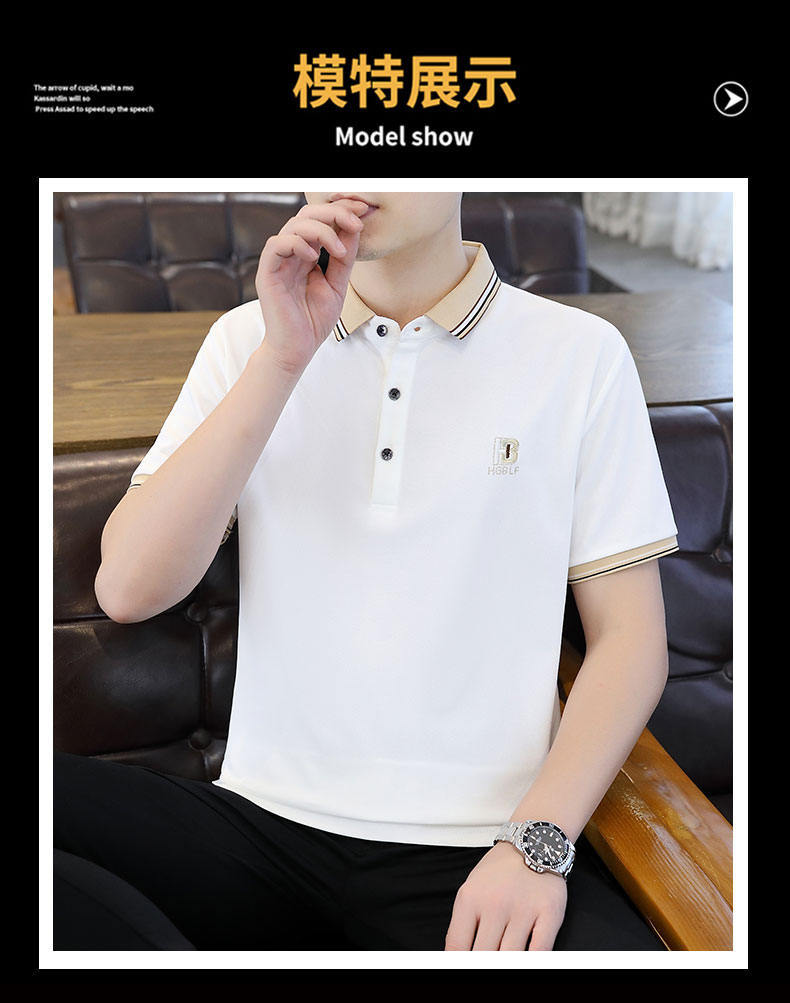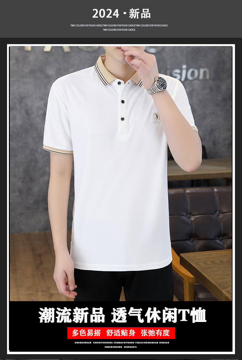 Compra Polo de manga corta con cuentas de seda de hielo para hombre, camiseta informal de alta gama, cuello de camisa, moda de verano al por mayor en Joom.pro