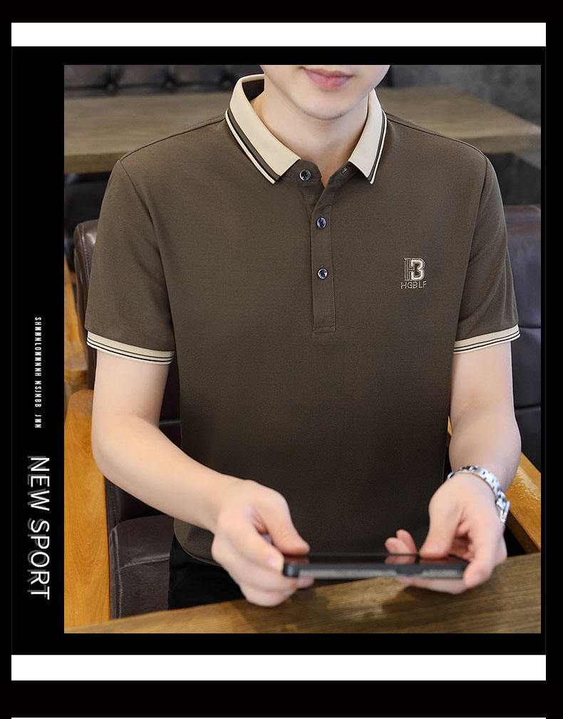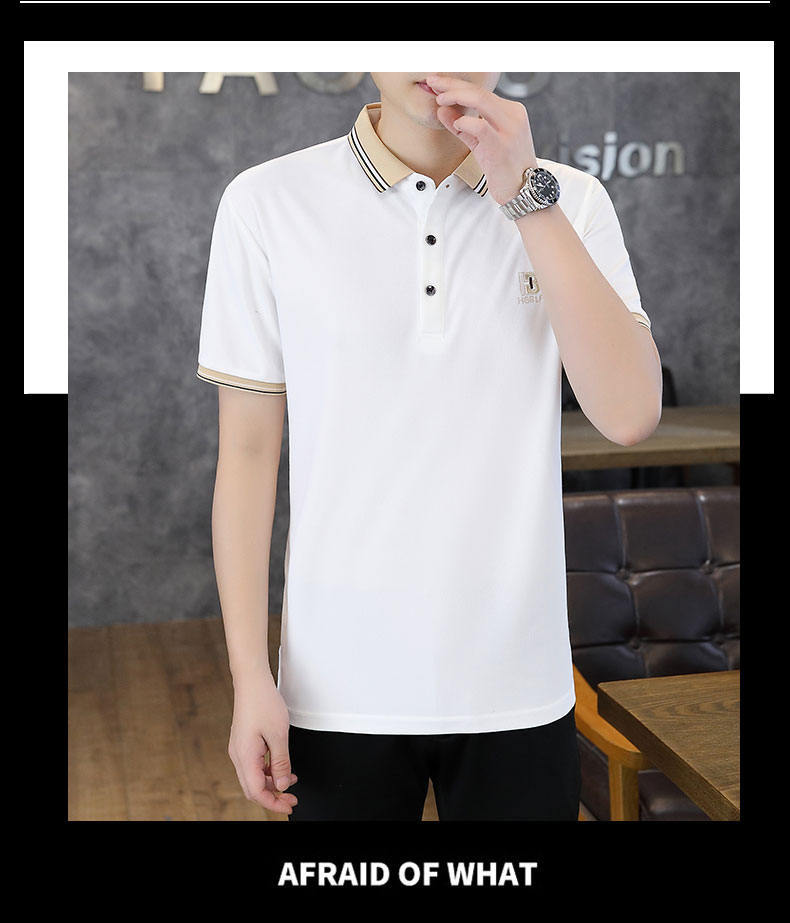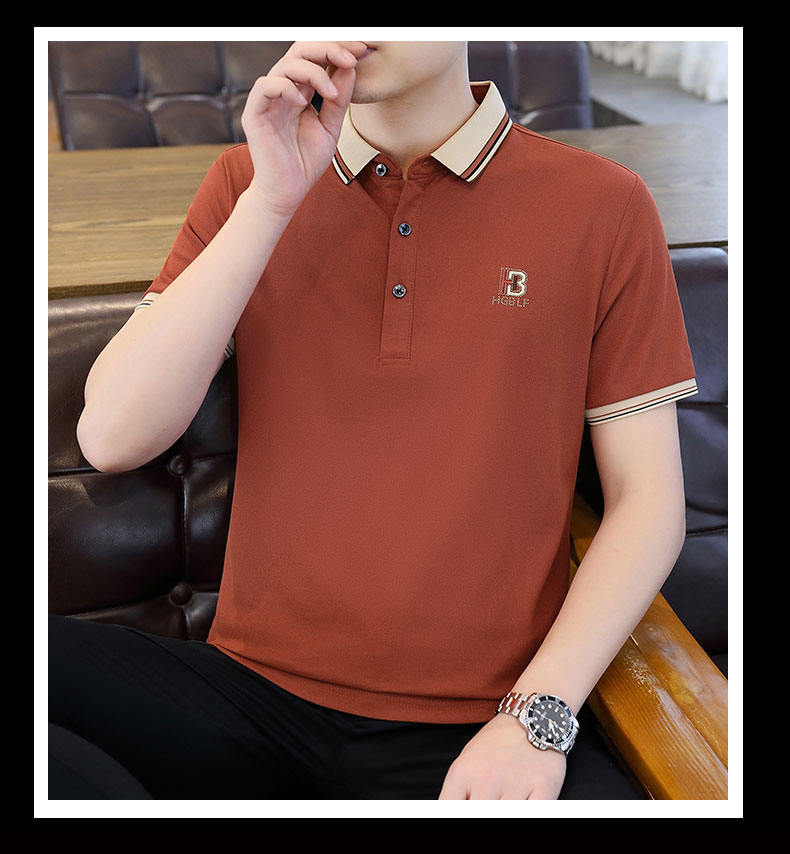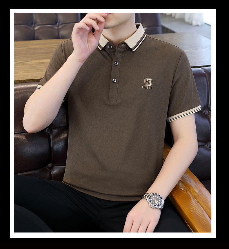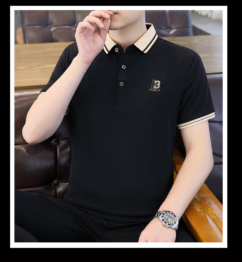 Compra Polo de manga corta con cuentas de seda de hielo para hombre, camiseta informal de alta gama, cuello de camisa, moda de verano al por mayor en Joom.pro