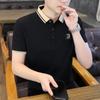 Polo de manga corta con cuentas de seda de hielo para hombre, camiseta informal de alta gama, cuello de camisa, moda de verano