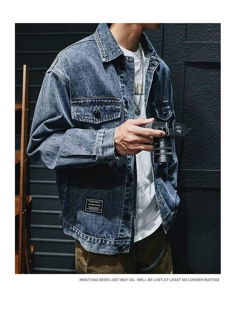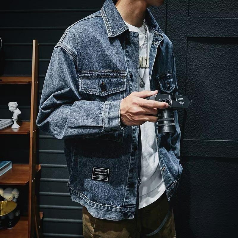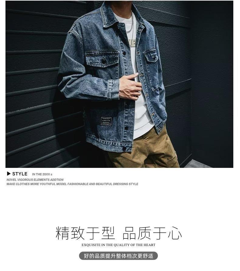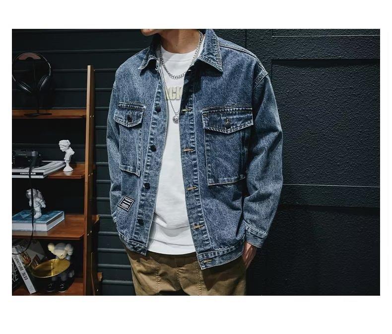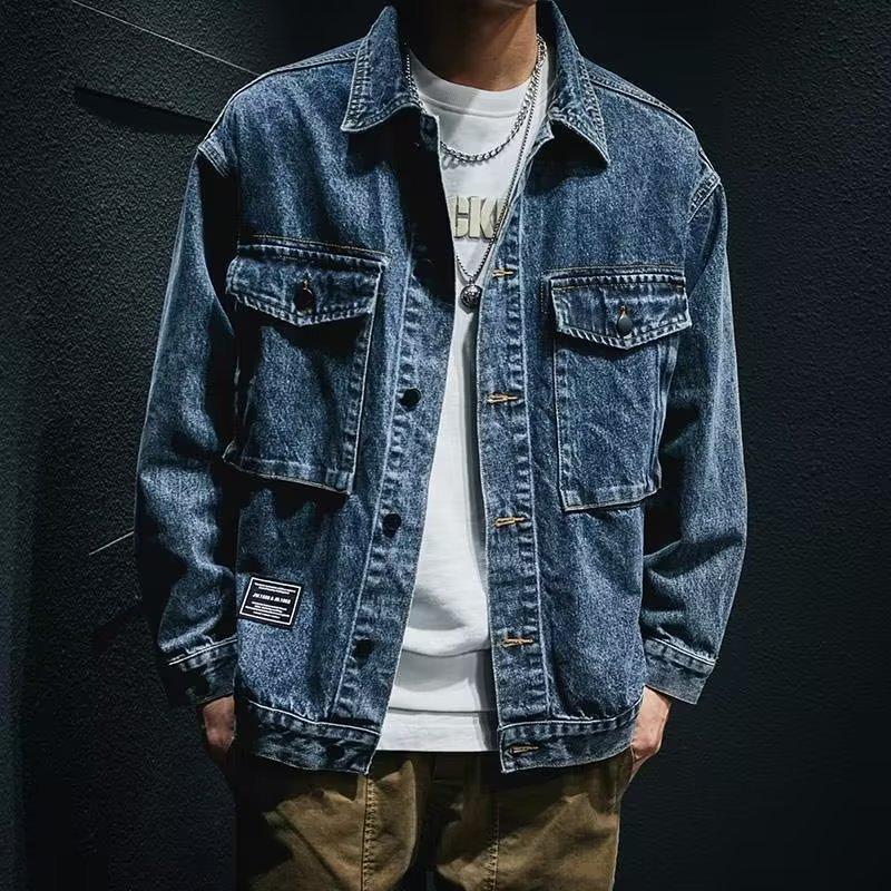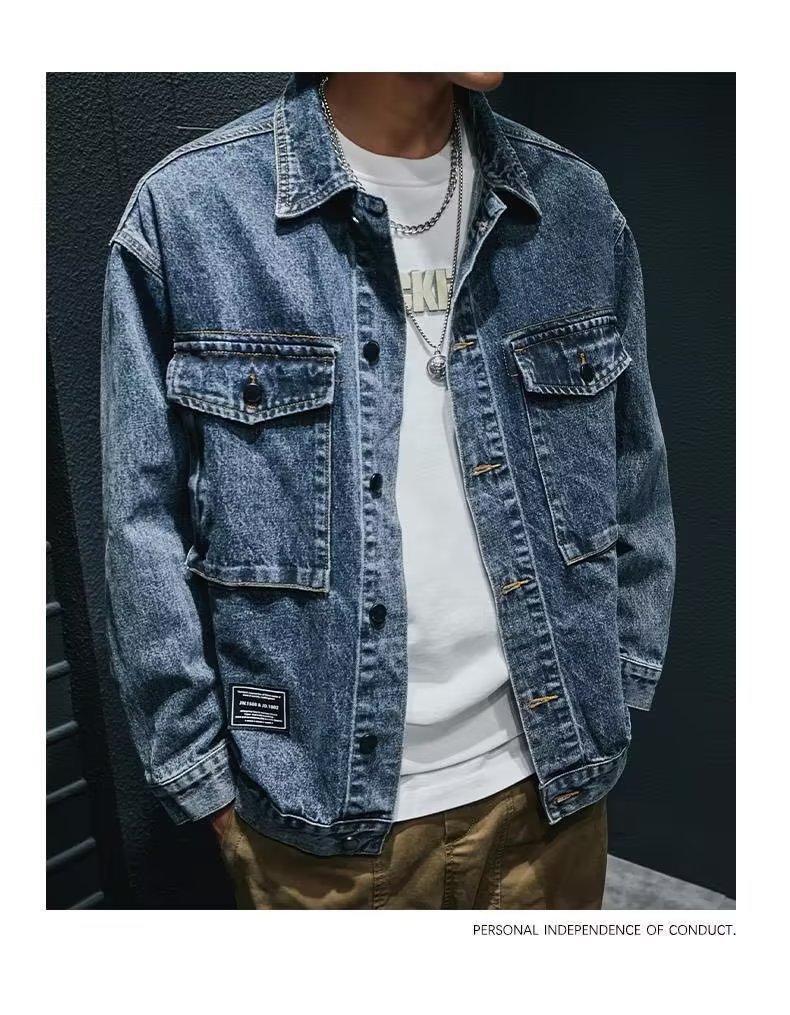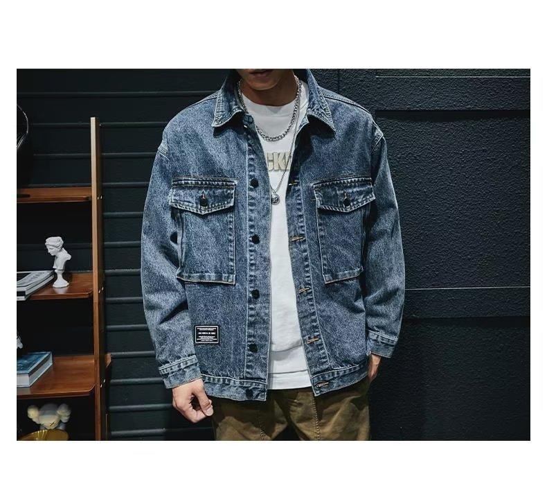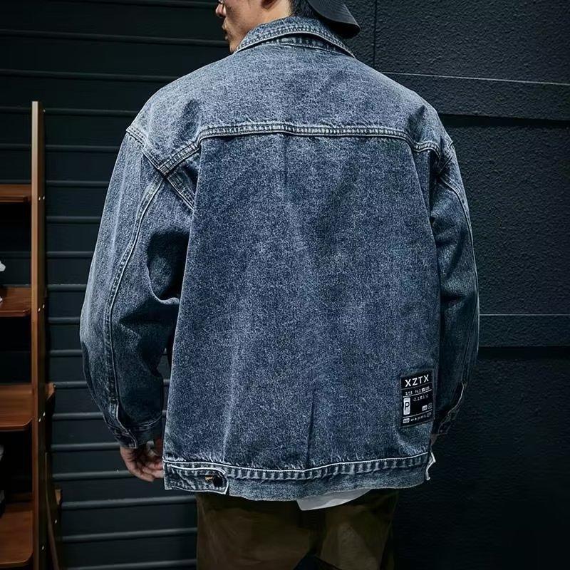 Chaqueta vaquera de primavera y otoño para hombre, chaqueta de trabajo de marca de moda, chaqueta informal holgada, parte superior grande