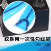 Nombre del producto: Bolsa de línea de gancho para tatuaje, caja morada, bolsa de línea de gancho azul, 125 piezas/caja