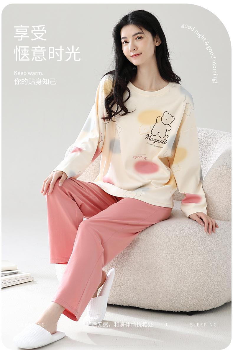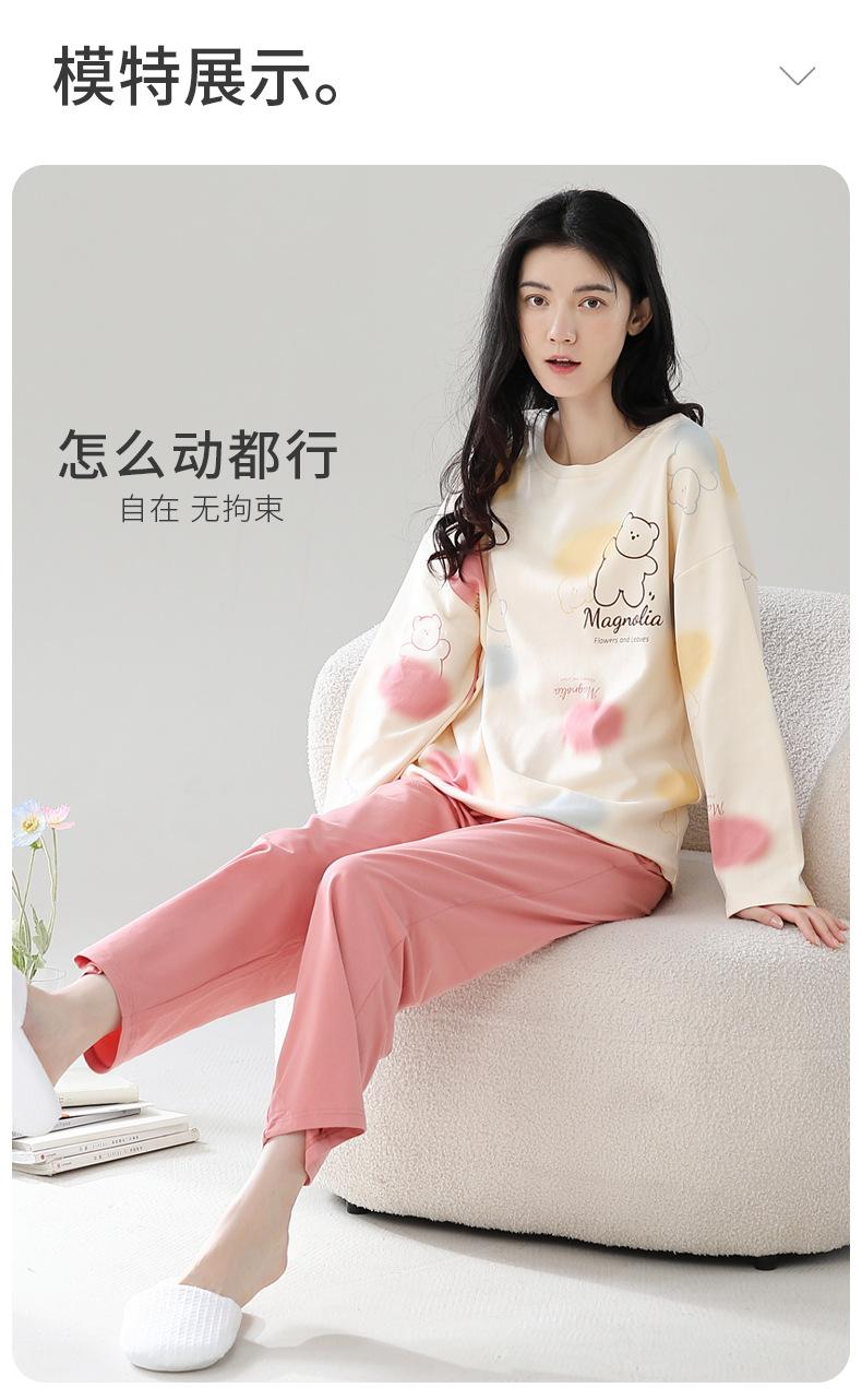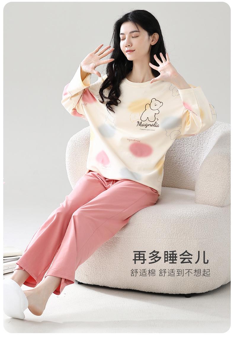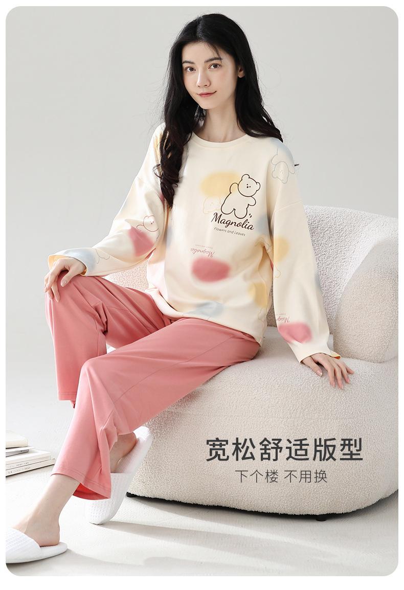 Pijamas de mujer de primavera y otoño, jersey de algodón de manga larga, holgado, de talla grande, nuevo traje de algodón para mujer para otoño e invierno, ropa de casa