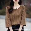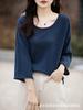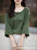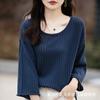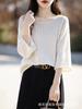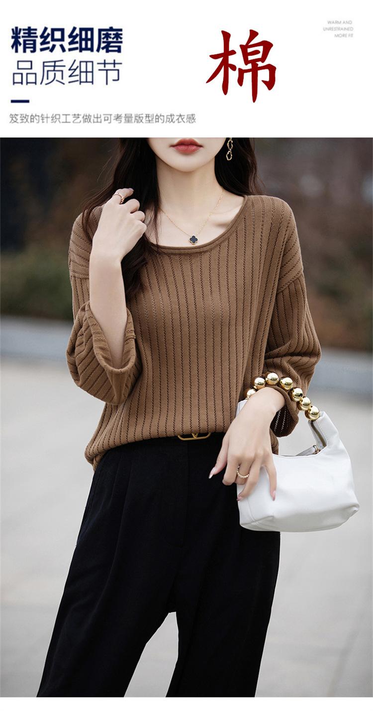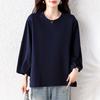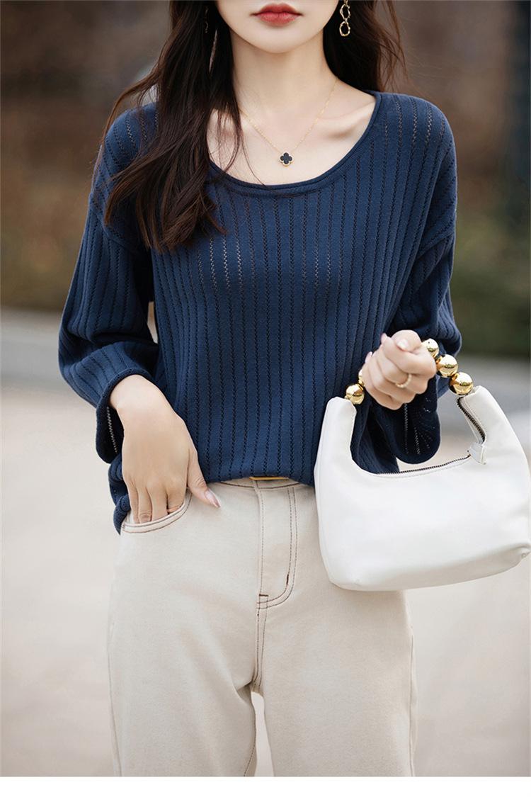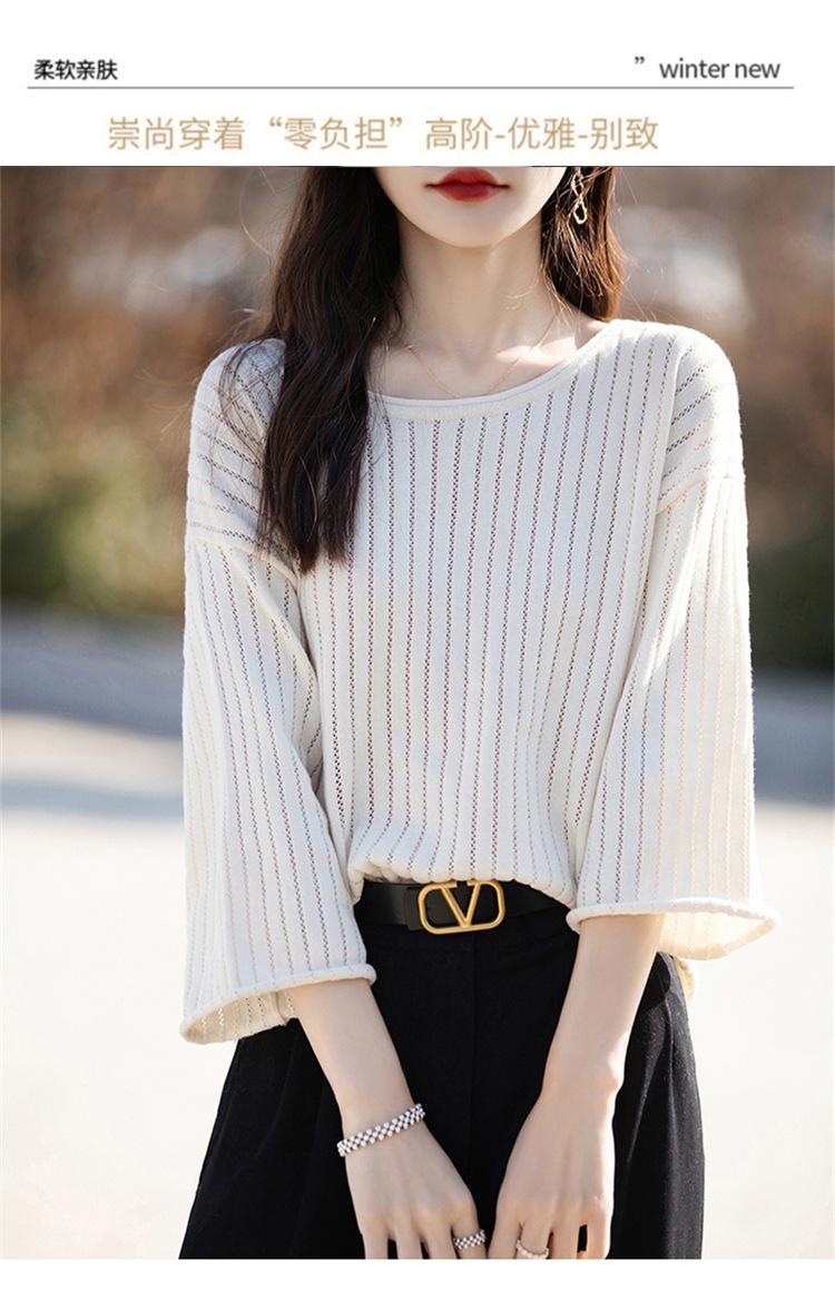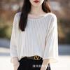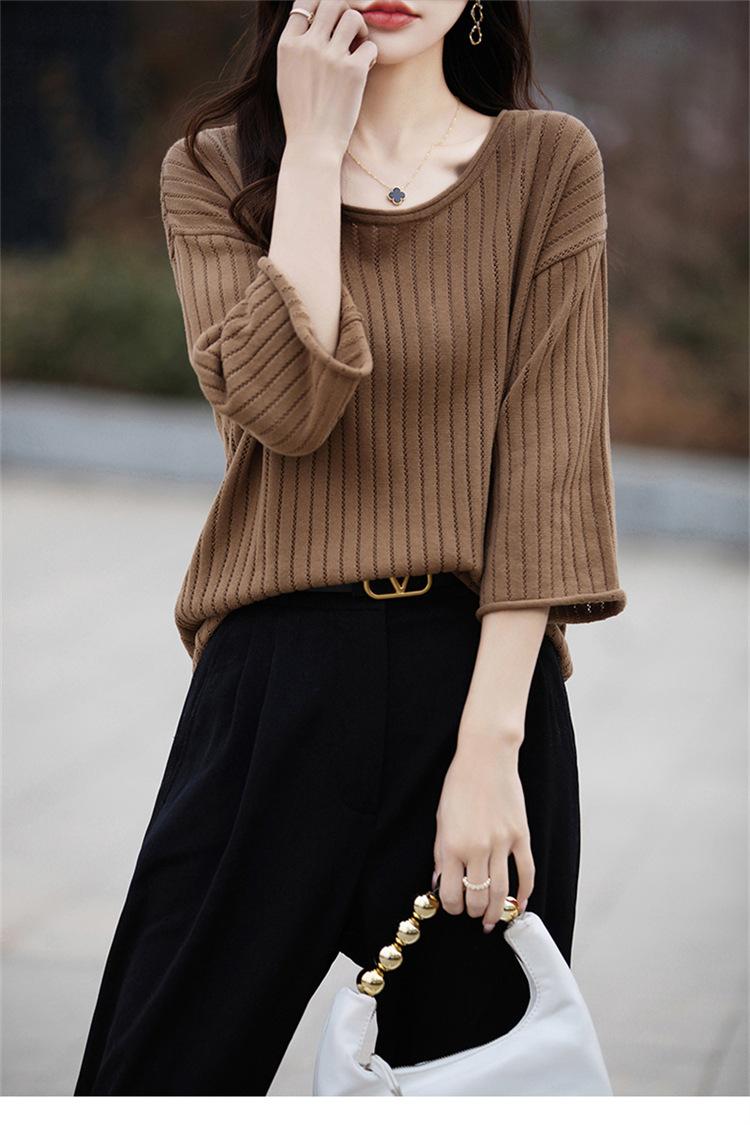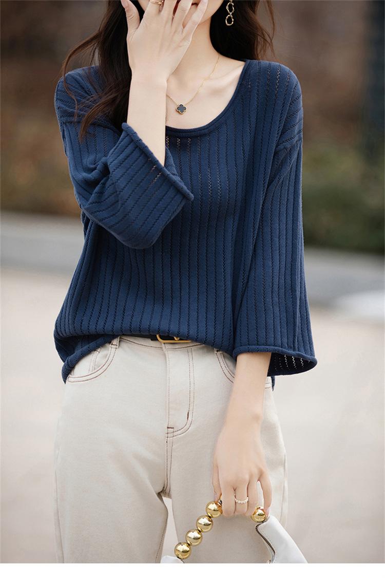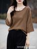 Jersey de talla grande de media manga de verano para mujer, jersey de punto hueco de algodón, camiseta, suéter fresco, versión suelta, manga 3/4