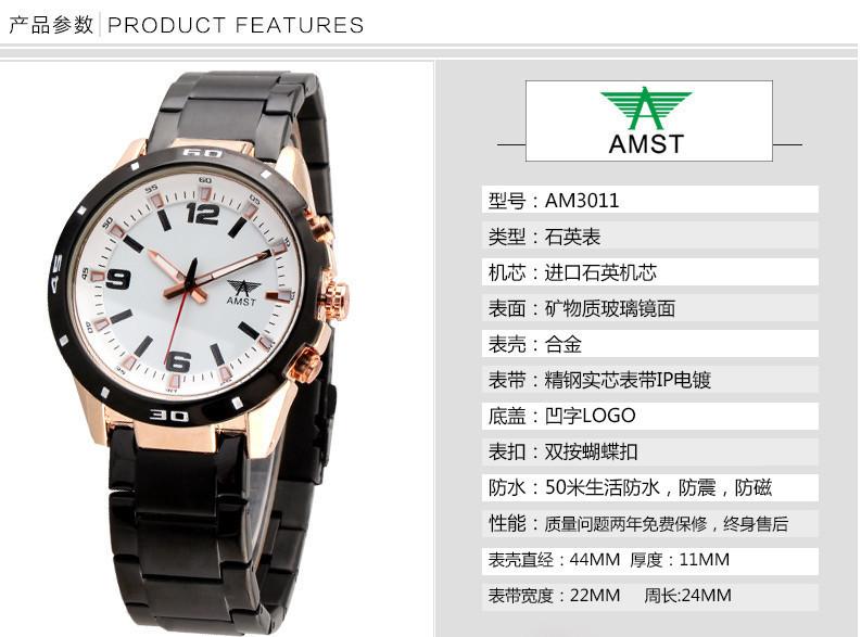 Reloj de pulsera de cuarzo para hombre AMST Aimee genuino, impermeable, multifuncional, de moda, con correa de acero, AM3011