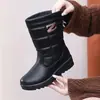 Botas de nieve de invierno nuevas, cómodas y cálidas de lana para mujer, impermeables, antideslizantes, de caña media, con fondo plano y forro polar de algodón grueso para la nieve.