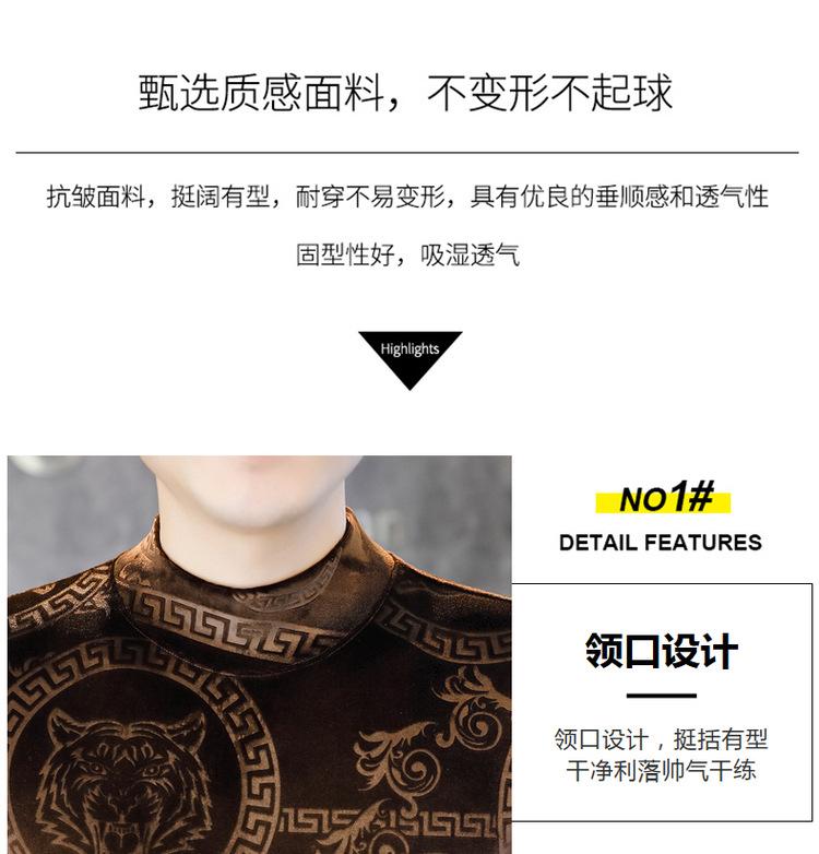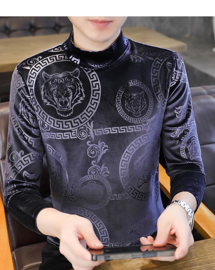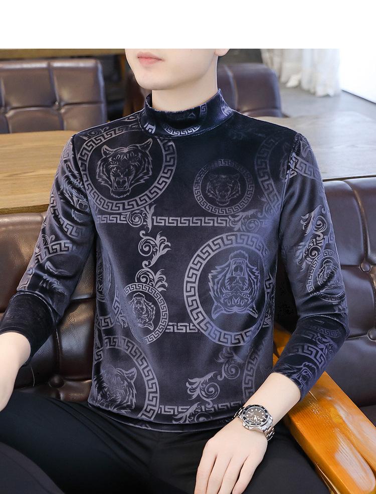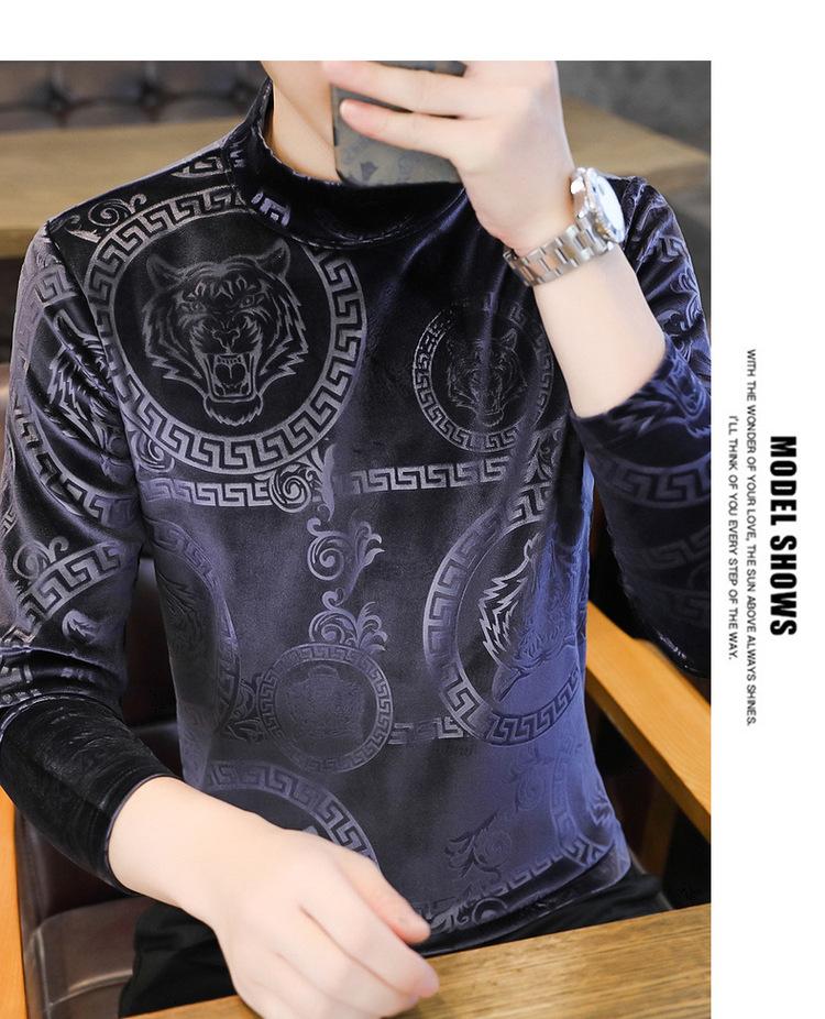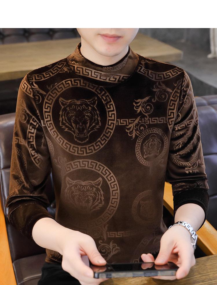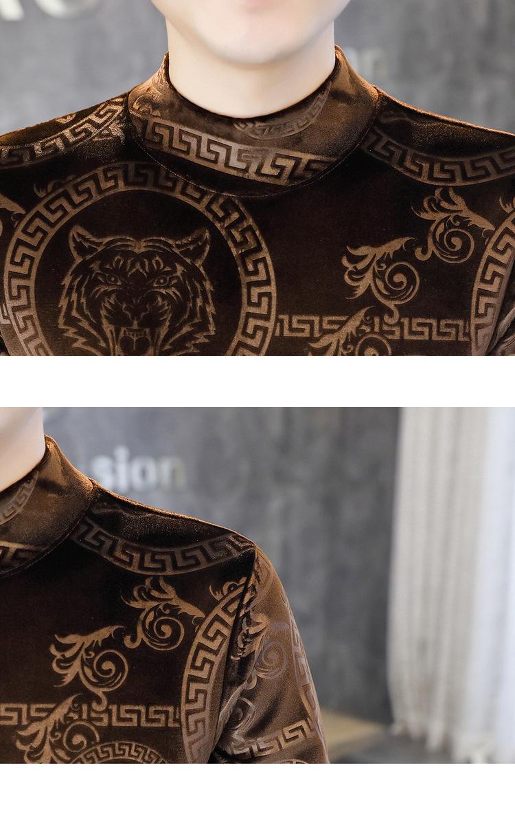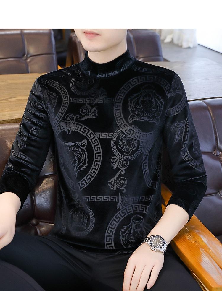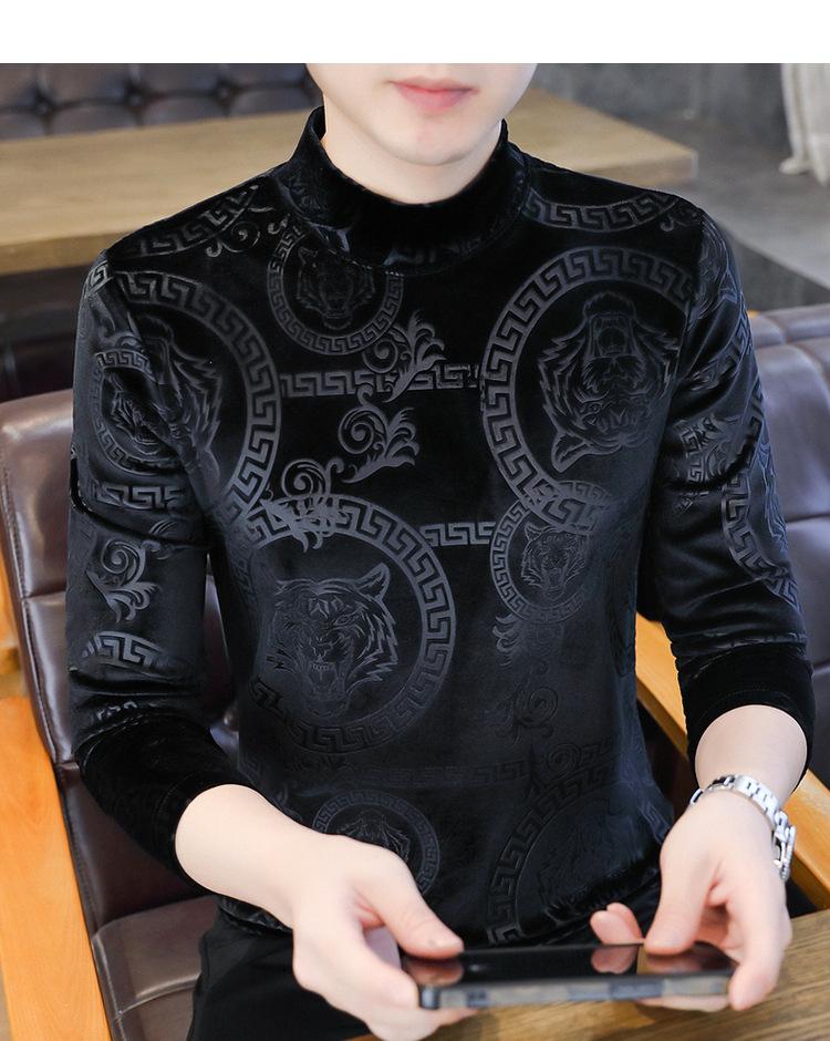 Suéter de manga larga de cuello medio de terciopelo dorado para otoño e invierno, nueva marca de moda para hombre, camiseta de cuello alto cálida y gruesa, camisa de fondo