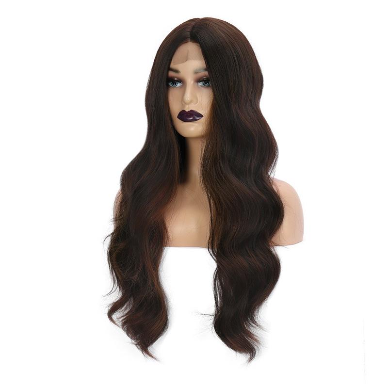 Peluca popular transfronteriza europea y americana para damas, peluca de encaje pequeña, n.° 4, peluca de encaje de fibra química de pelo largo y rizado con ondas grandes