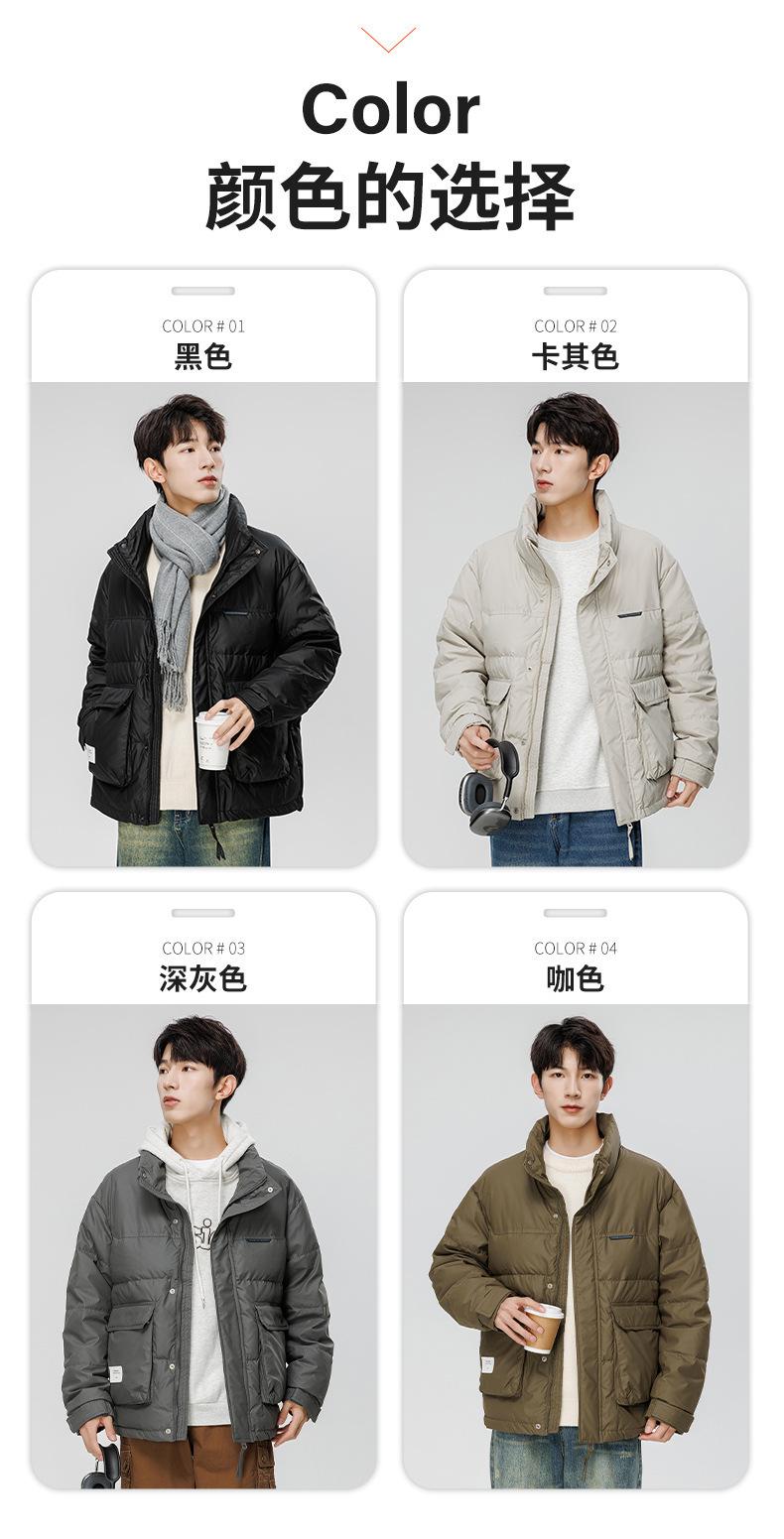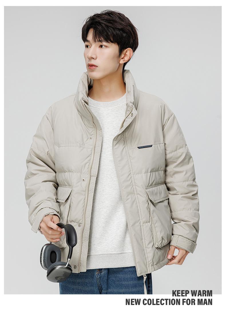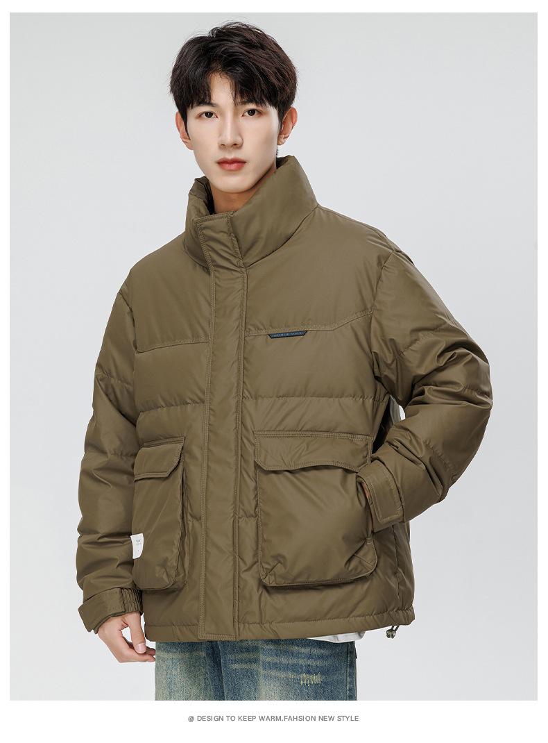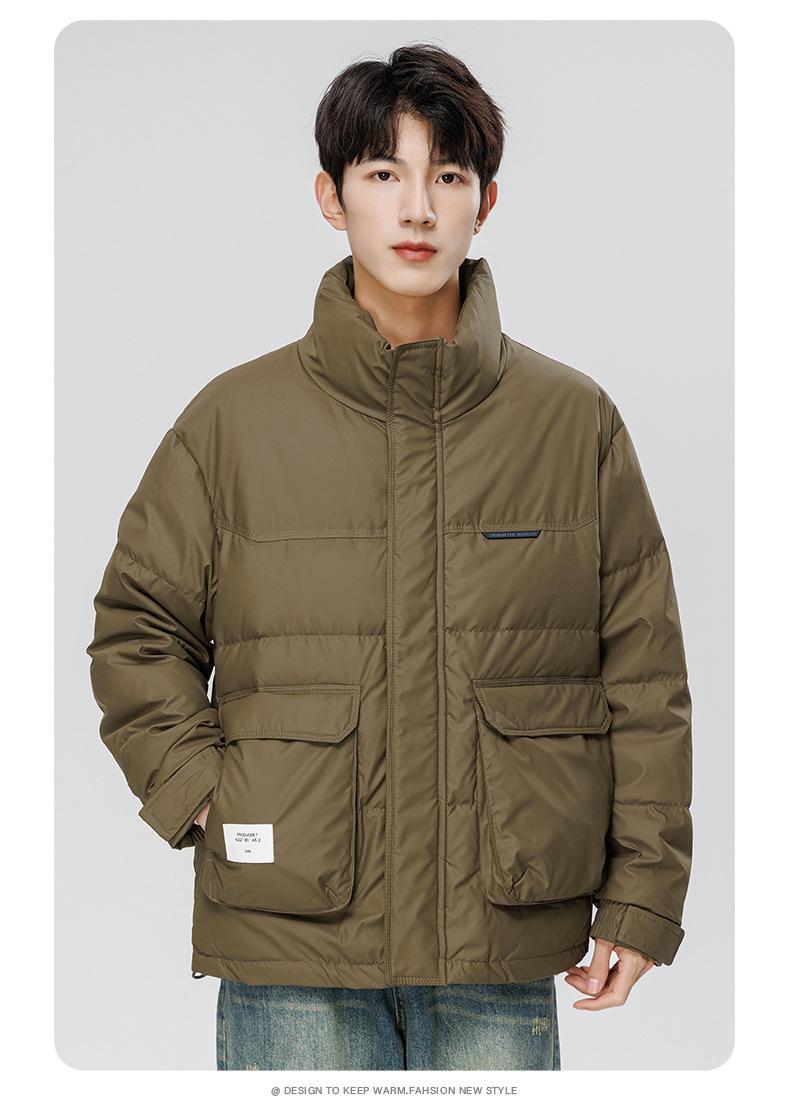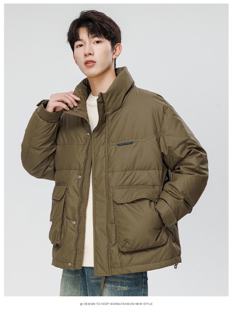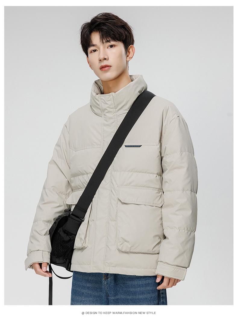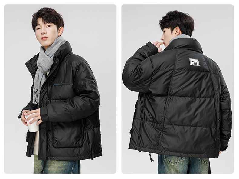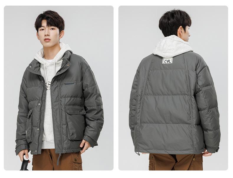 Chaqueta de plumón cálida para hombre, cuello alto corto, marca de moda, deportiva, informal, ropa de trabajo de invierno, abrigo de plumón de pato blanco cálido con múltiples bolsillos