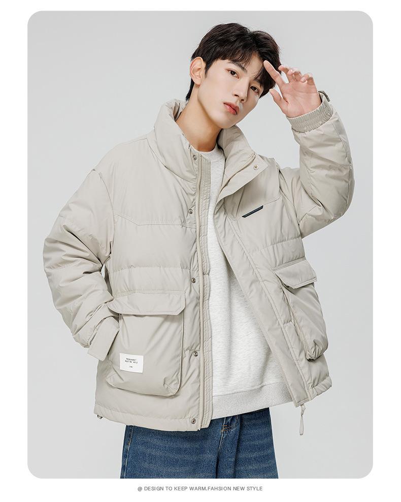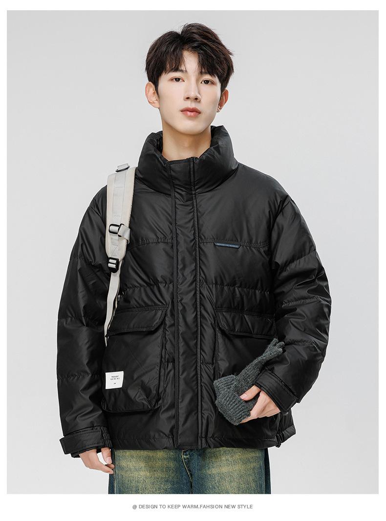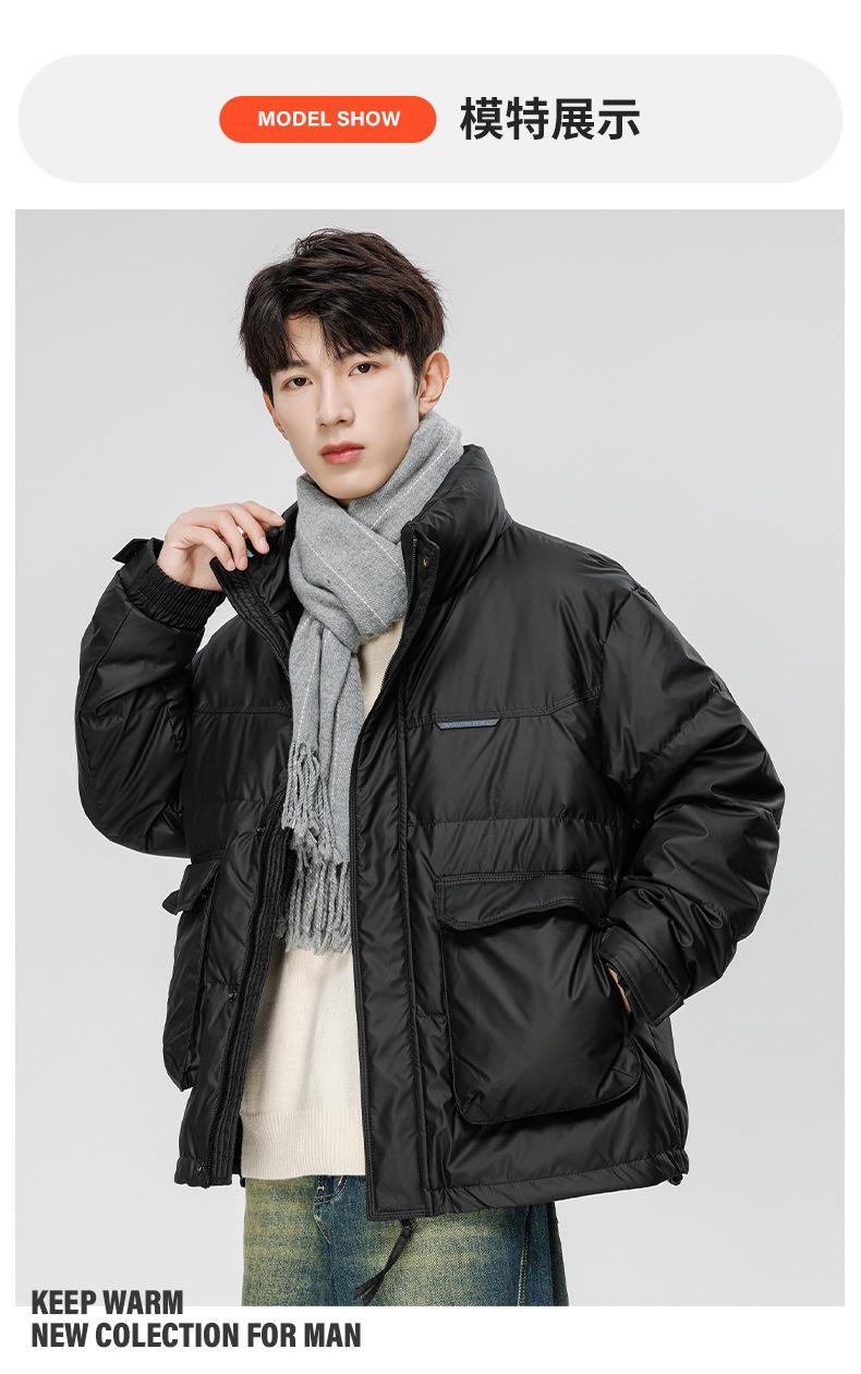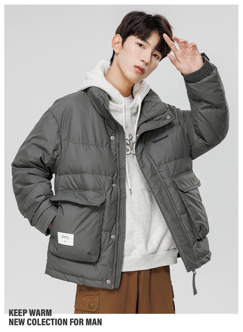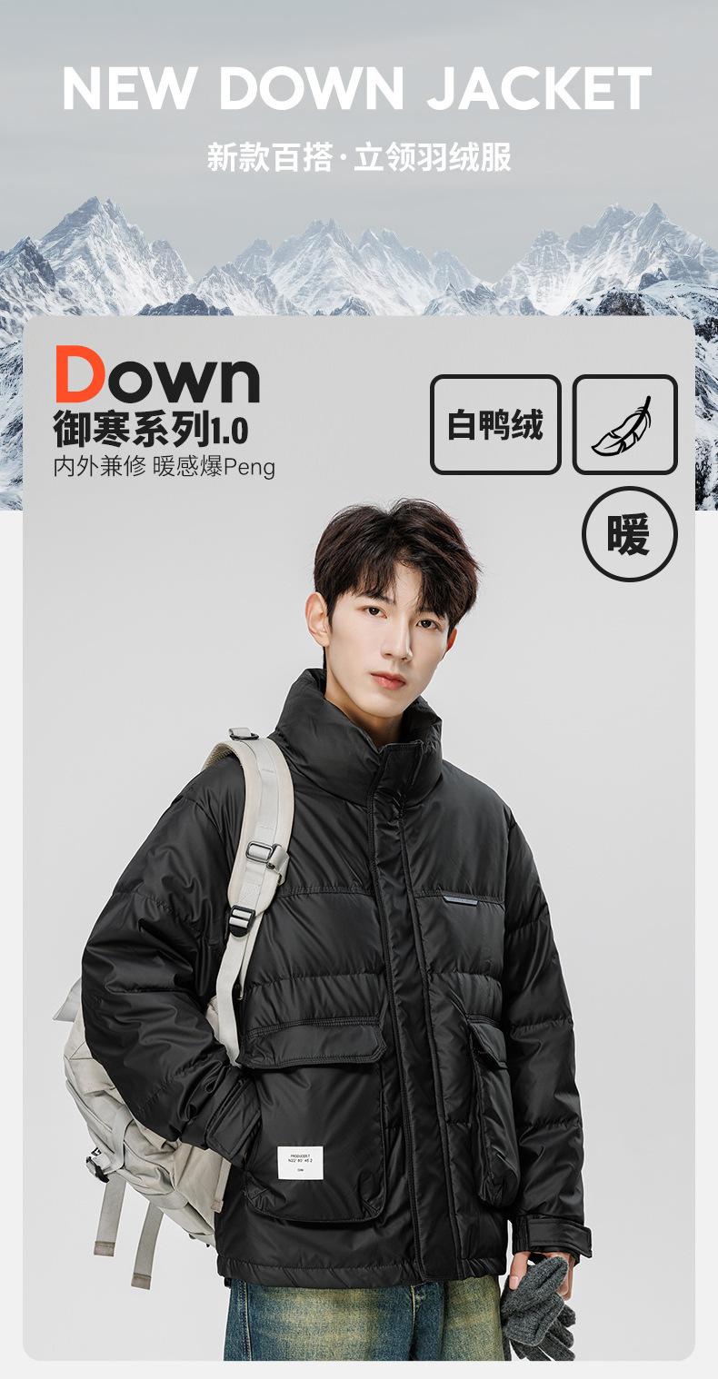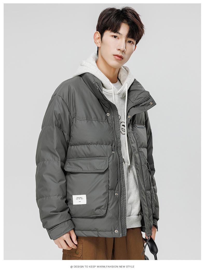Chaqueta de plumón cálida para hombre, cuello alto corto, marca de moda, deportiva, informal, ropa de trabajo de invierno, abrigo de plumón de pato blanco cálido con múltiples bolsillos