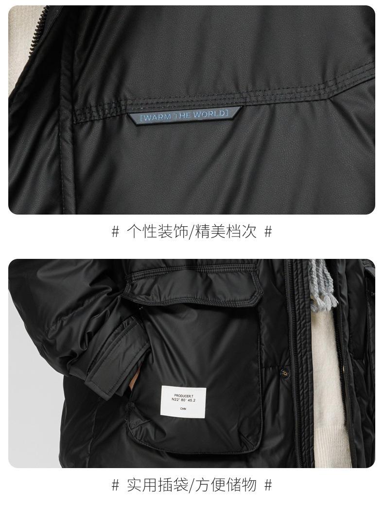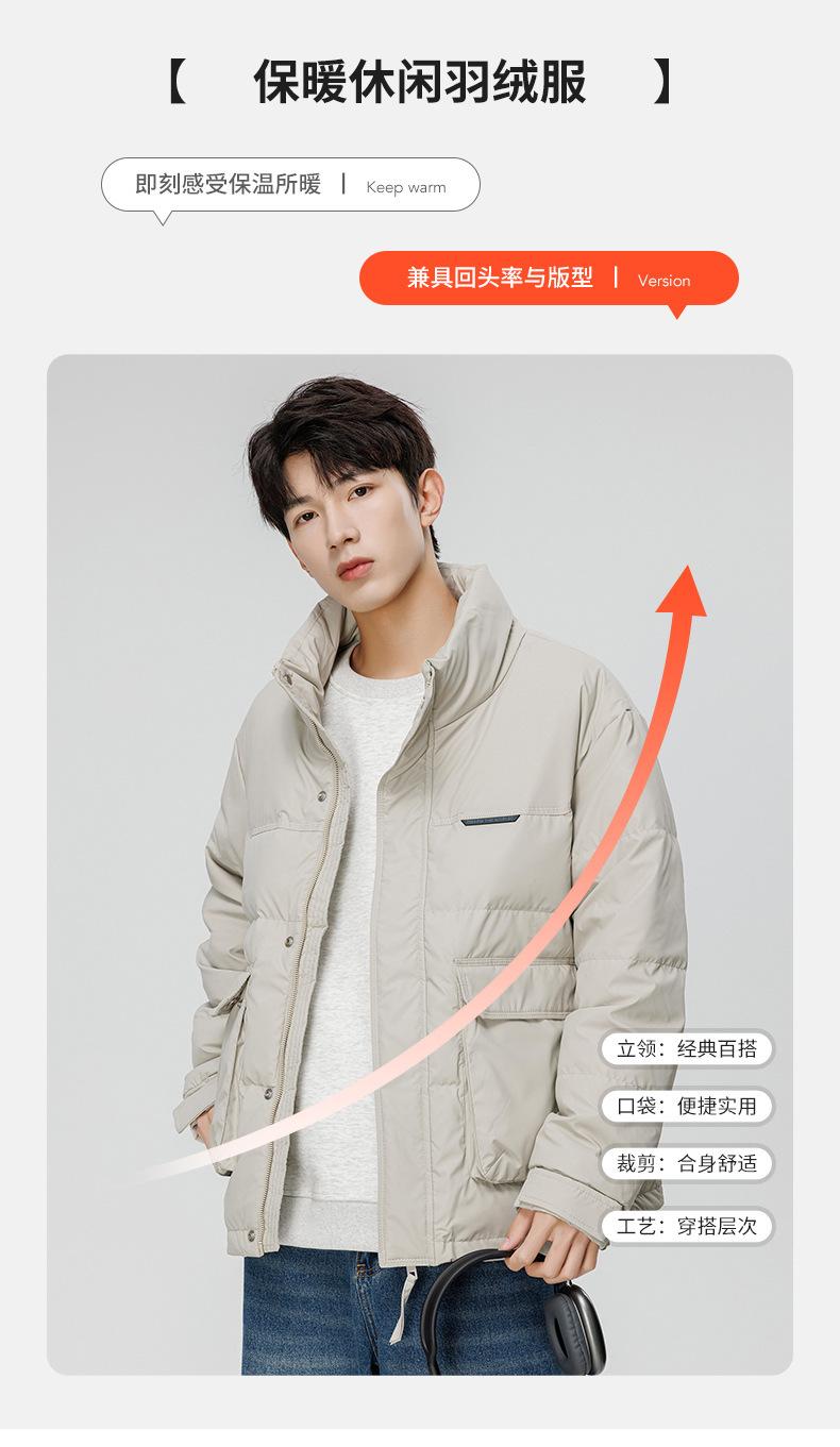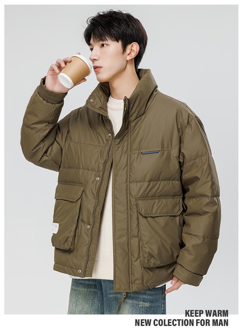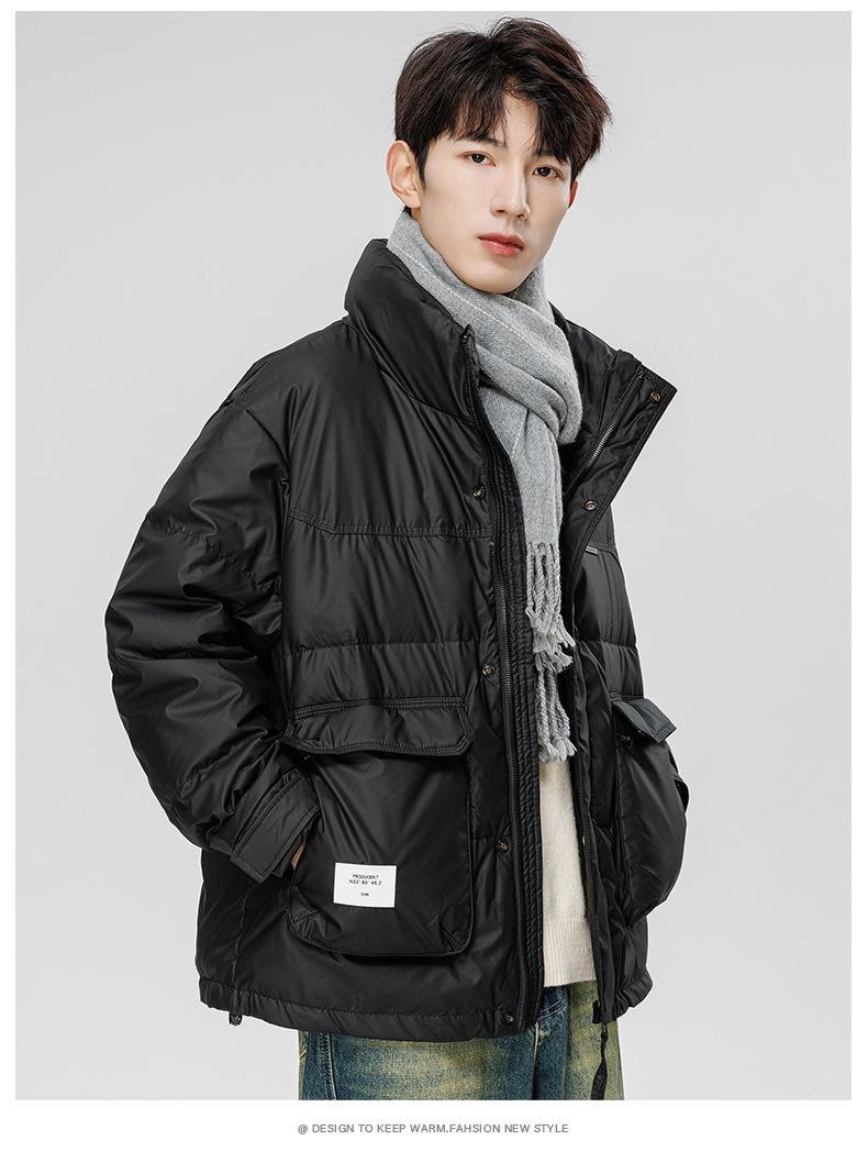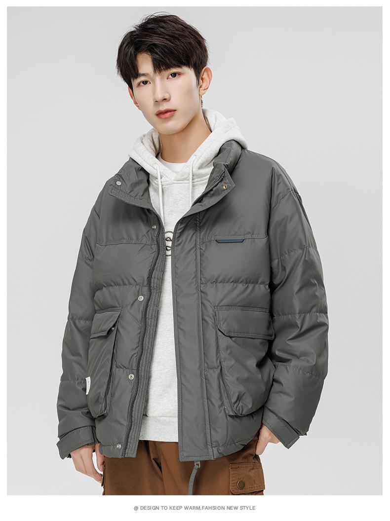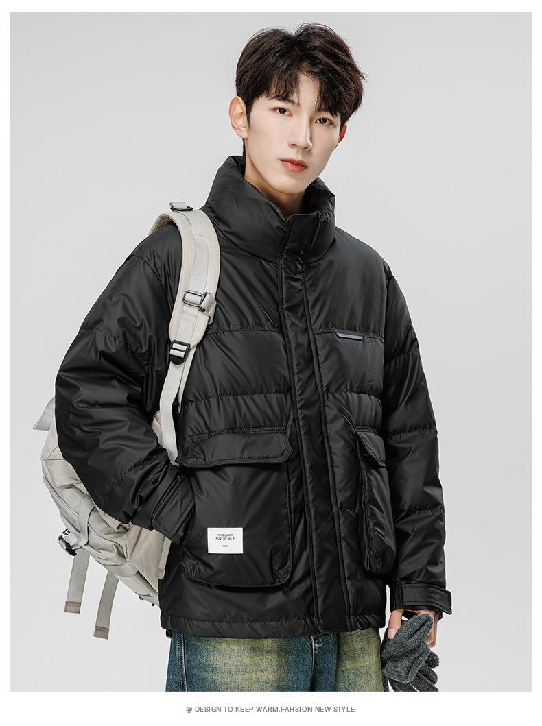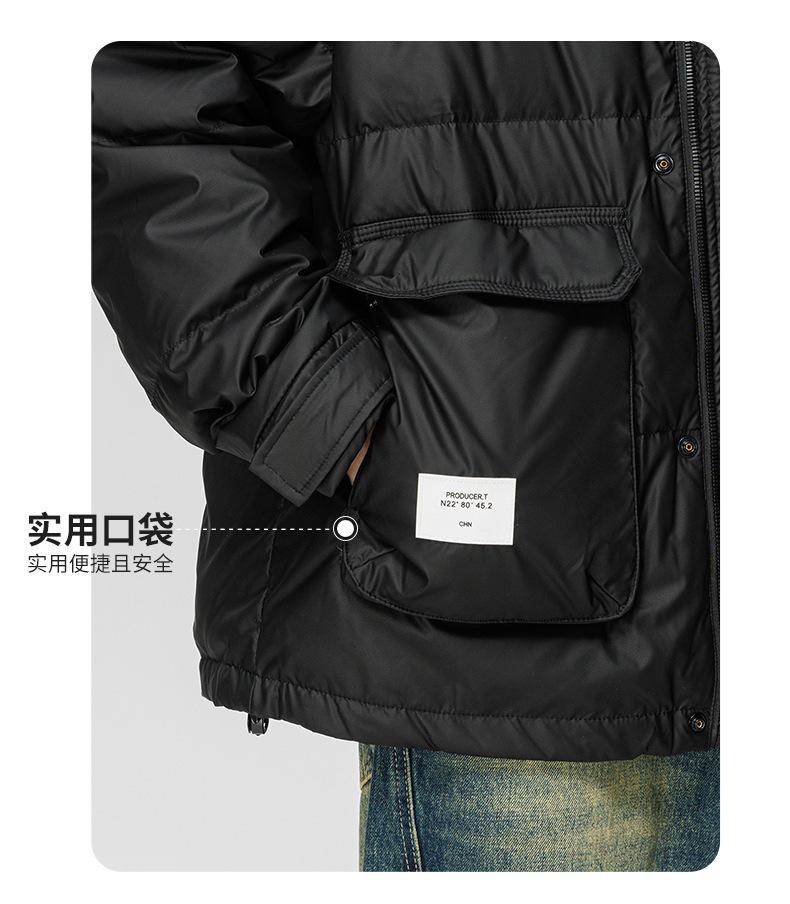 Chaqueta de plumón cálida para hombre, cuello alto corto, marca de moda, deportiva, informal, ropa de trabajo de invierno, abrigo de plumón de pato blanco cálido con múltiples bolsillos
