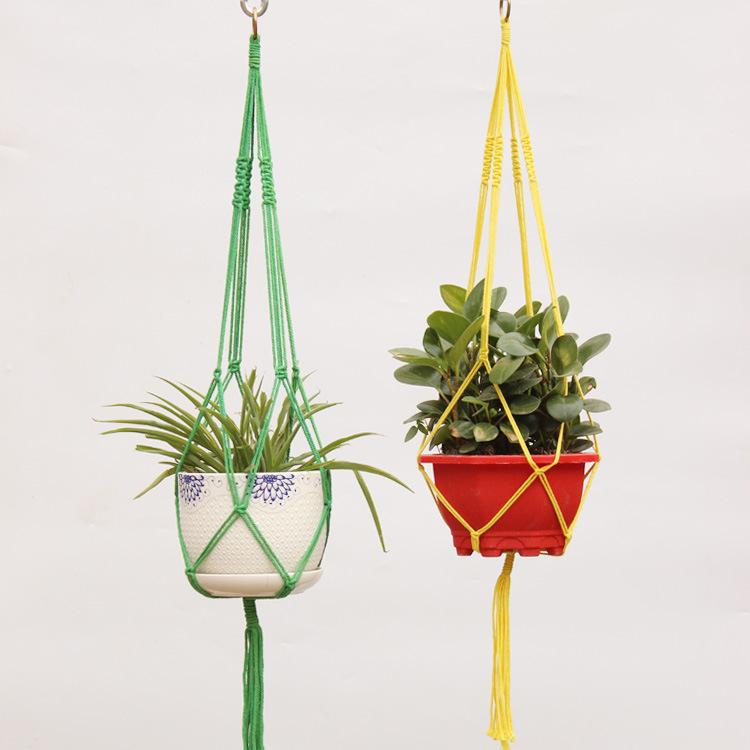 | Maceta de flores de cuerda de algodón, bolsa de red, percha, cesta colgante, cesta colgante, bolsa de red, cuerda colgante, maceta de flores tejida a mano, bolsa de red |