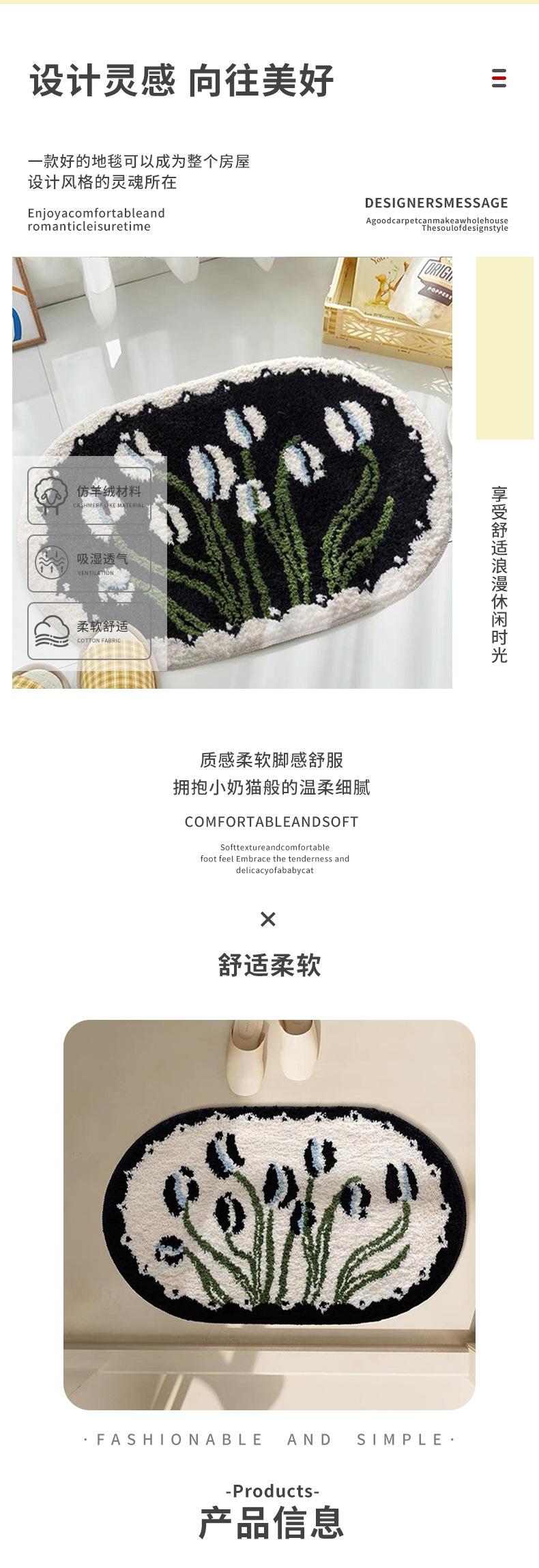 Alfombra de Baño Felpa Absorbente de Agua Antideslizante Alfombra de Piso Mesita de Noche Hogar Dormitorio Baño Alfombra para Pies Moderna Simple