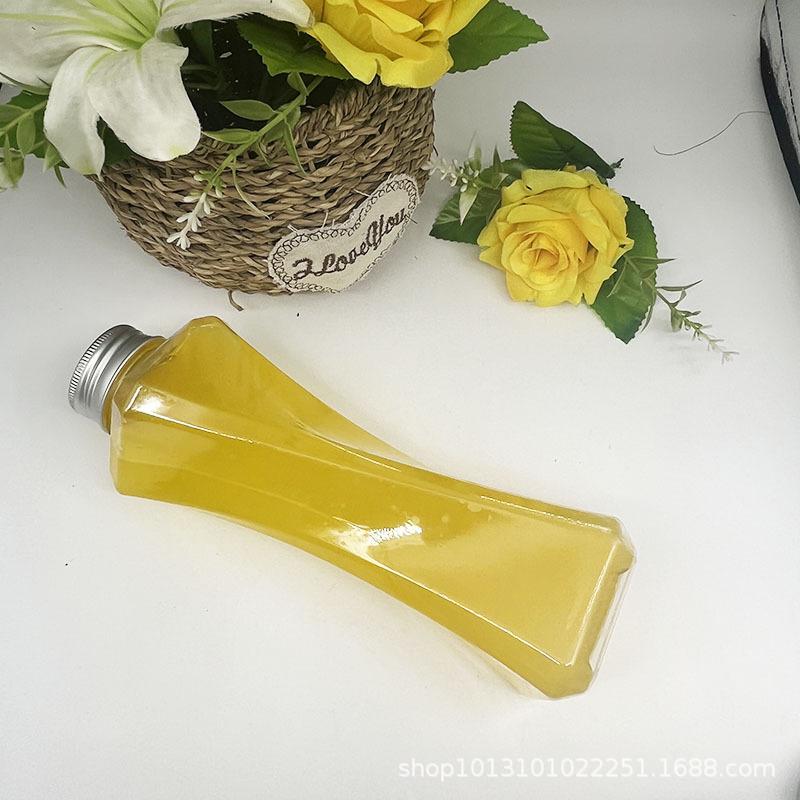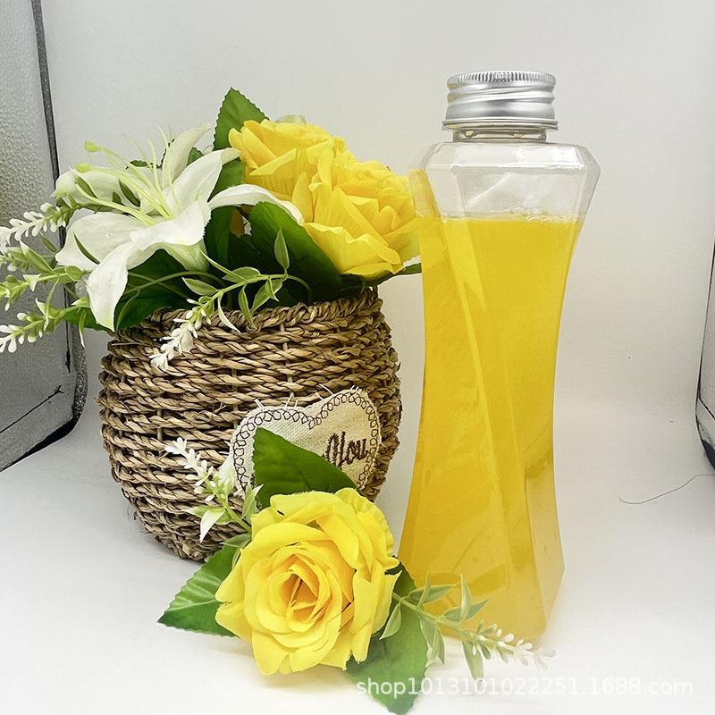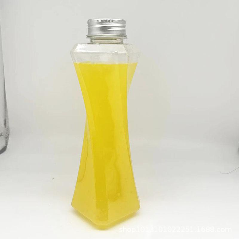 Botella de jugo para bebida cintura pequeña botella de té con leche tapa de aluminio vaso para té con leche para llevar botella de plástico para jugo fresco