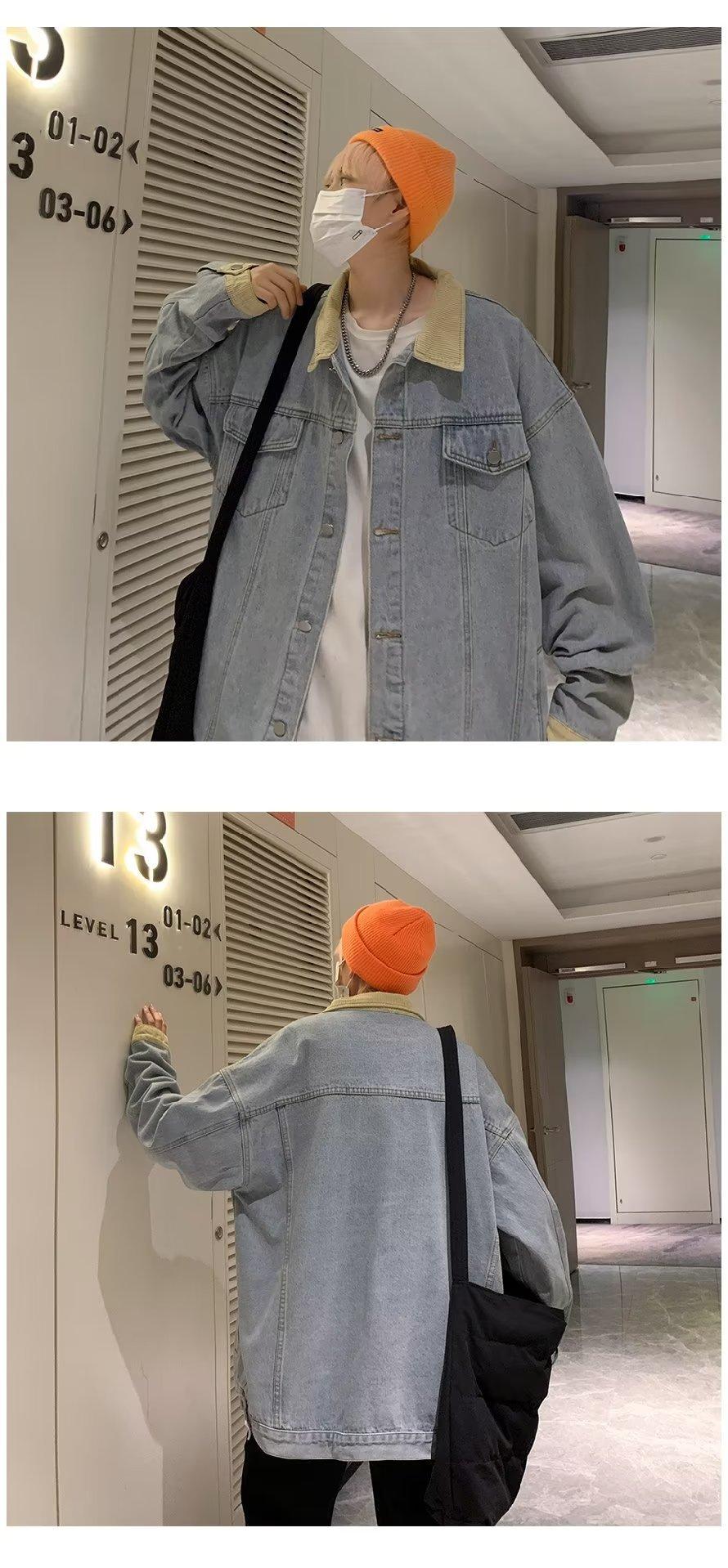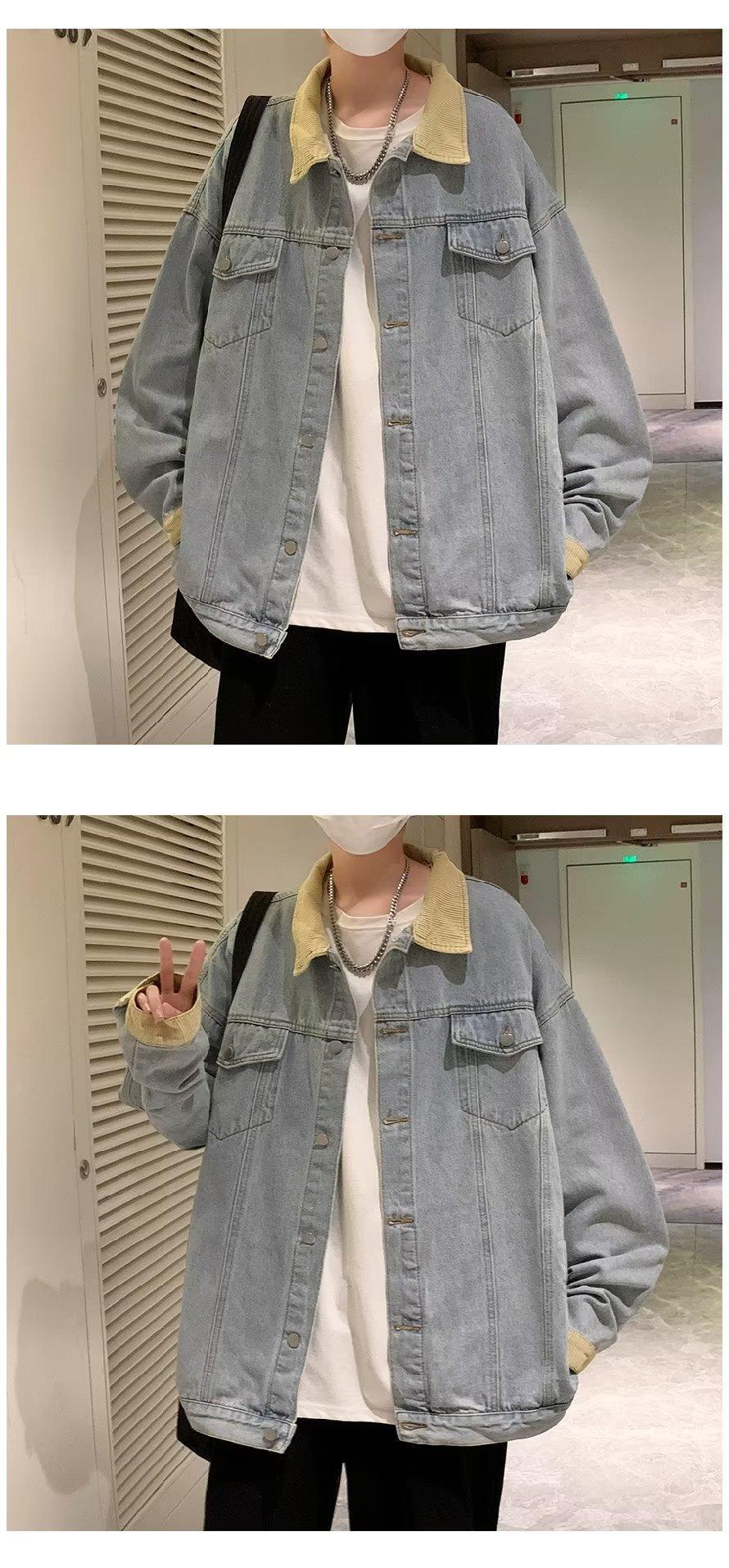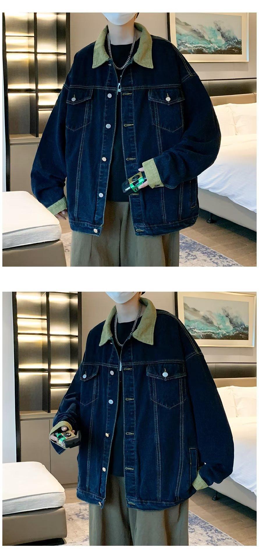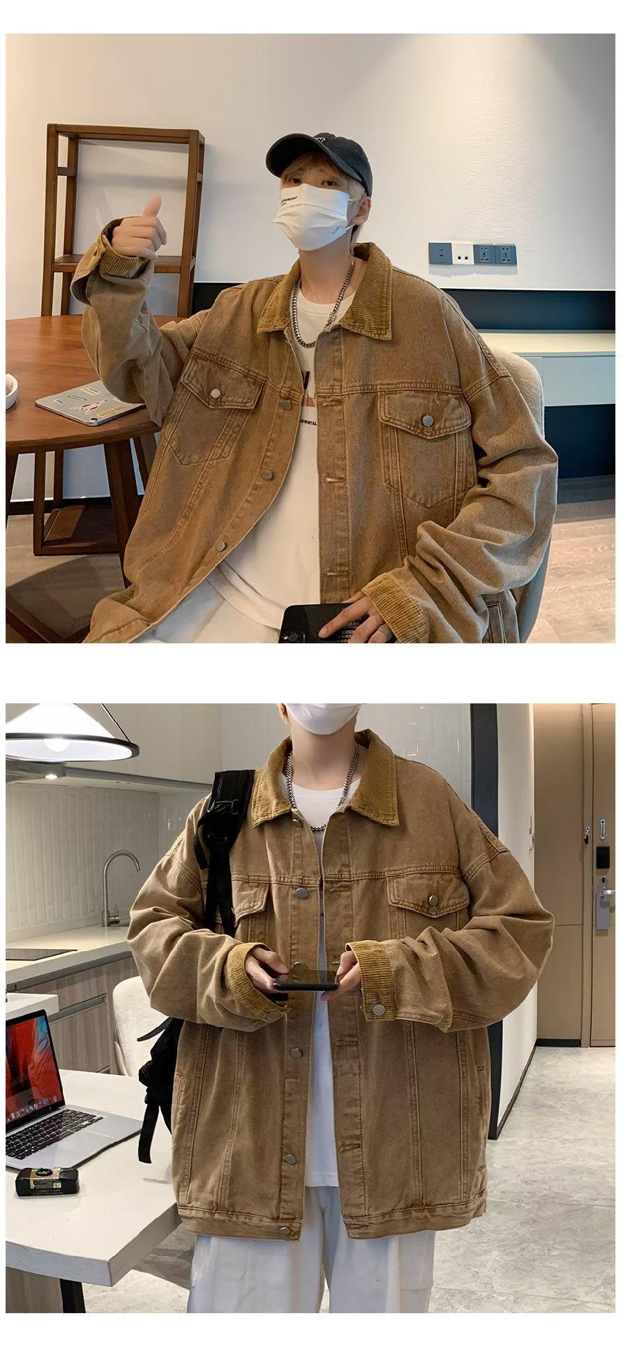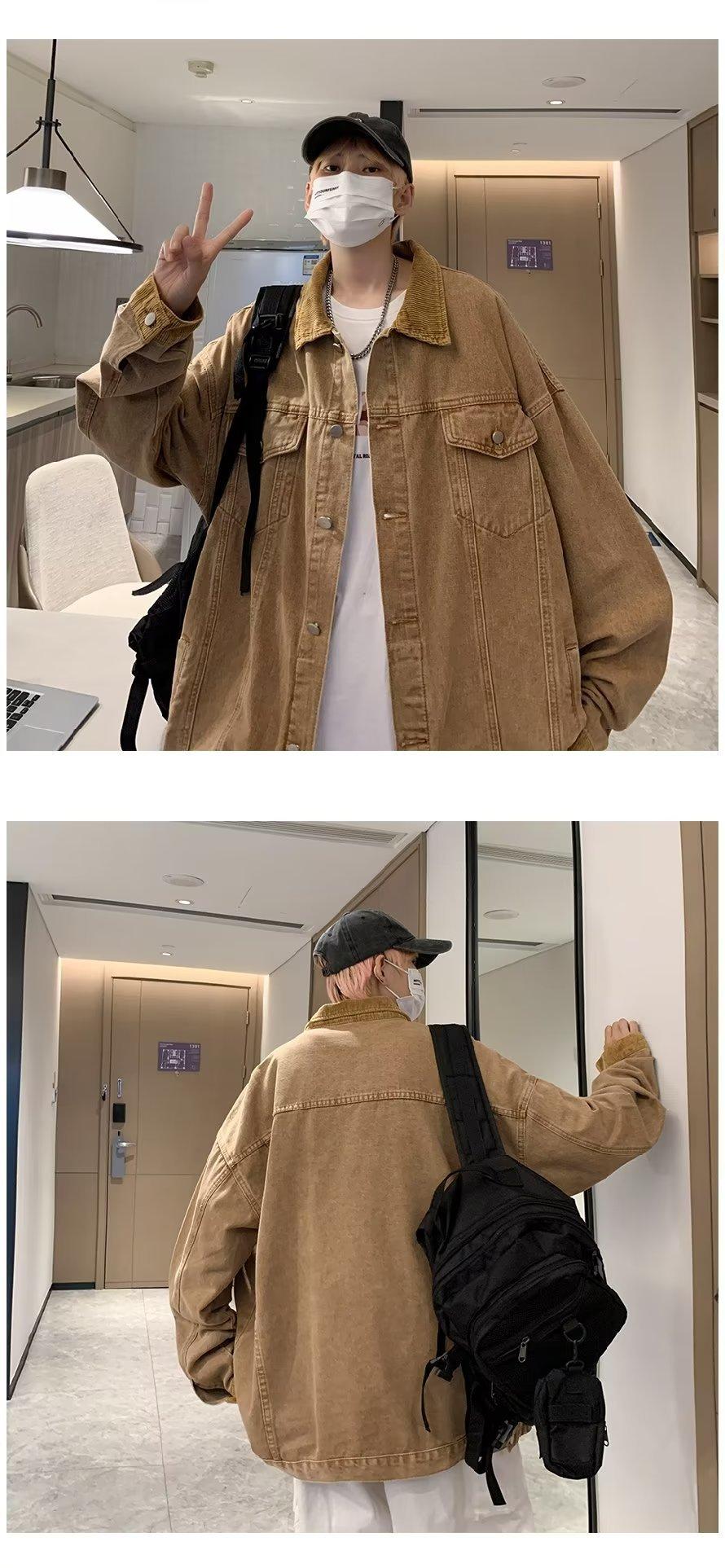 Chaqueta vaquera retro estilo americano para hombre, talla grande, holgada, de calle, para primavera y otoño, lavada, estilo antiguo, elegante y elegante.