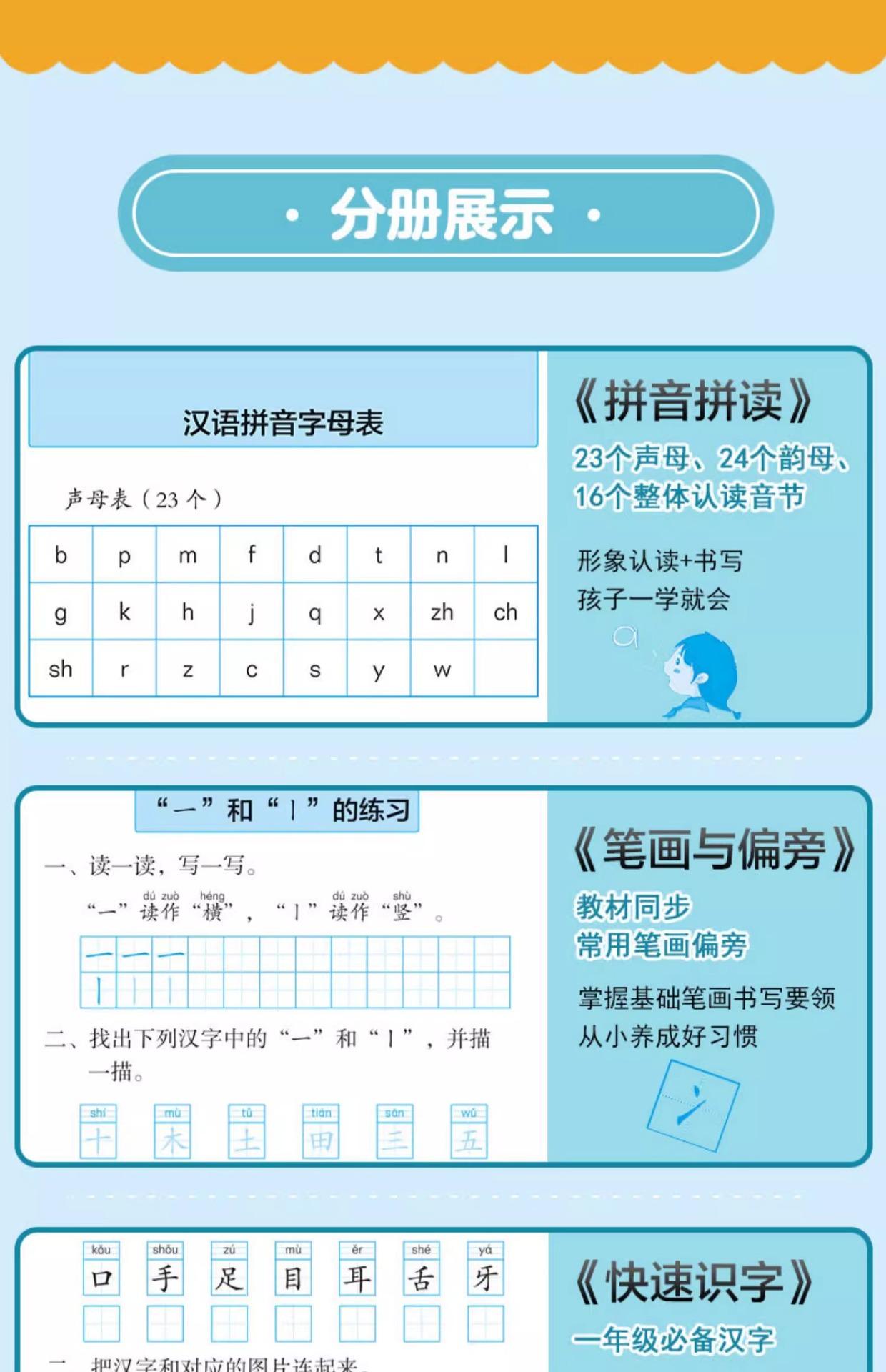 Un conjunto completo de 6 volúmenes de pinyin, trazos de alfabetización y entrenamiento radical para niños pequeños y jóvenes.