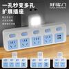 Convertidor de enchufe con USB y luz nocturna, toma de corriente porosa, extensión inalámbrica, enchufe multiusos de una vuelta, placa de cableado