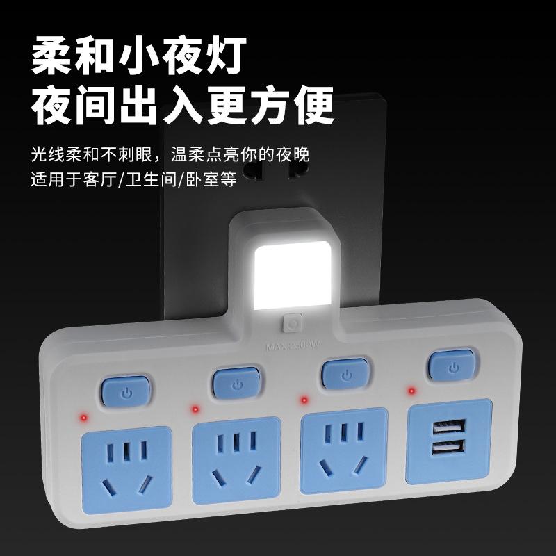 Compra Convertidor de enchufe con USB y luz nocturna, toma de corriente porosa, extensión inalámbrica, enchufe multiusos de una vuelta, placa de cableado al por mayor en Joom.pro