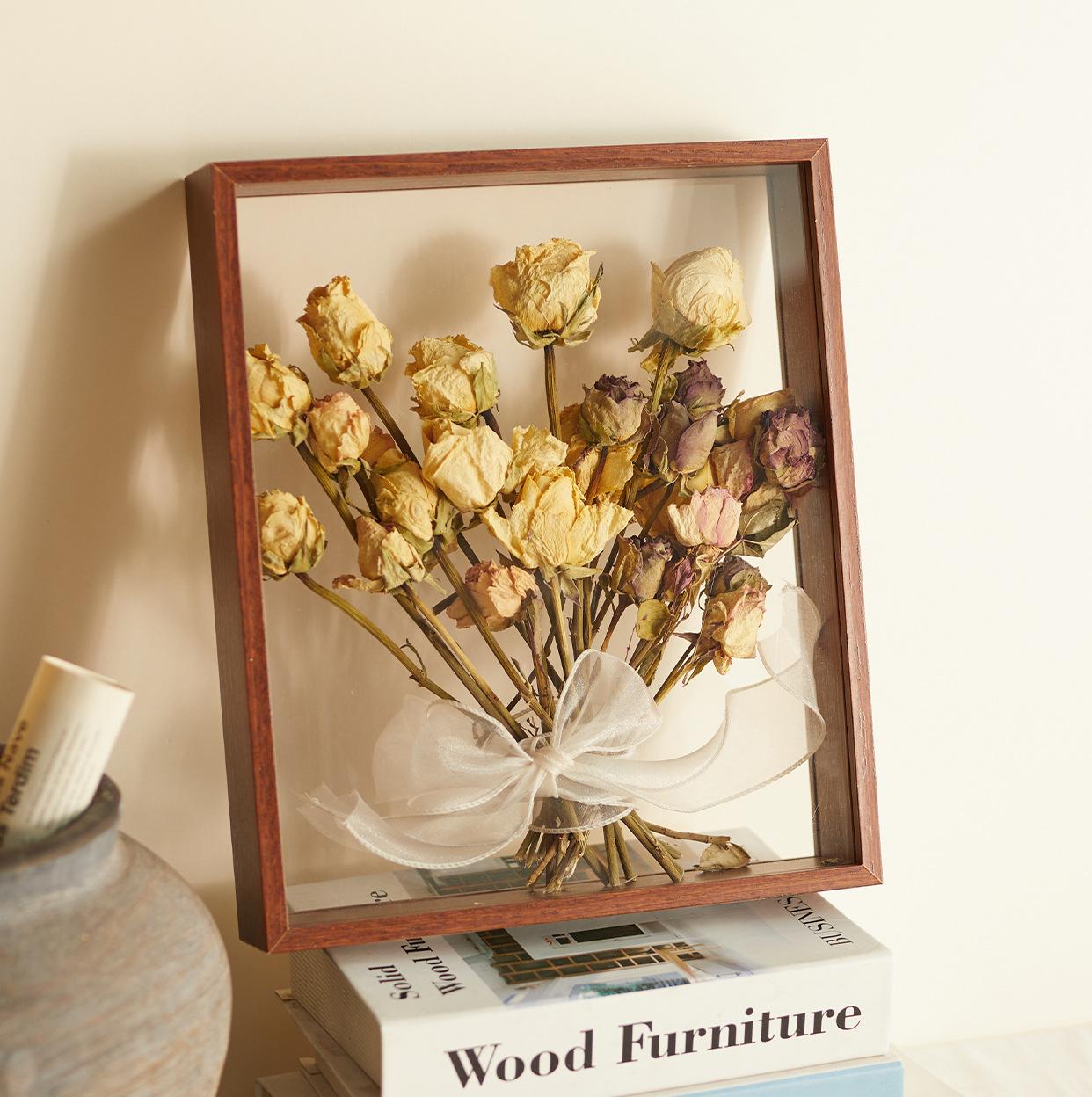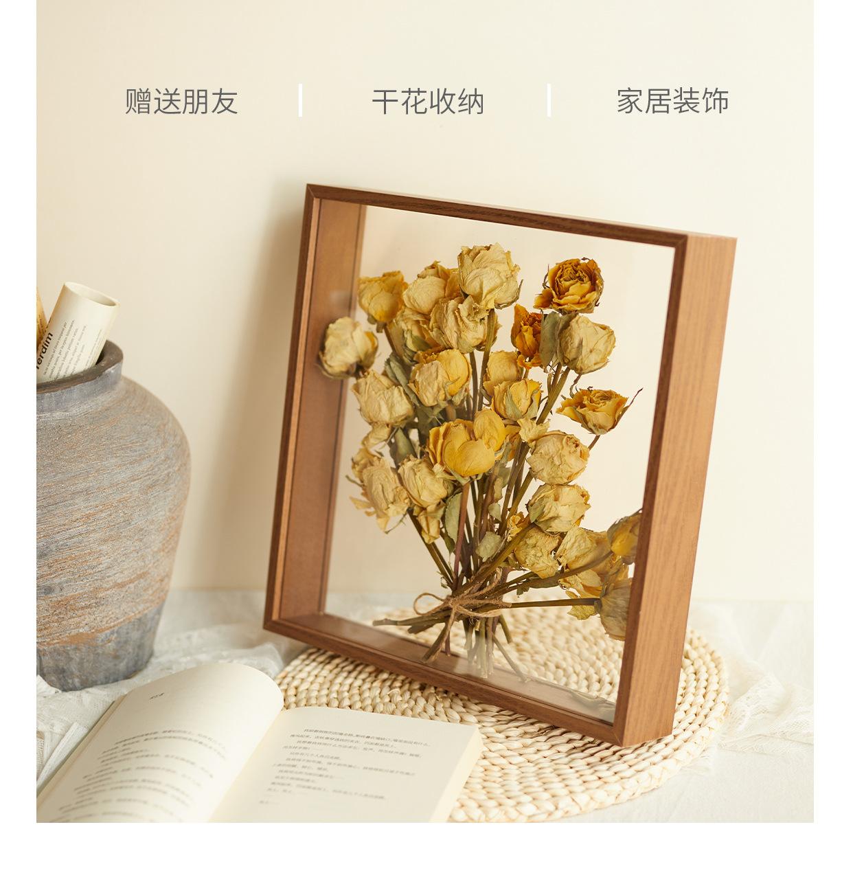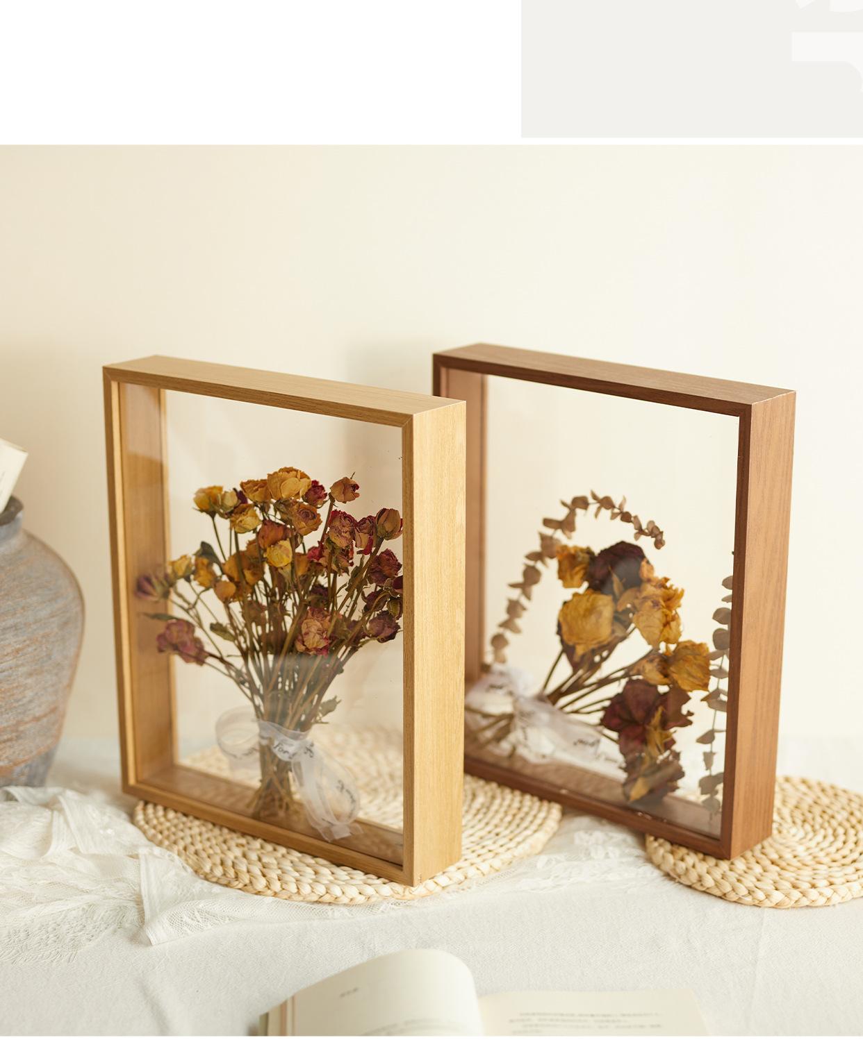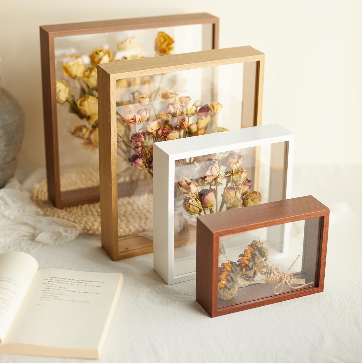 Marco de fotos de flores secas de madera hueco tridimensional diy marco para especímenes de flores montado marco acrílico transparente de doble cara exhibidor