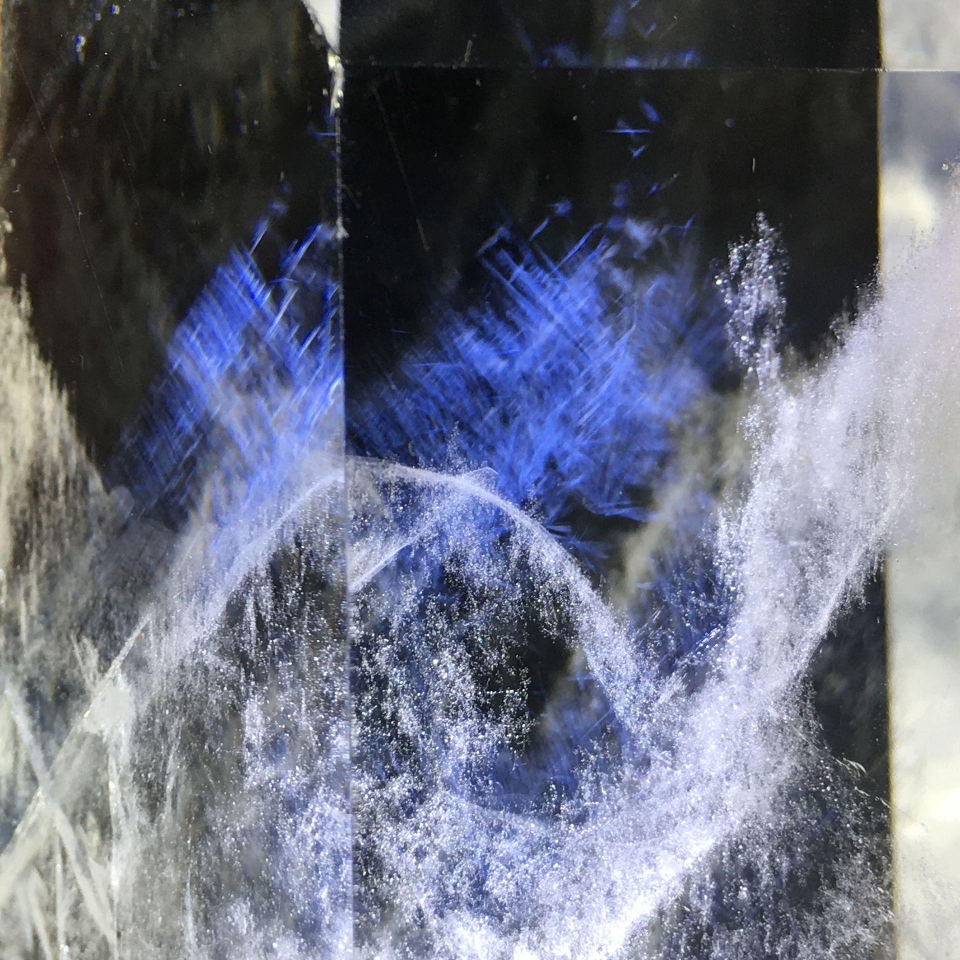 Columna de cristal blanco natural directa de fábrica con piedra de cristal de aguja azul, piedra de energía para moler, adornos de columna de una sola punta