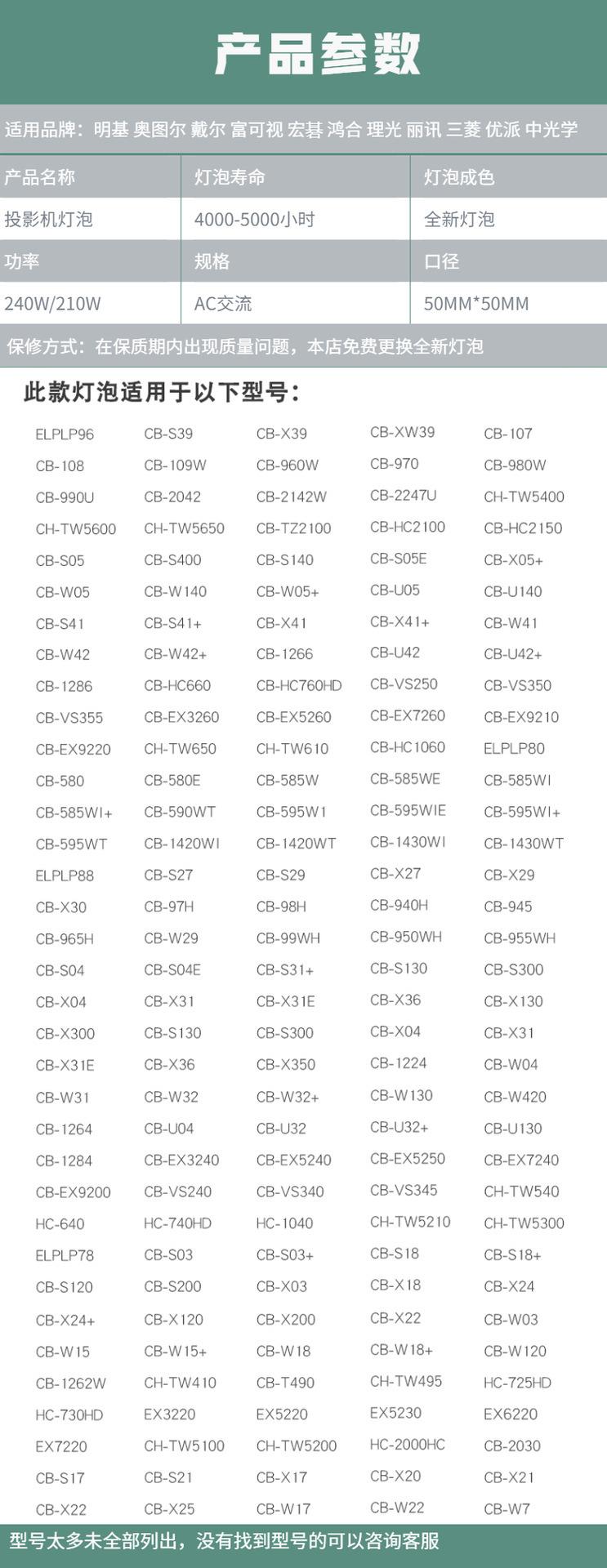 Adecuado para lámpara de proyector PowerliteV13H010L88 ELPLP88 CB-W04/W32/U32