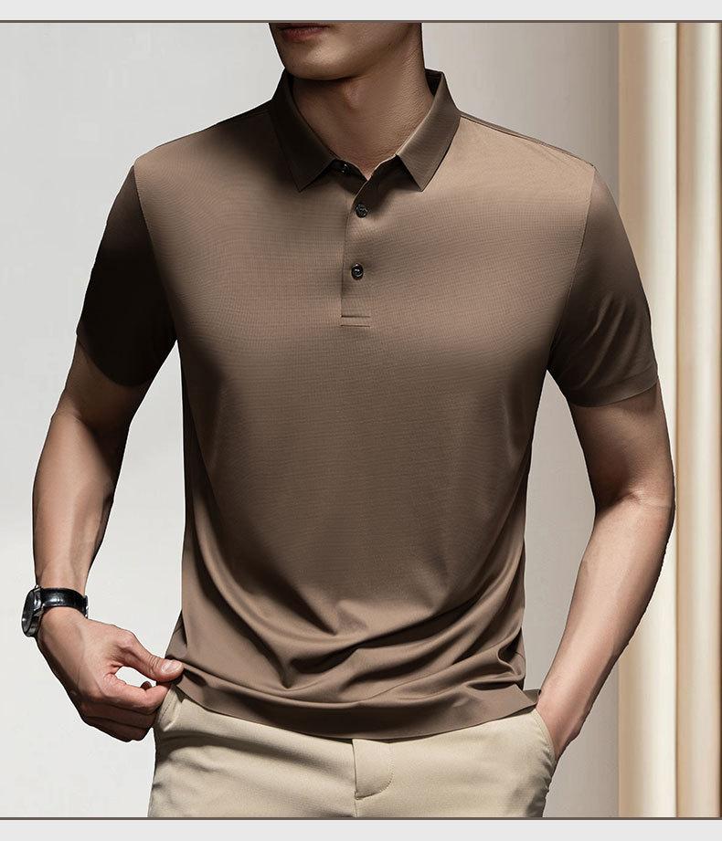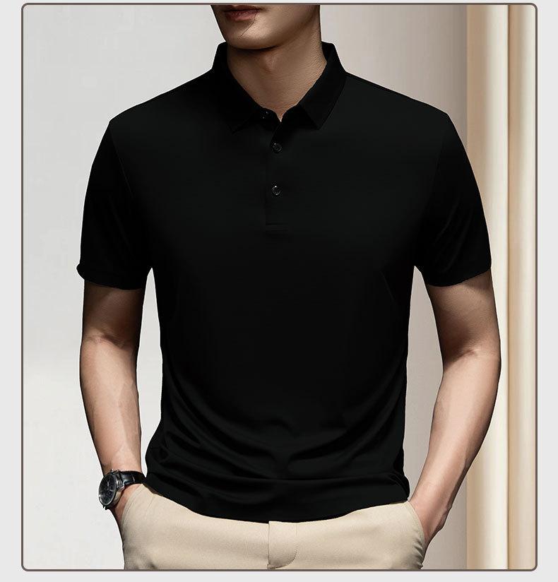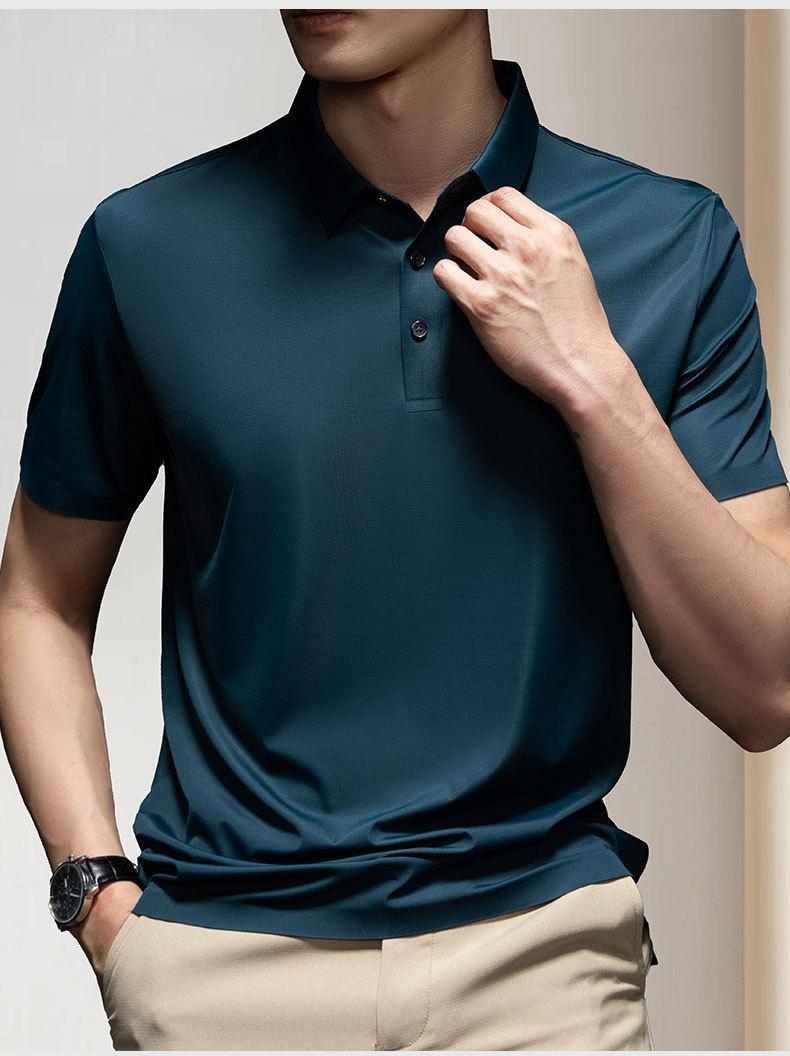 Polo de manga corta de seda helada de verano para hombre, ligero, informal, de negocios, con amoníaco, elástico, de media manga, 33888