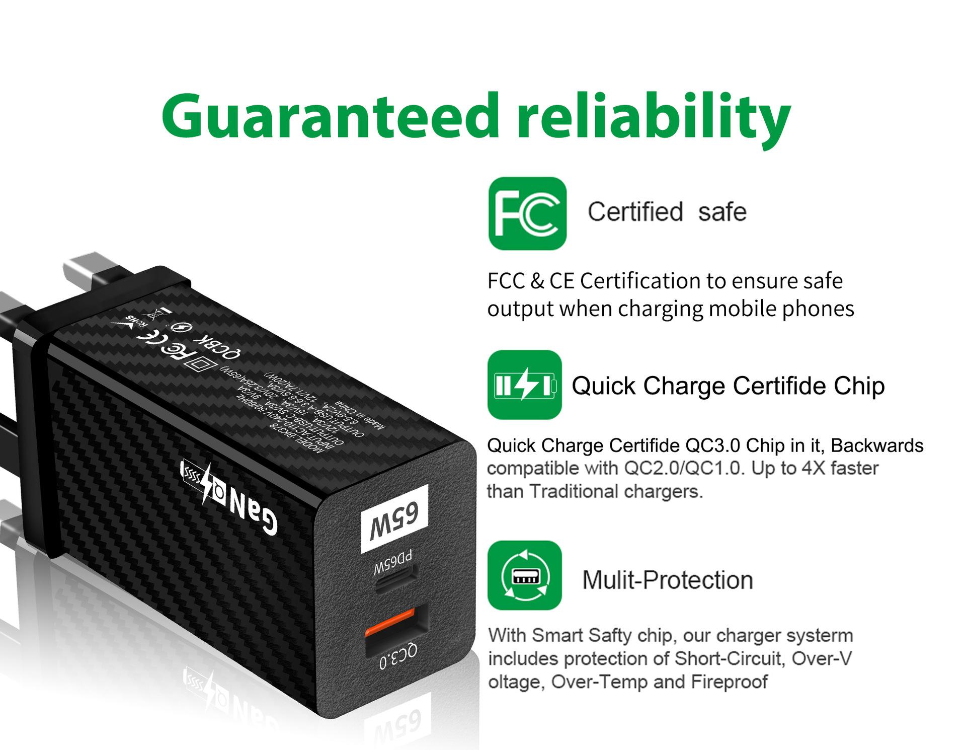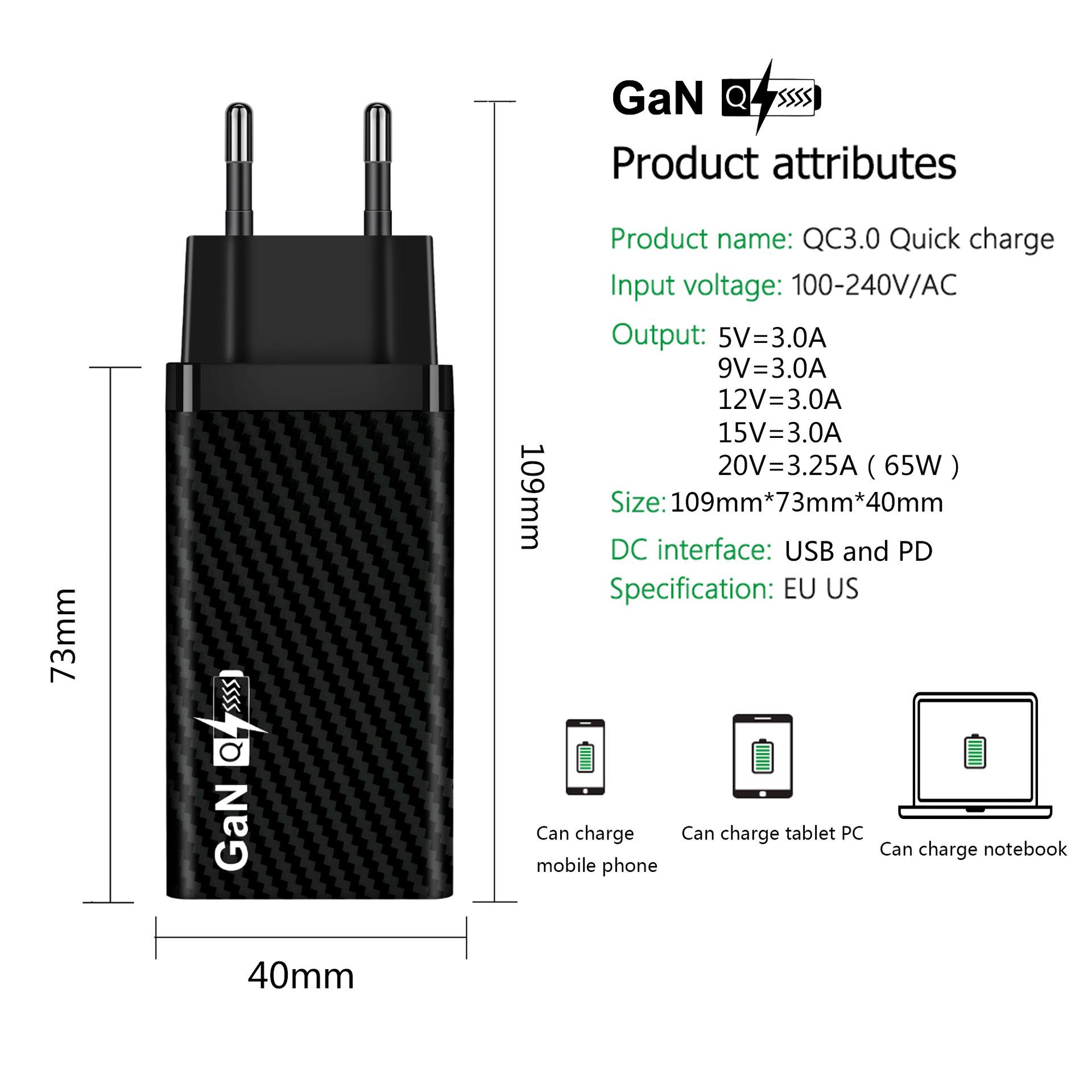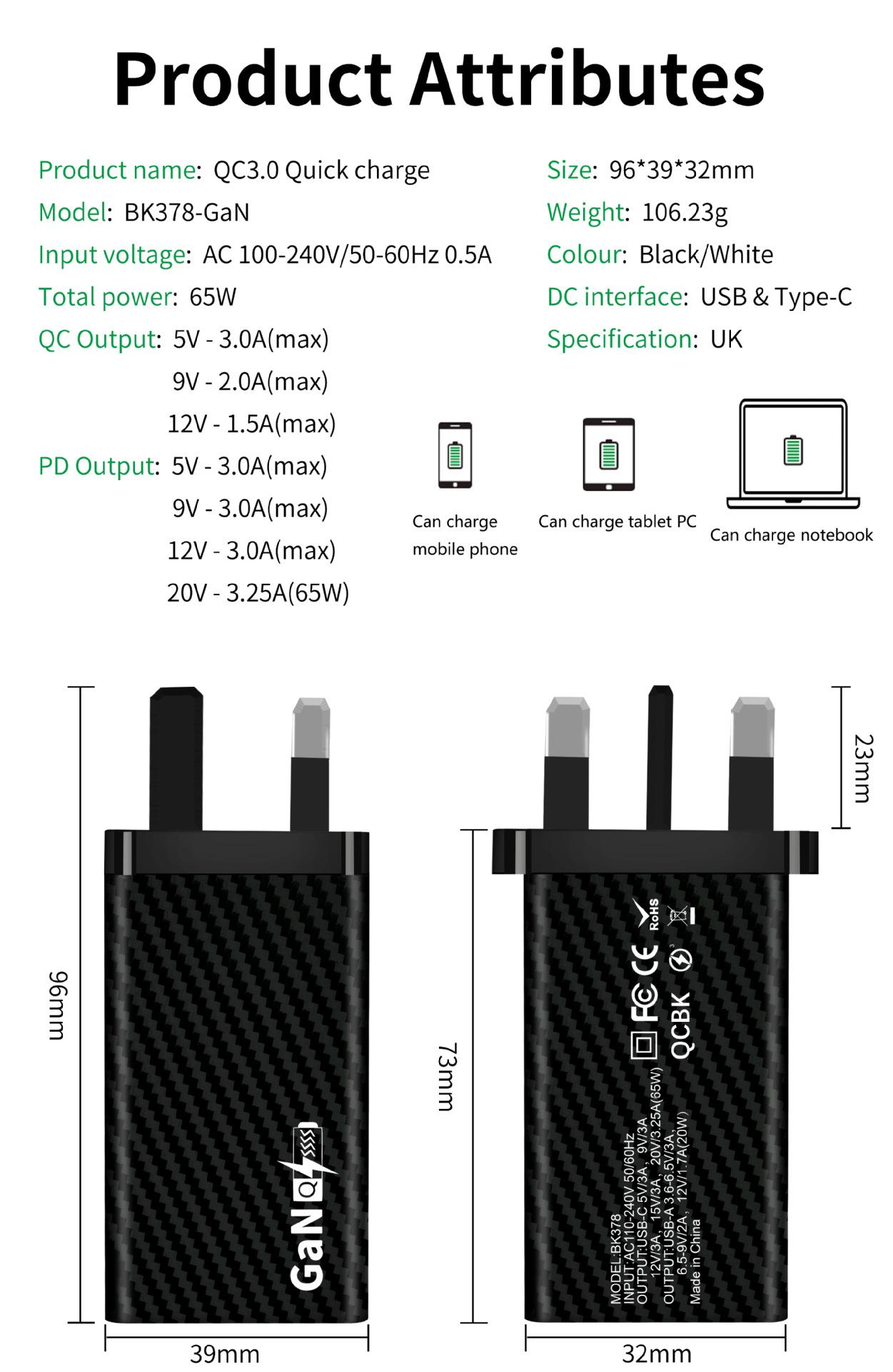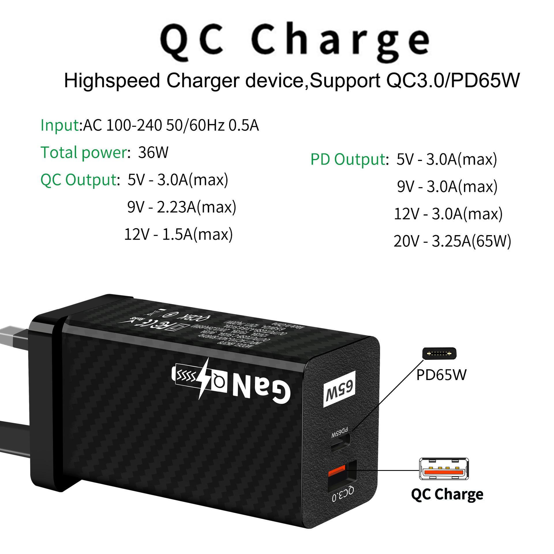 1. Nombre del producto: PD65W (GaN) + QC3.0 20W