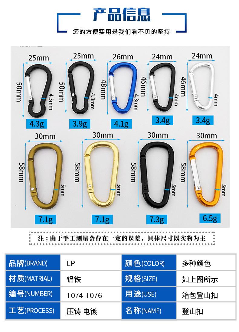 Hebilla de alpinismo en existencia, hebilla colgante de aleación de aluminio tipo D n.° 5, hebilla de gancho de resorte para mochila de equipaje, hebilla de hervidor, hebilla de alpinismo para exteriores.