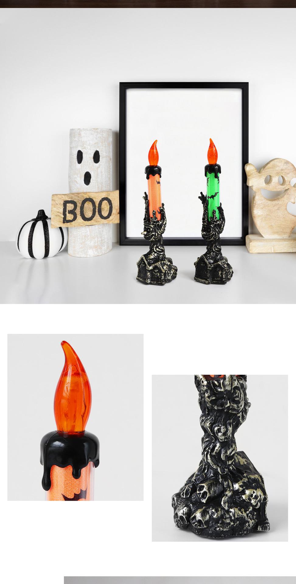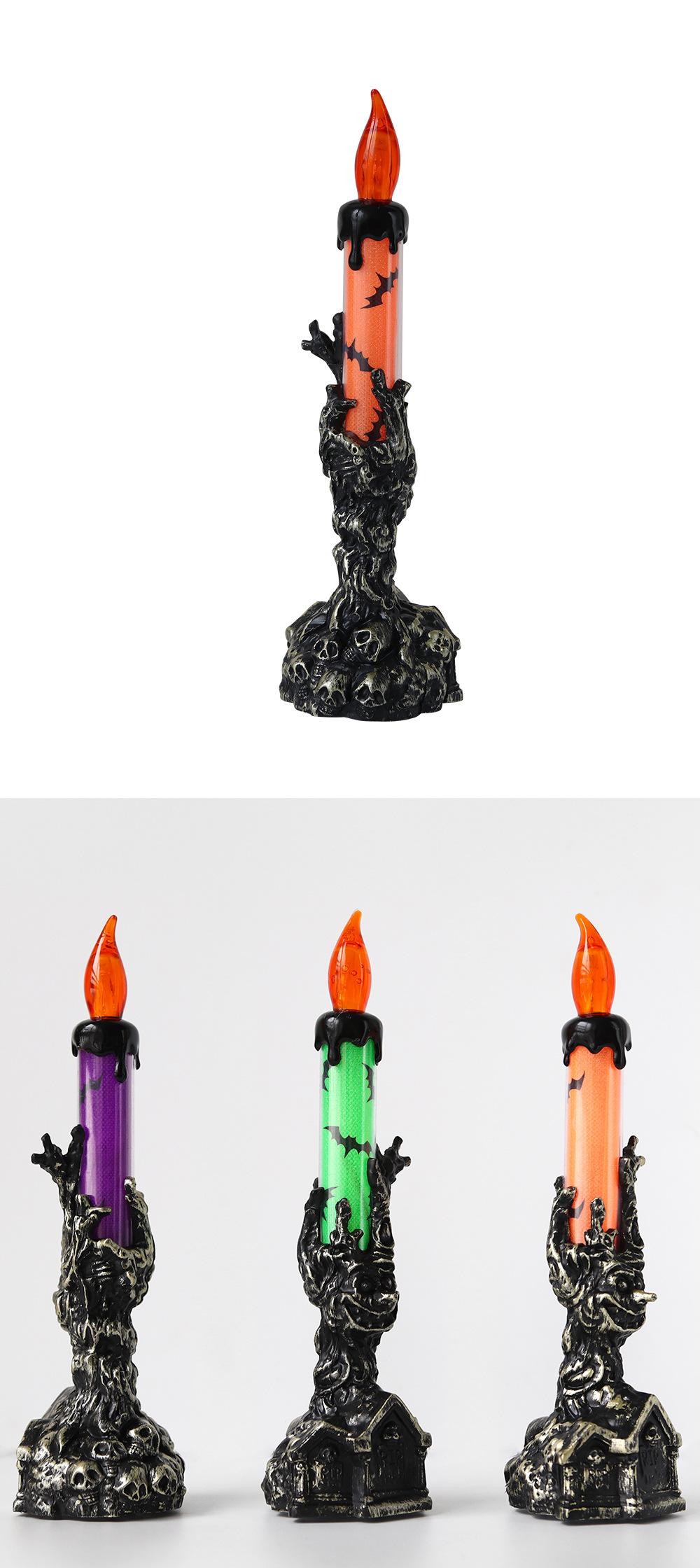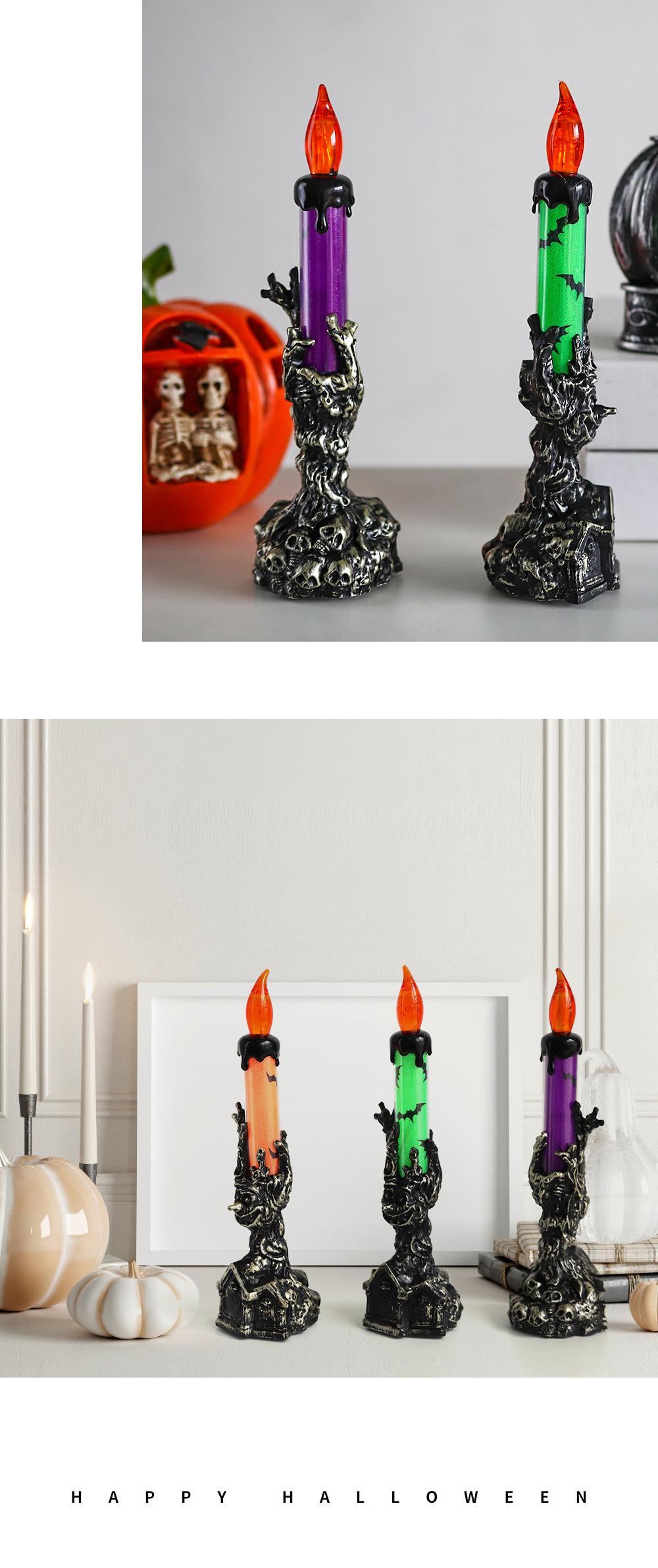 Decoración de lámpara de vela de mano fantasma de lápida de Halloween, accesorios de diseño de ambiente, luz nocturna, luz electrónica LED, lámpara de calabaza