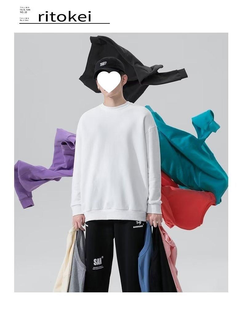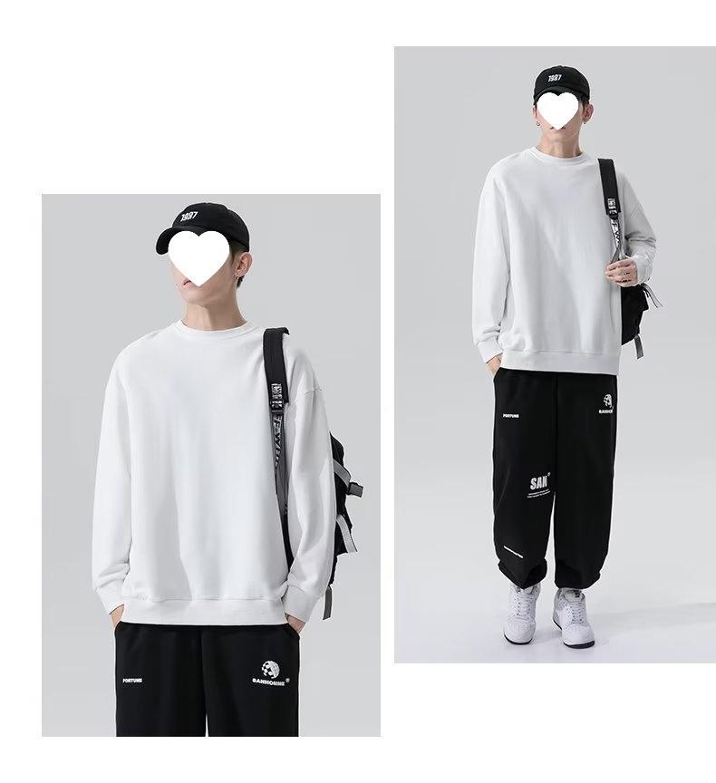 Camiseta de manga larga para hombre, primavera y otoño, blanca, combina con todo, informal, cuello redondo, suéter holgado de marca de moda, ropa para hombre