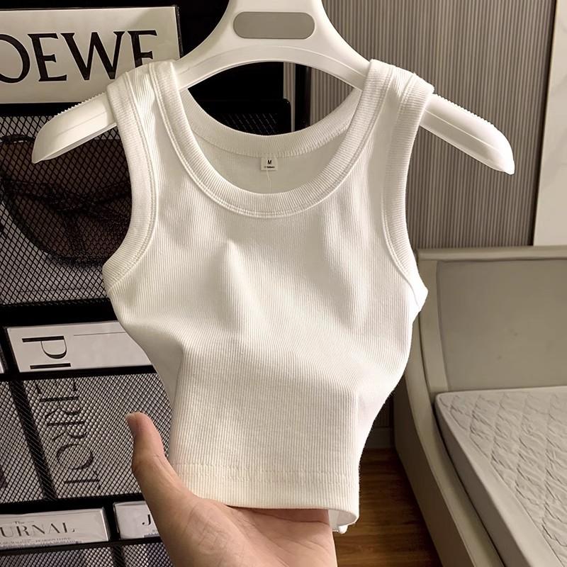 Camiseta sin mangas con cuello en U y tirantes finos para mujer, ajustada, de verano, con base interior adelgazante, a la moda