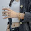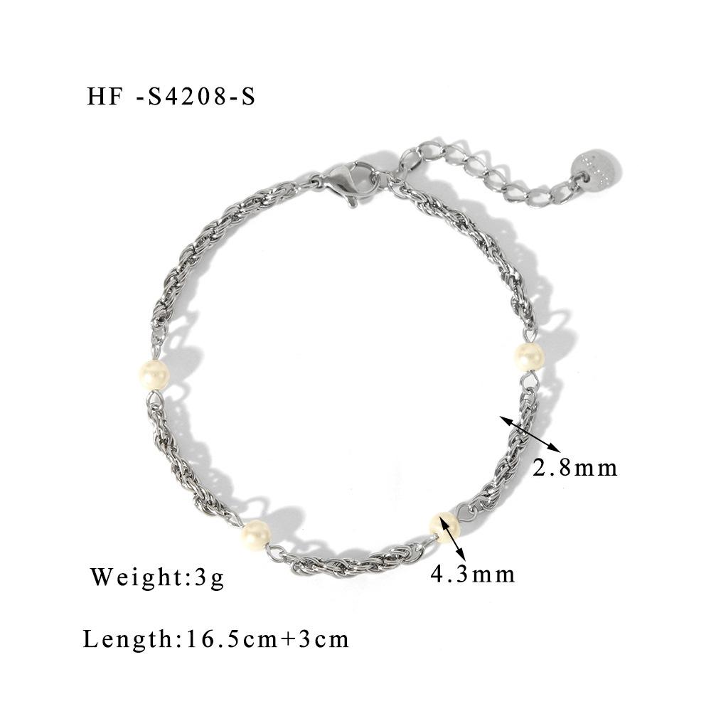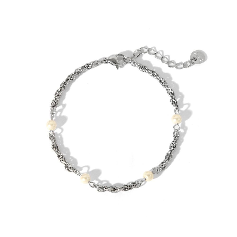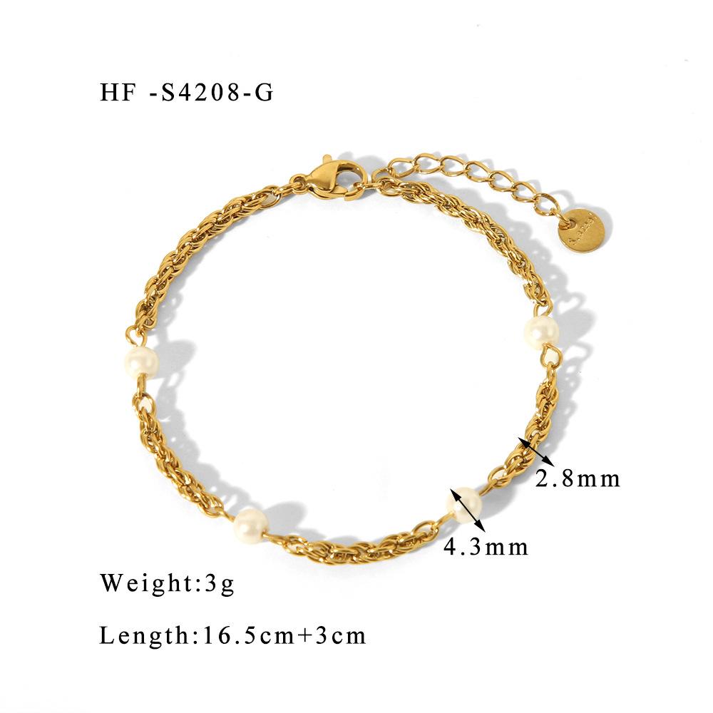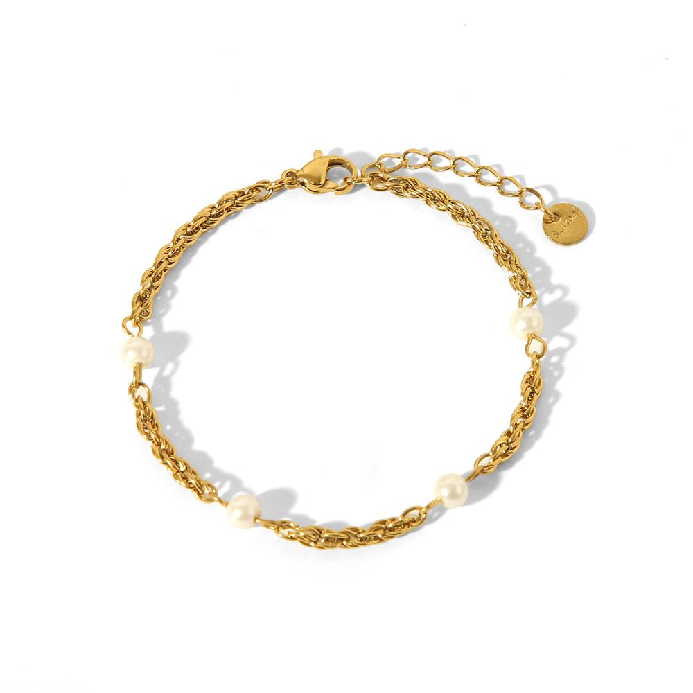 Pulsera de acero inoxidable estilo retro francés de cadena retorcida de perlas de 18K, moda simple, comodín, para damas, venta al por mayor